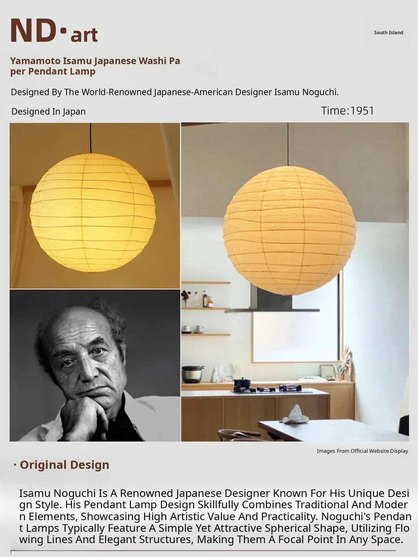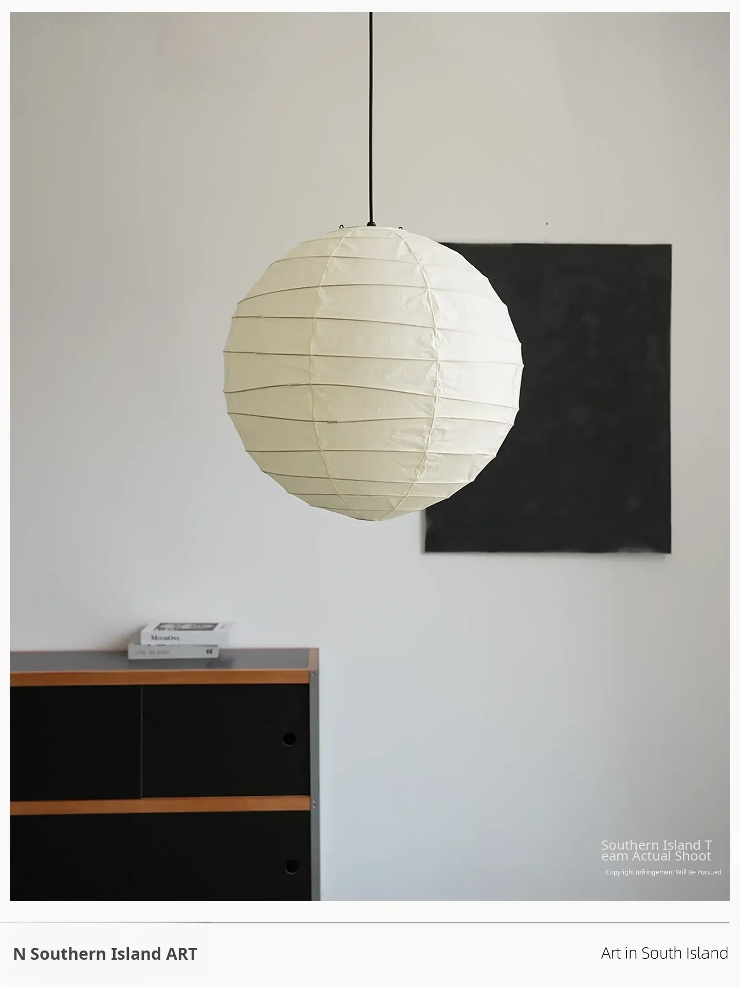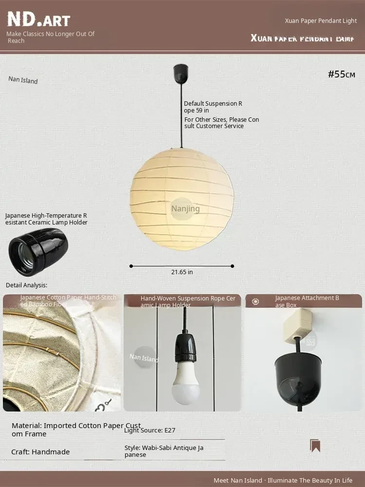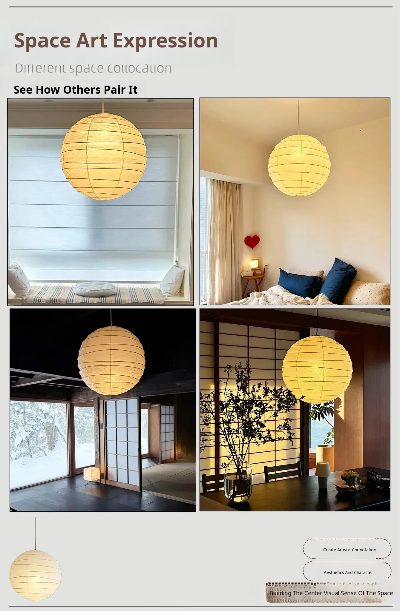 AKari Noguchi 55D Japanese Cotton Paper Pendant Light – Vintage Wabi-Sabi Style for Living Room, Study, and Bedroom