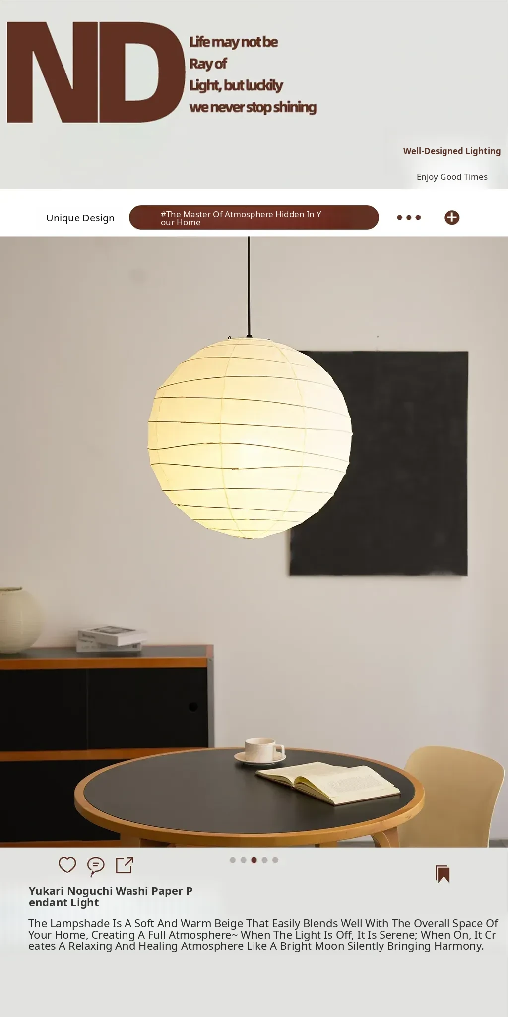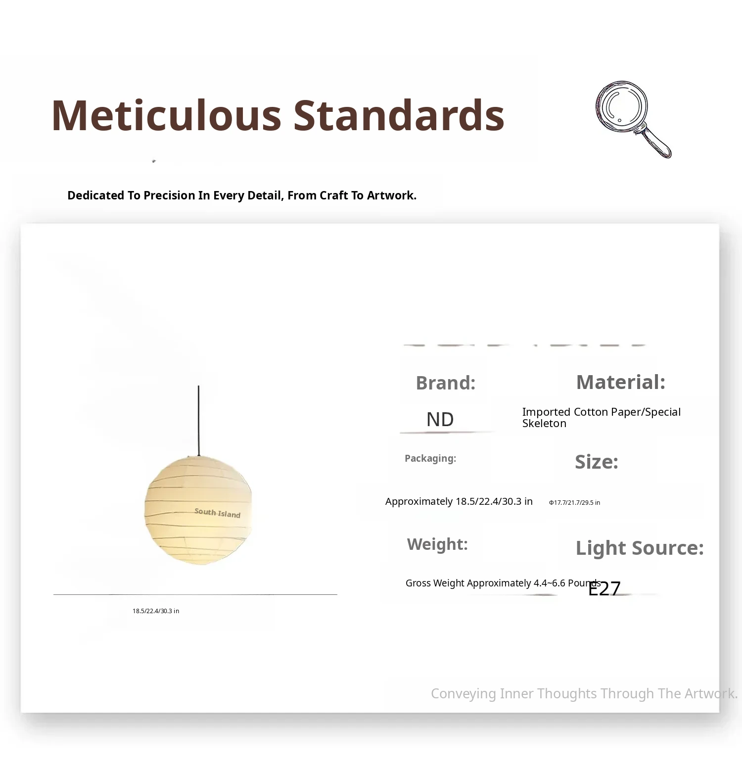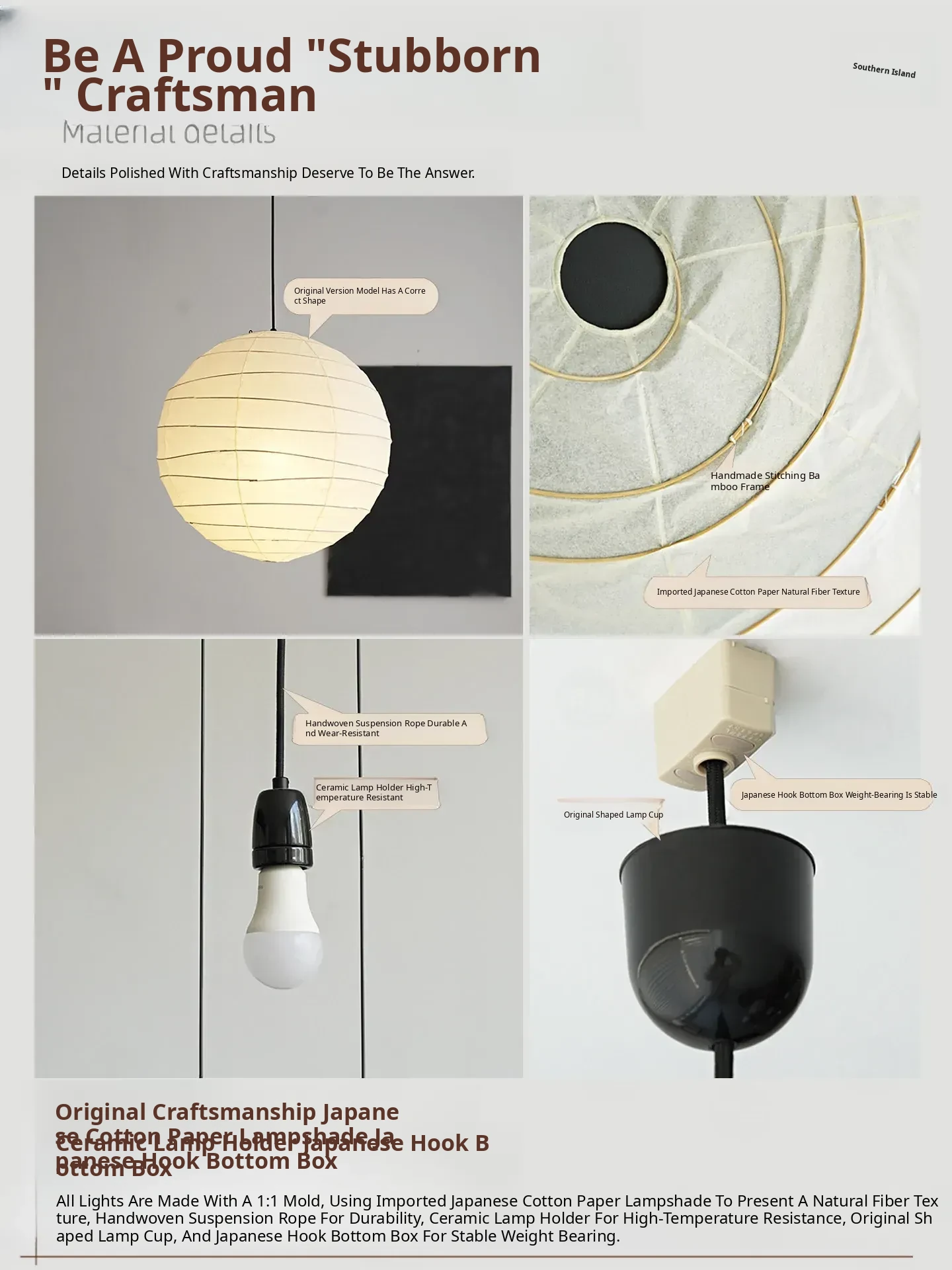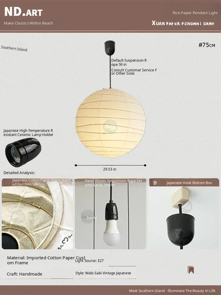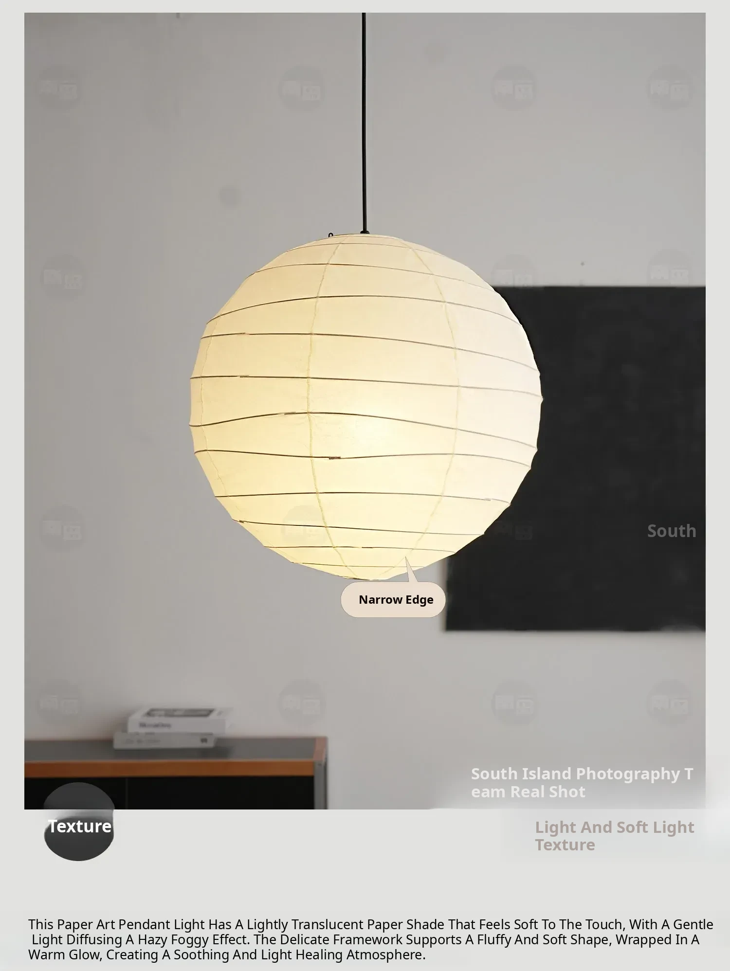 AKari Noguchi 55D Japanese Cotton Paper Pendant Light – Vintage Wabi-Sabi Style for Living Room, Study, and Bedroom