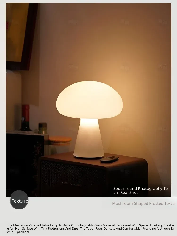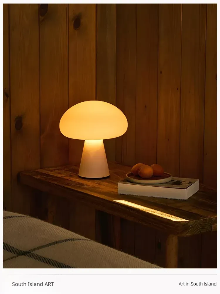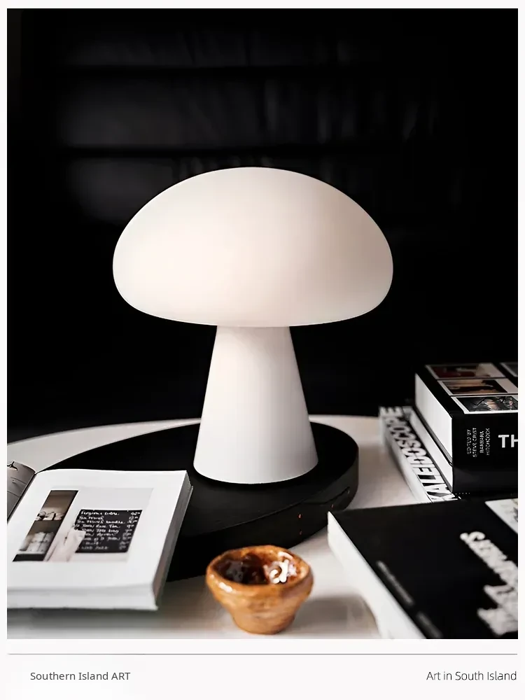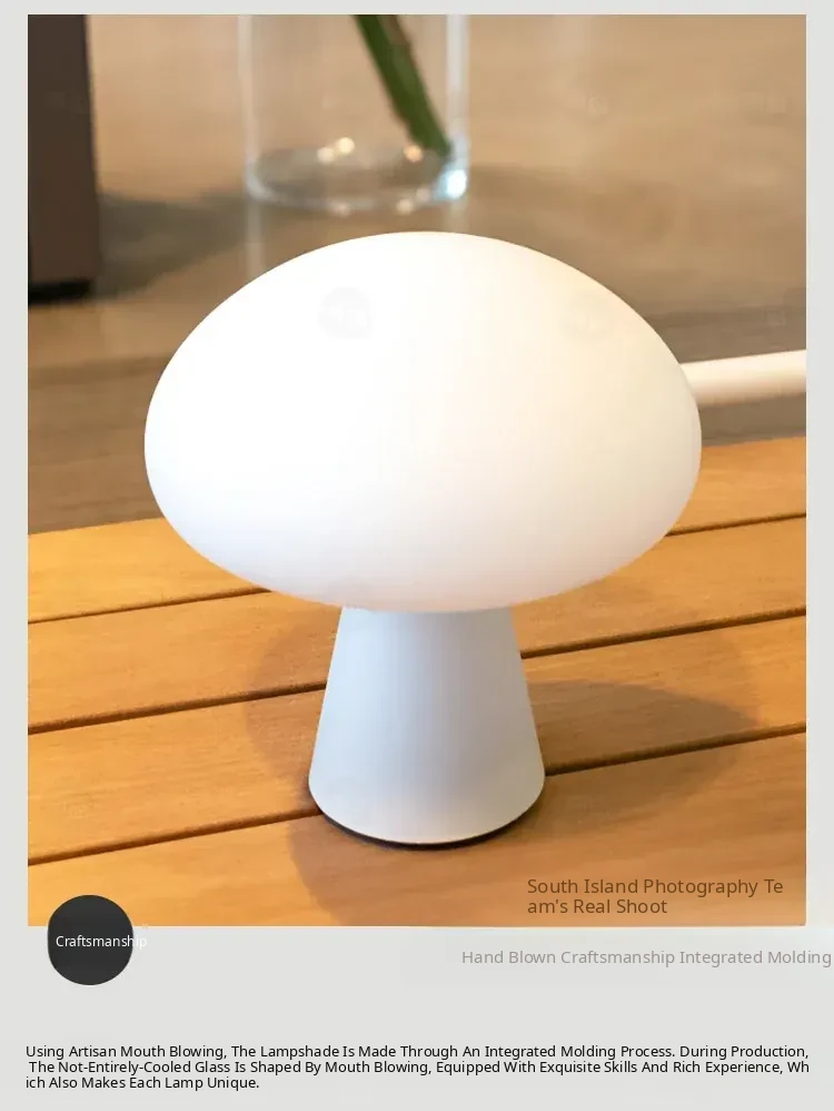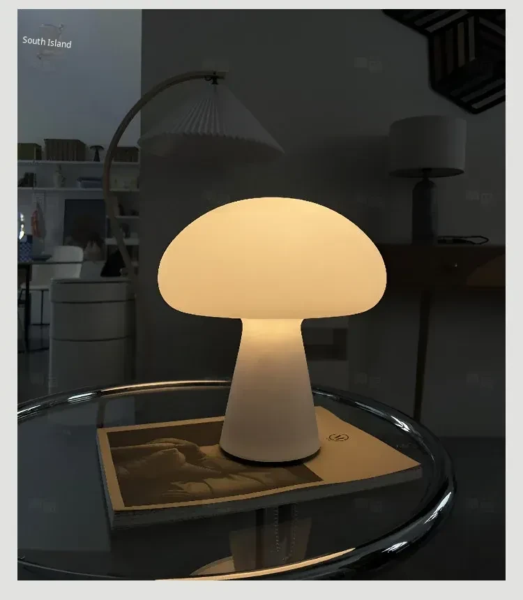 Danish Obello Glass Mushroom Table Lamp - Rechargeable Touch Control with Adjustable Brightness for Living Room and Bedroom Ambiance