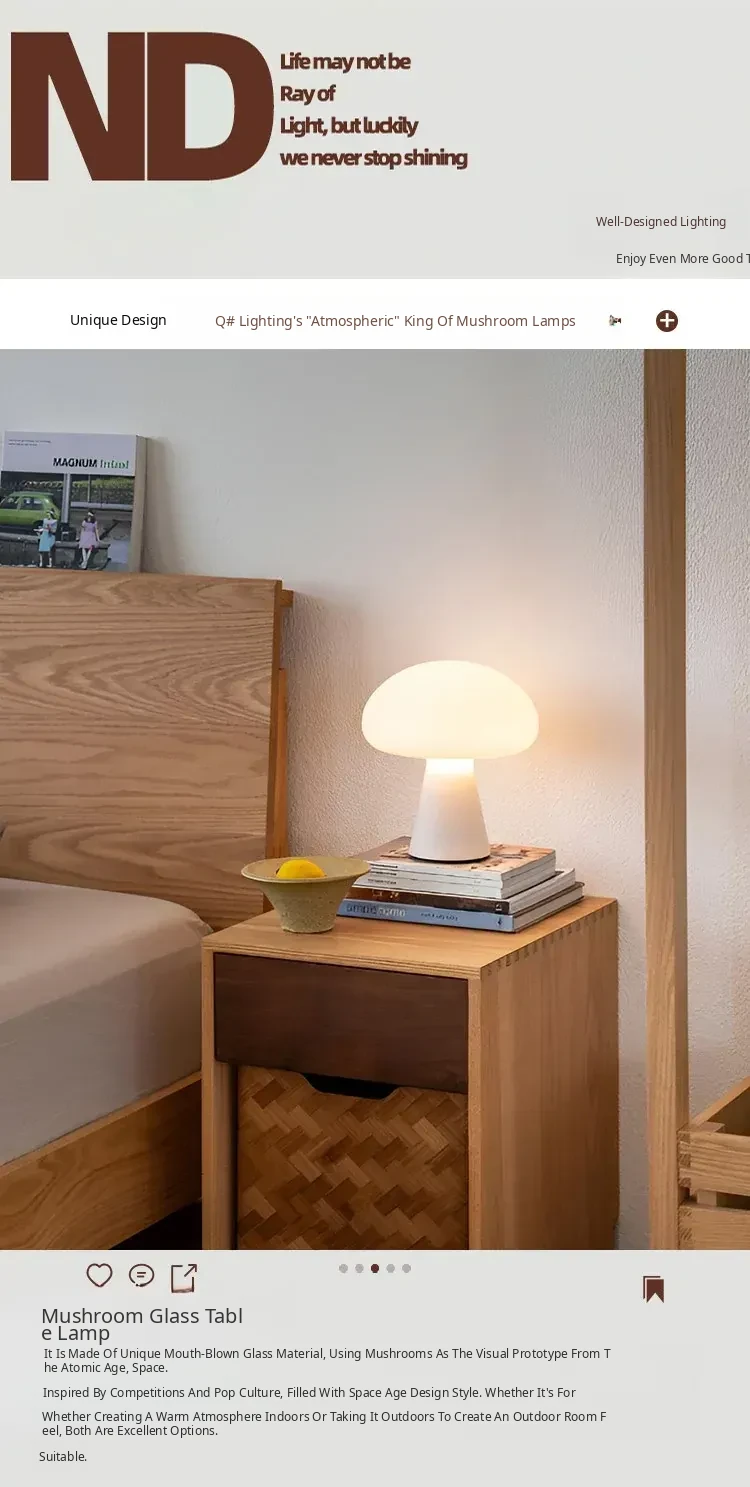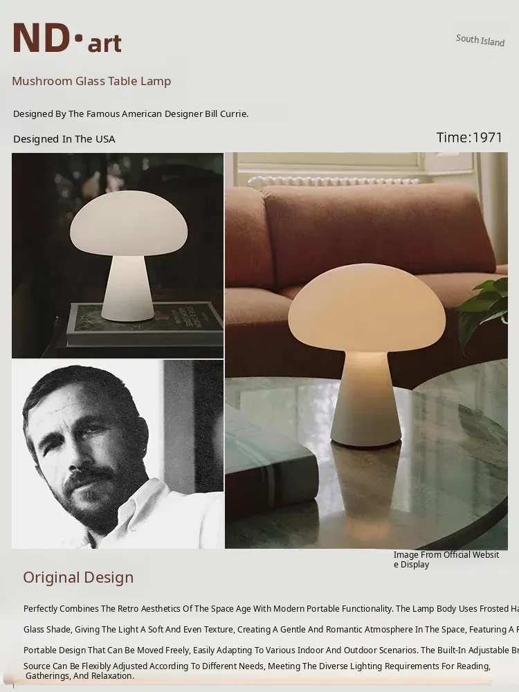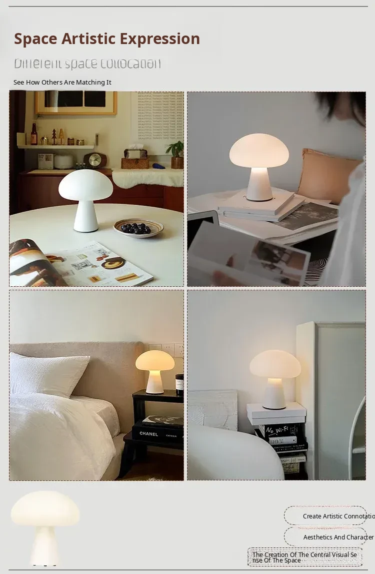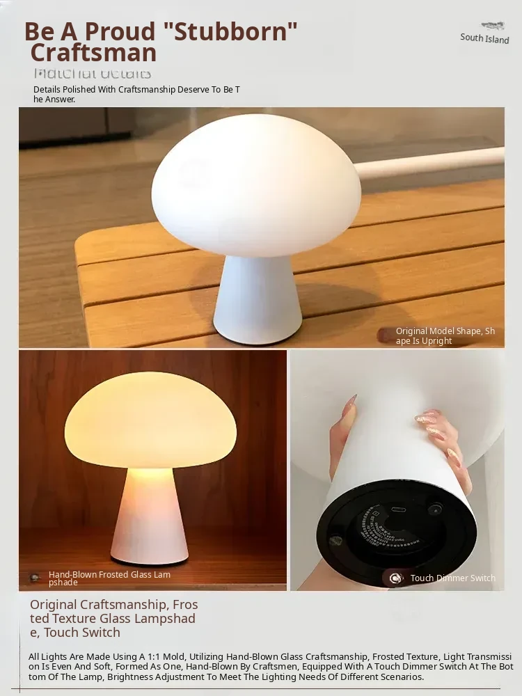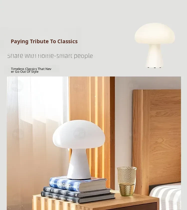 Danish Obello Glass Mushroom Table Lamp - Rechargeable Touch Control with Adjustable Brightness for Living Room and Bedroom Ambiance