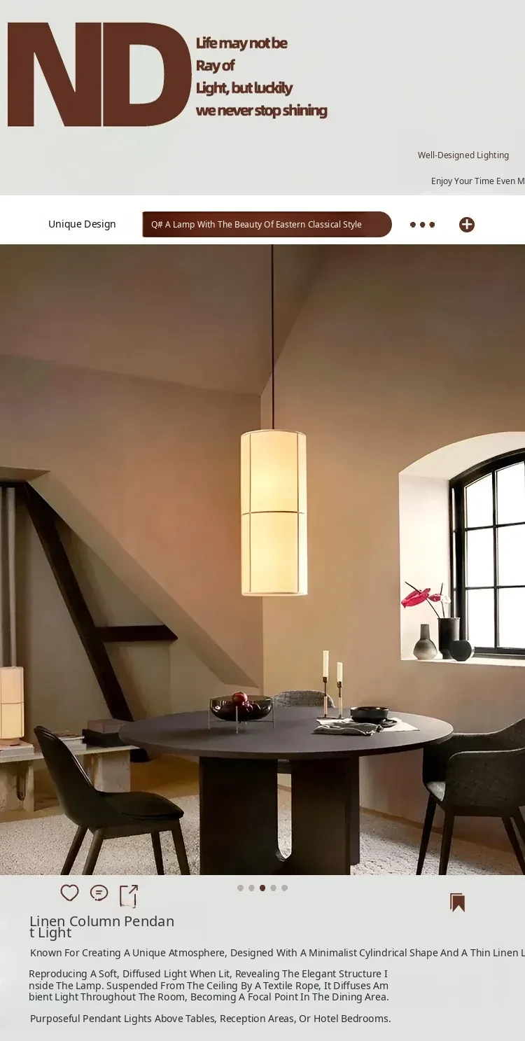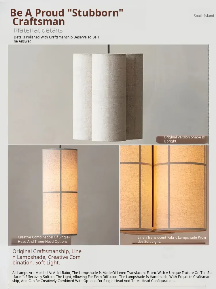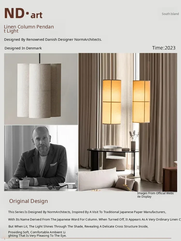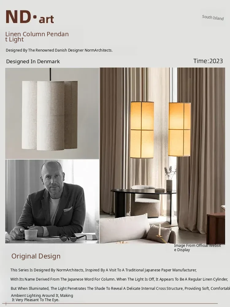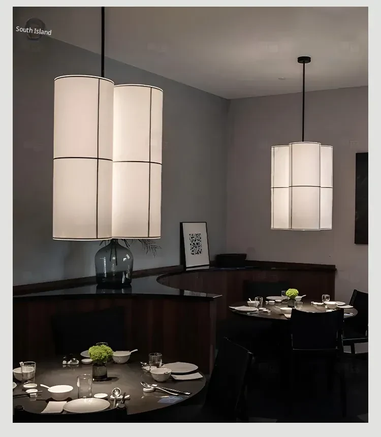 French Audo HASHIRA Restaurant & Bedroom Linen Fabric Vintage Japanese Wabi-Sabi Designer Pendant Light - A Perfect Blend of Elegance and Serenity for Your Space