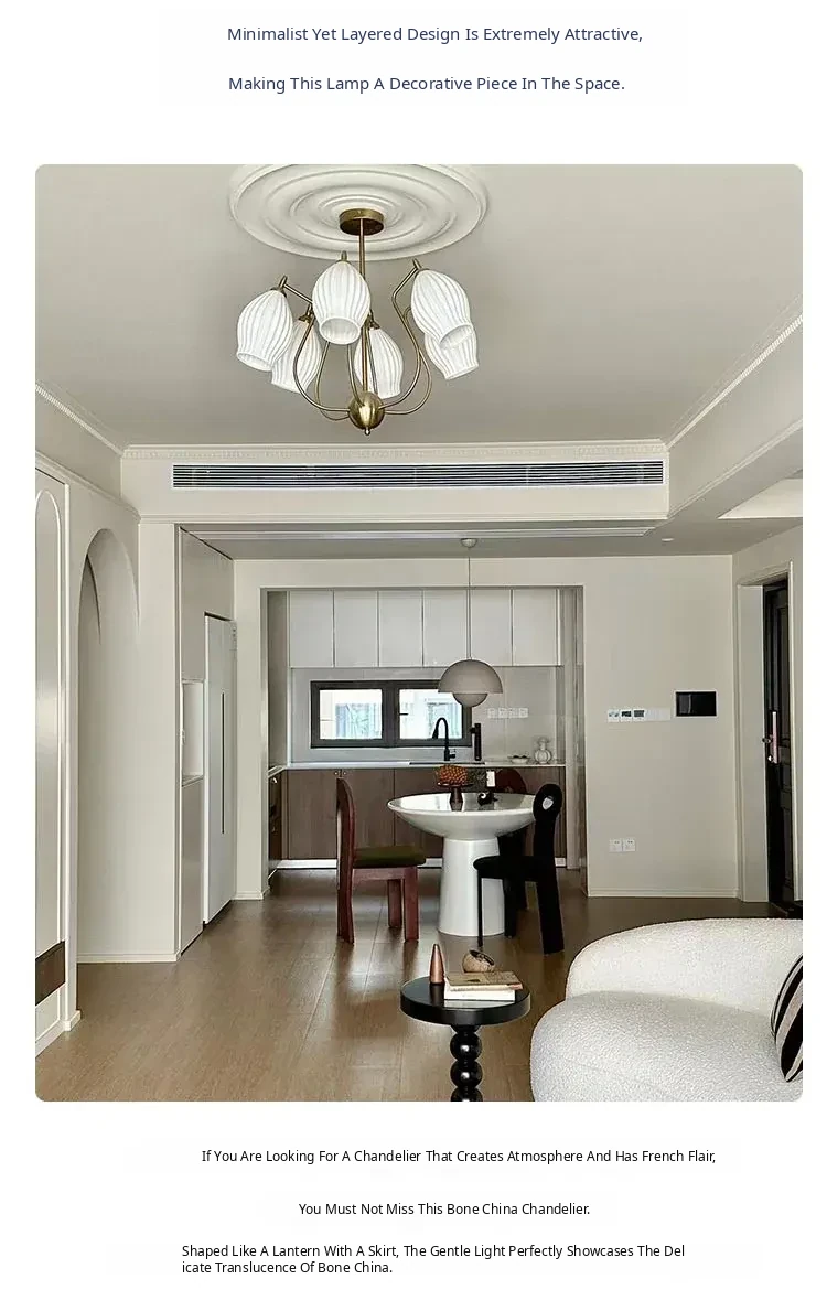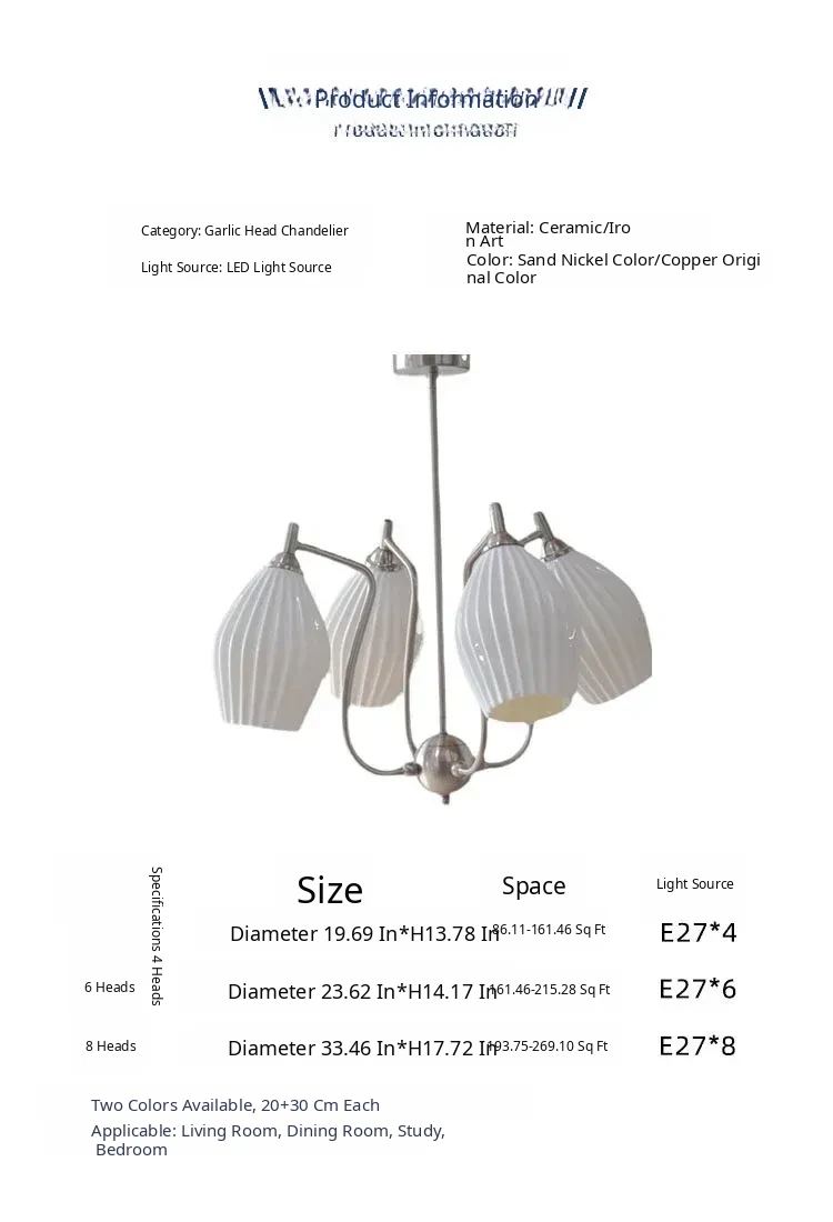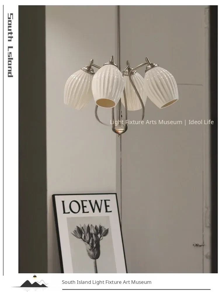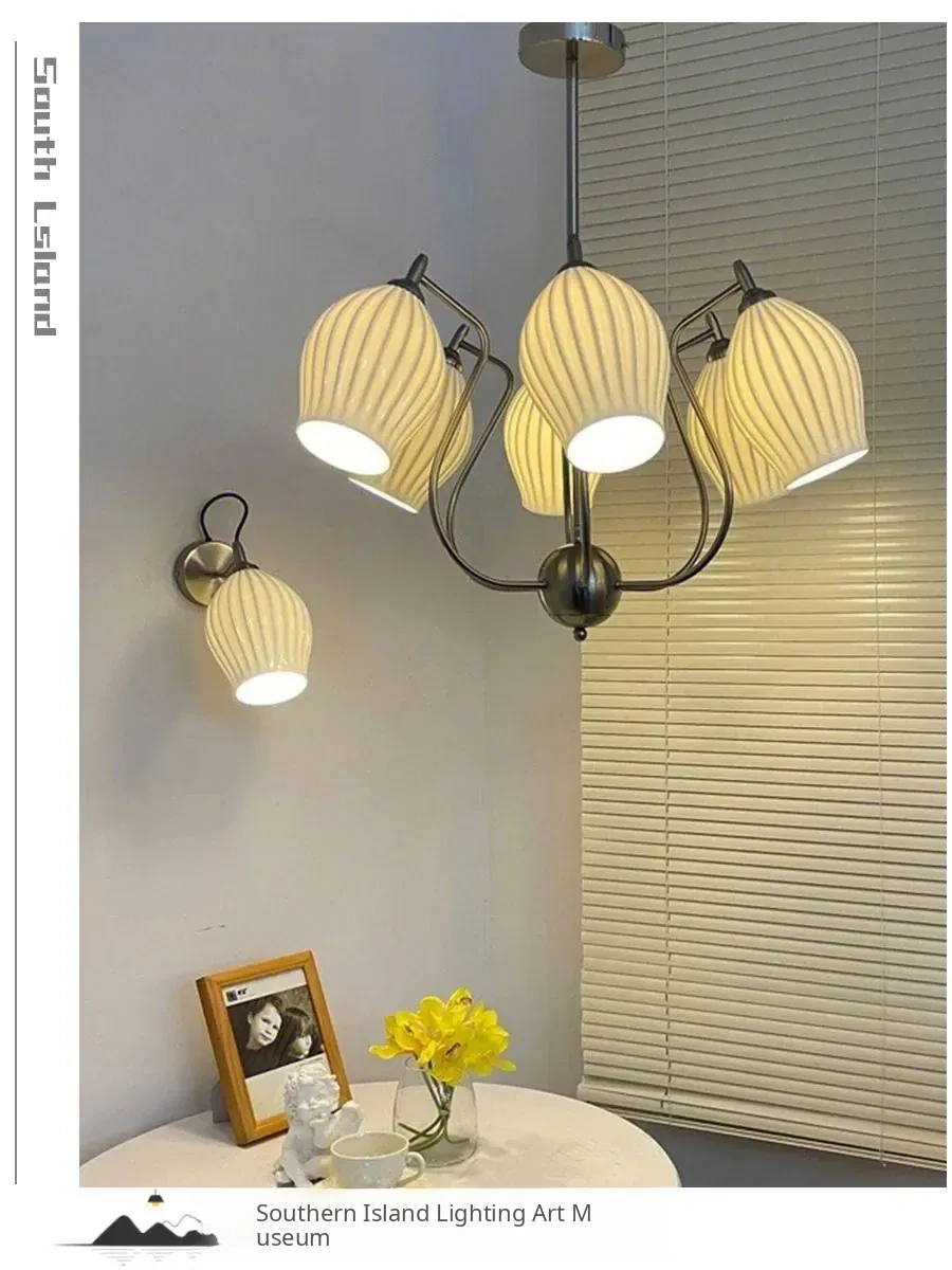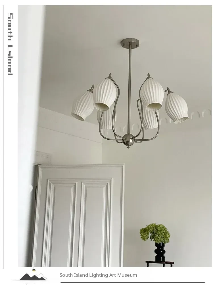 French Vintage Bone China Chandelier - Creamy Modern Lighting for Living Room, Study, Dining Room, and Bauhaus Style Ceramic Master Bedroom - Elegant Garlic-Shaped Design