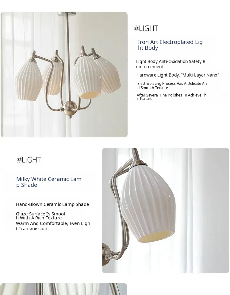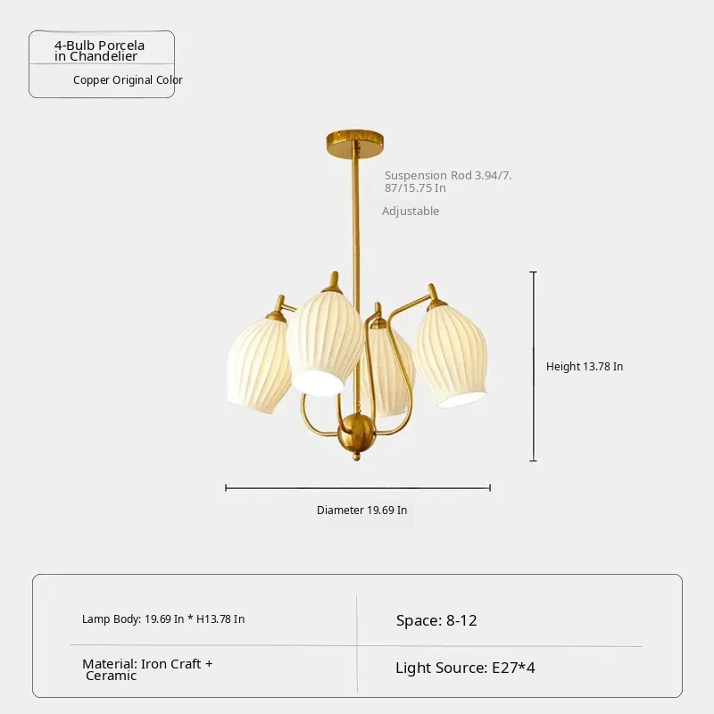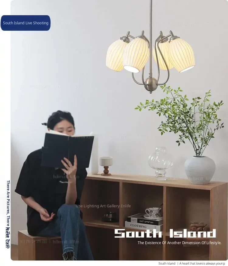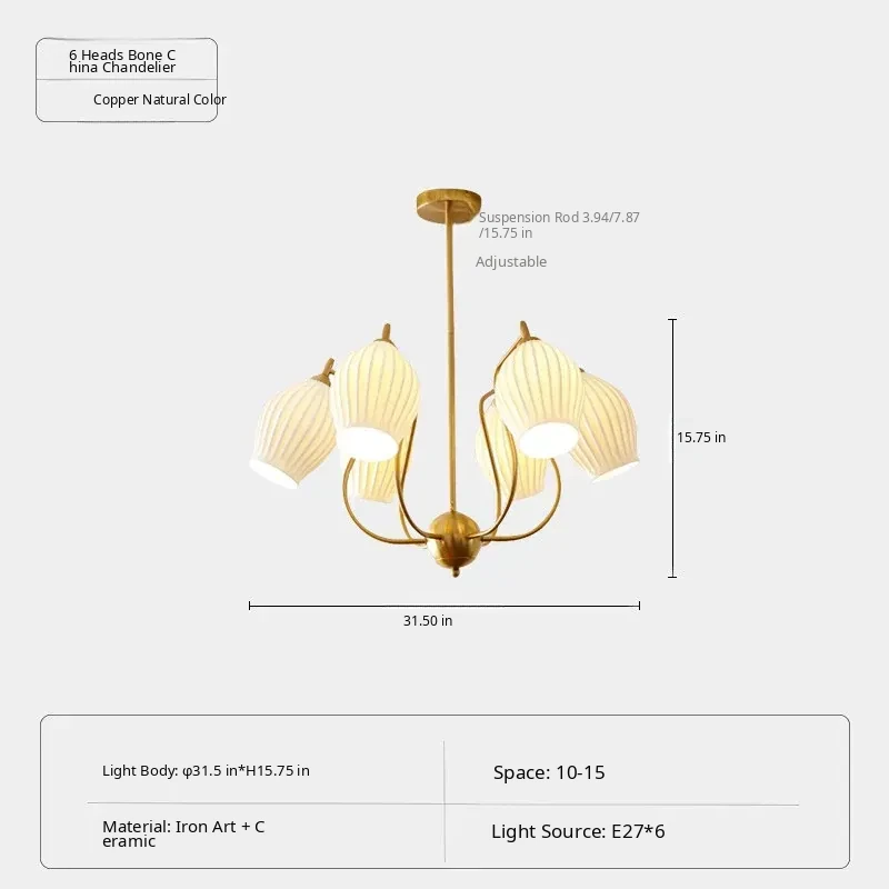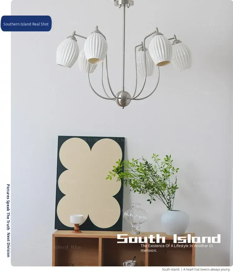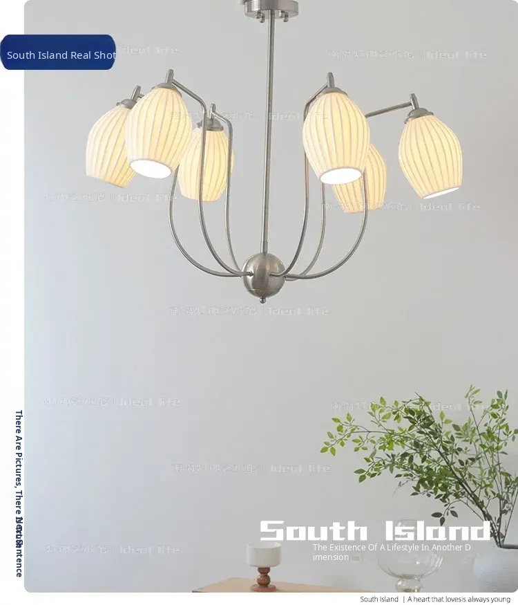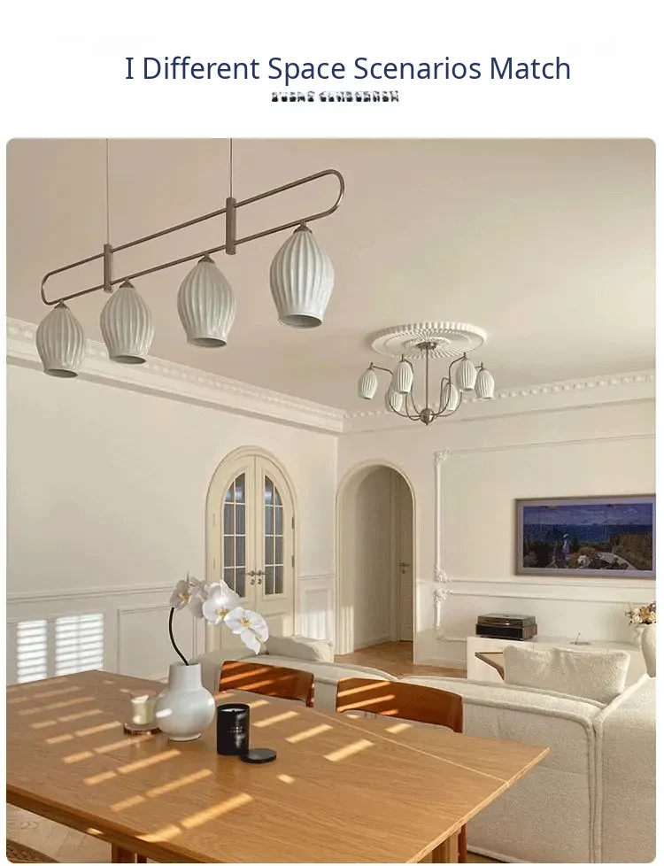 French Vintage Bone China Chandelier - Creamy Modern Lighting for Living Room, Study, Dining Room, and Bauhaus Style Ceramic Master Bedroom - Elegant Garlic-Shaped Design
