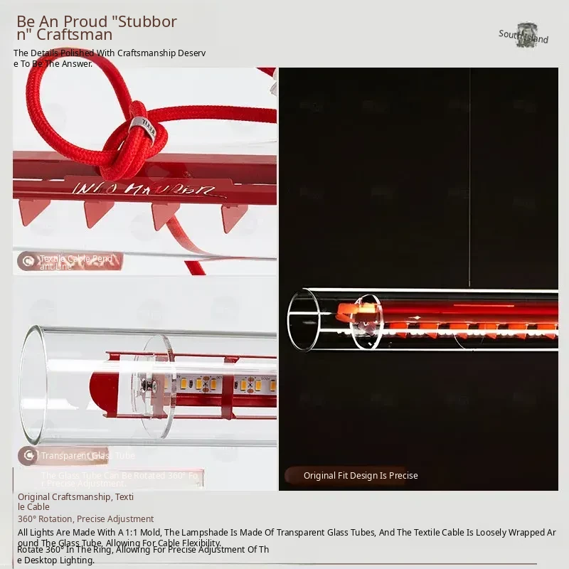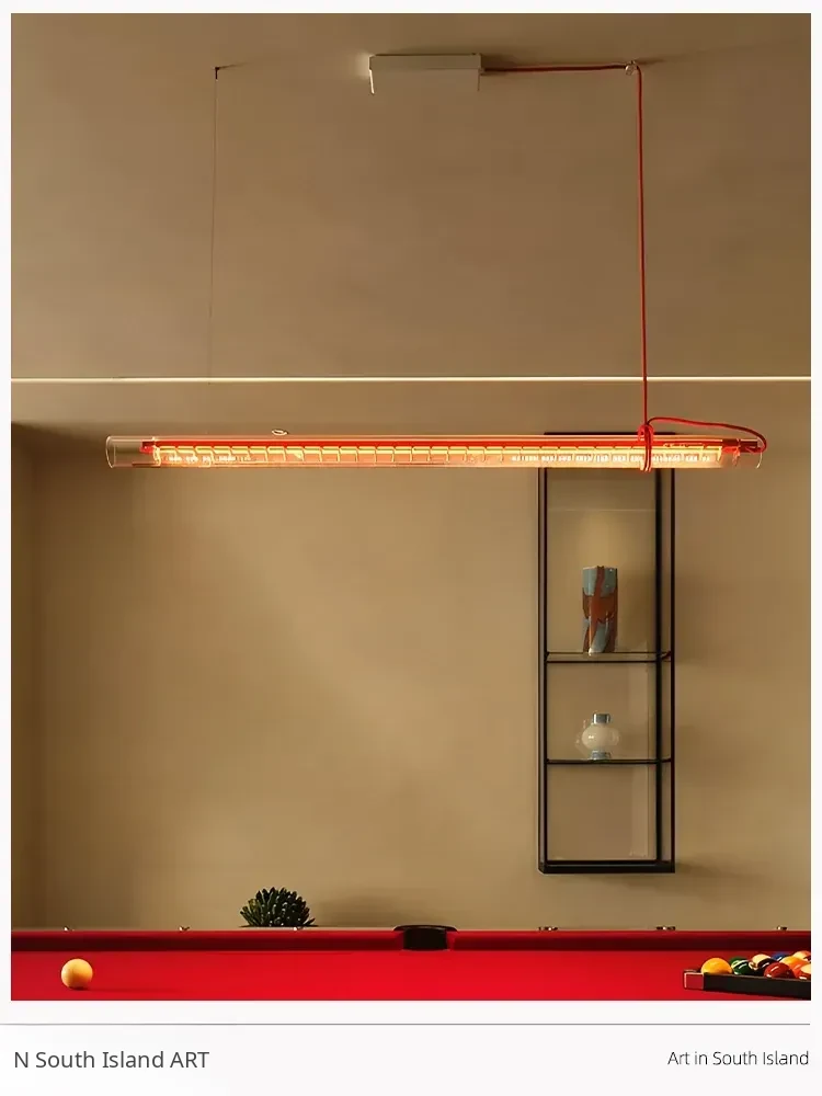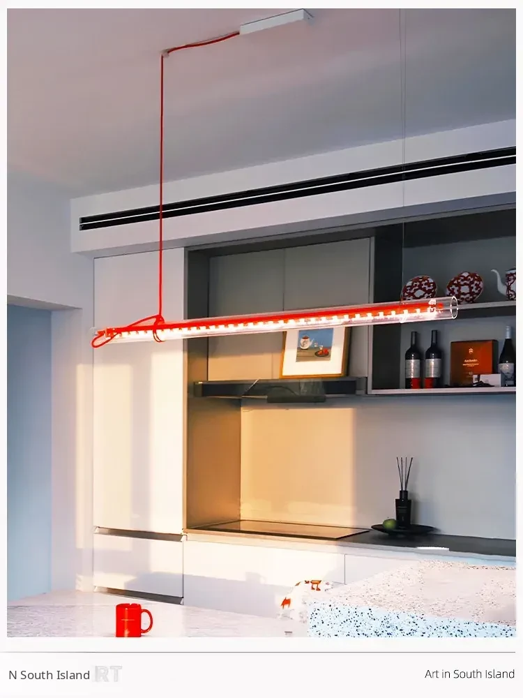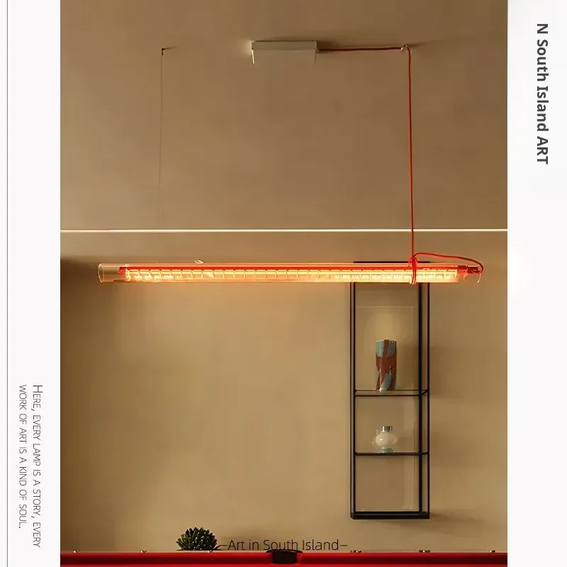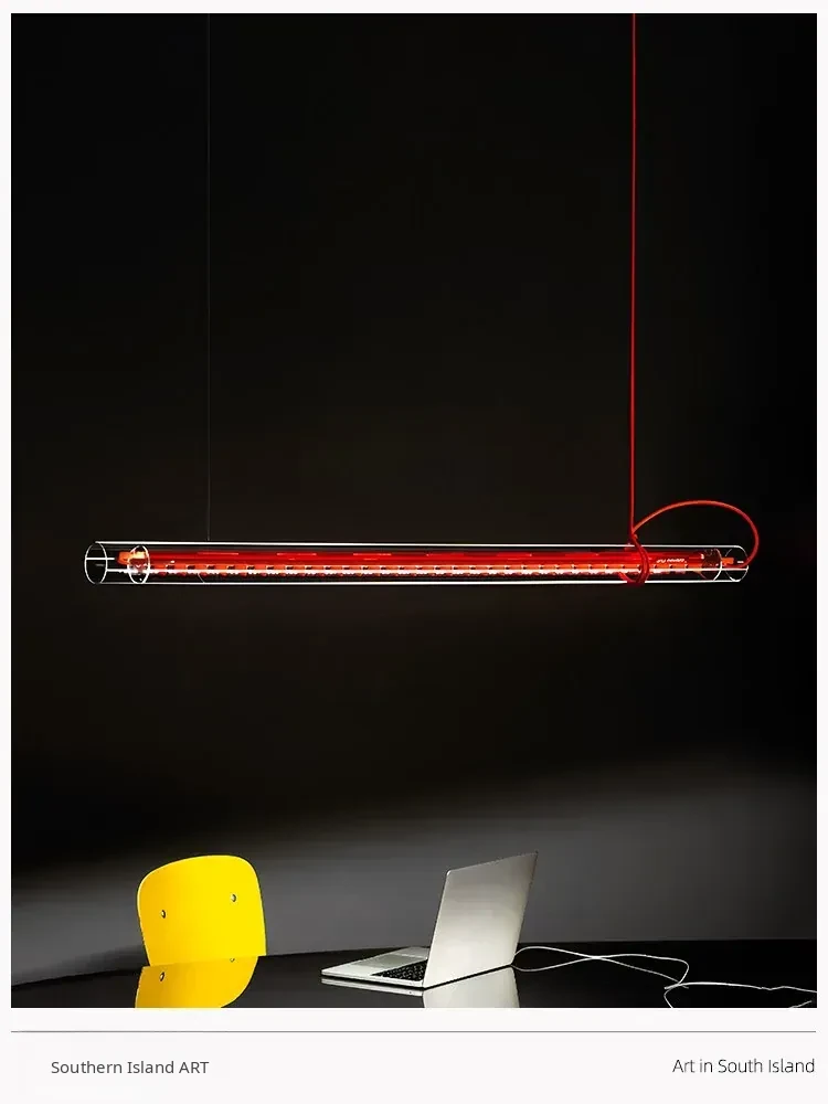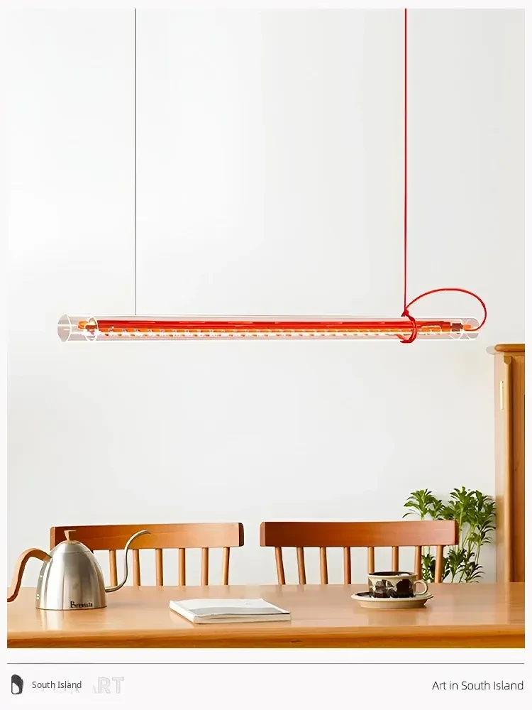 German Maurer Tubular Modern Minimalist Long Rectangular Transparent Glass Red Pendant Light for Dining Room and Study