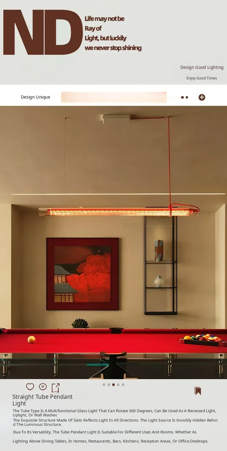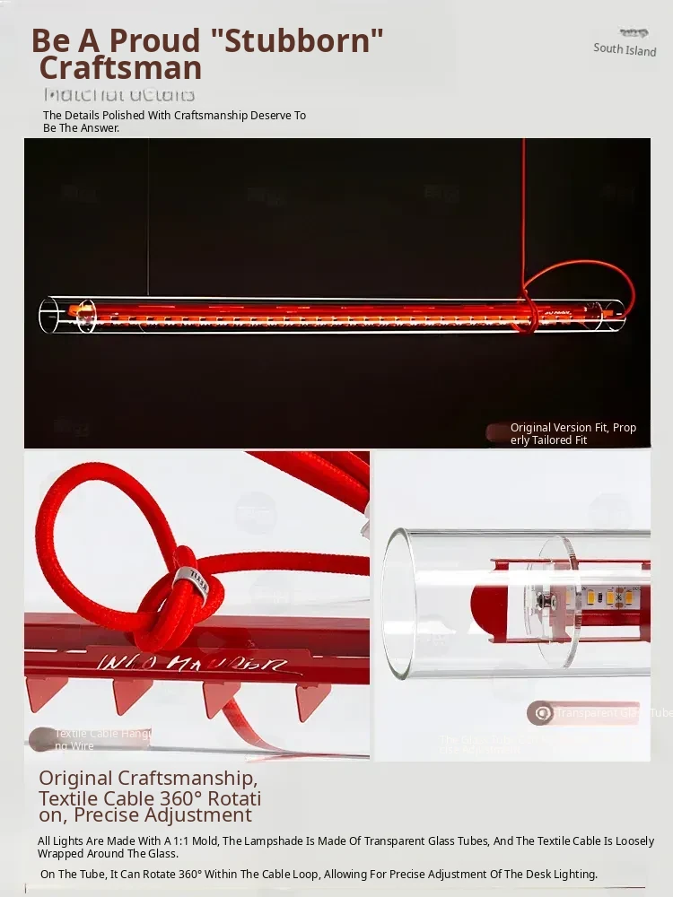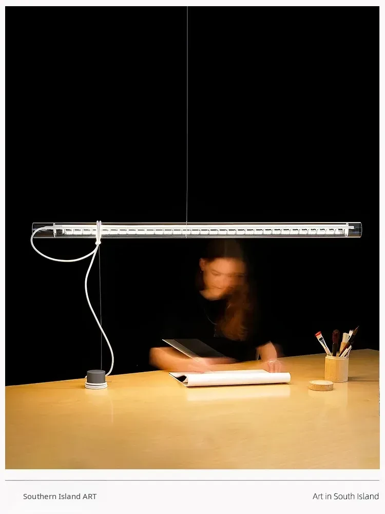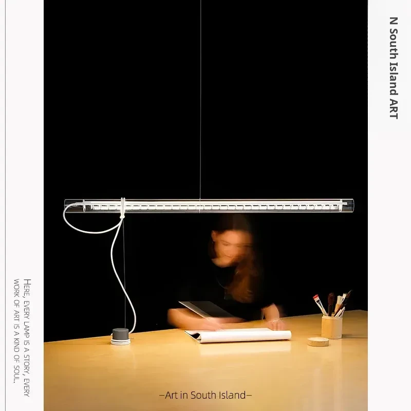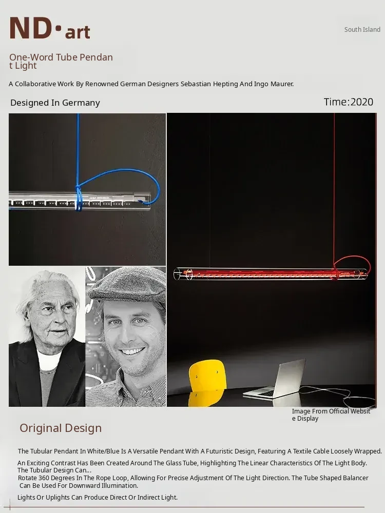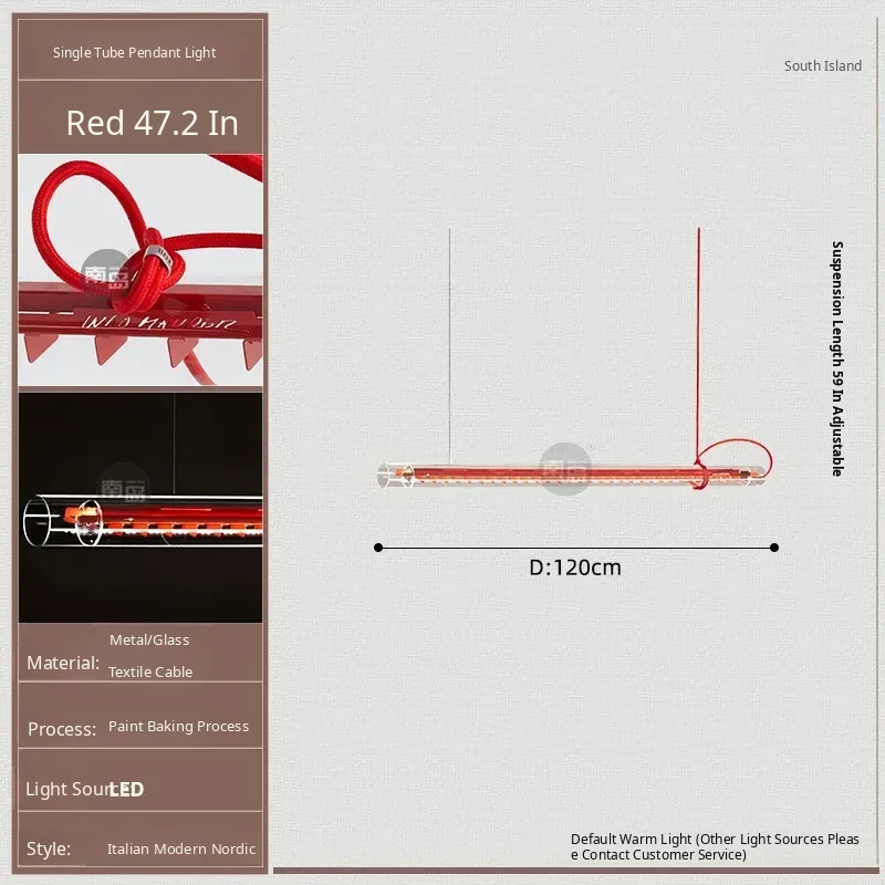 German Maurer Tubular Modern Minimalist Long Rectangular Transparent Glass Red Pendant Light for Dining Room and Study