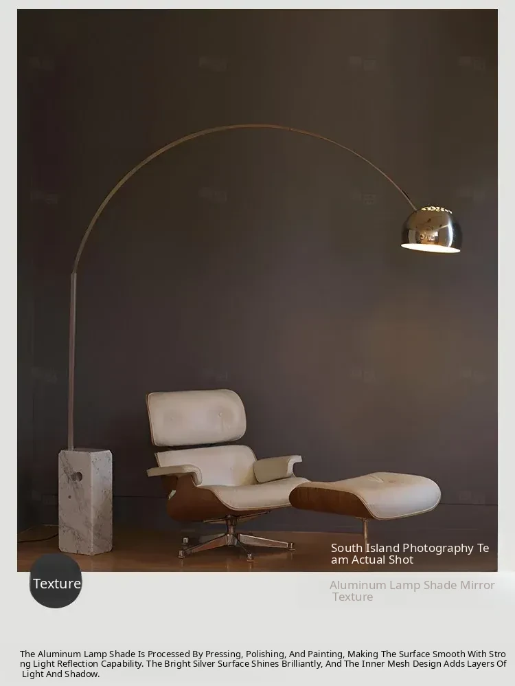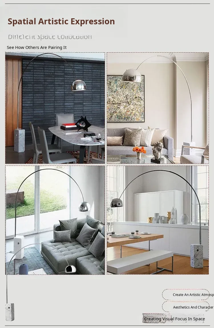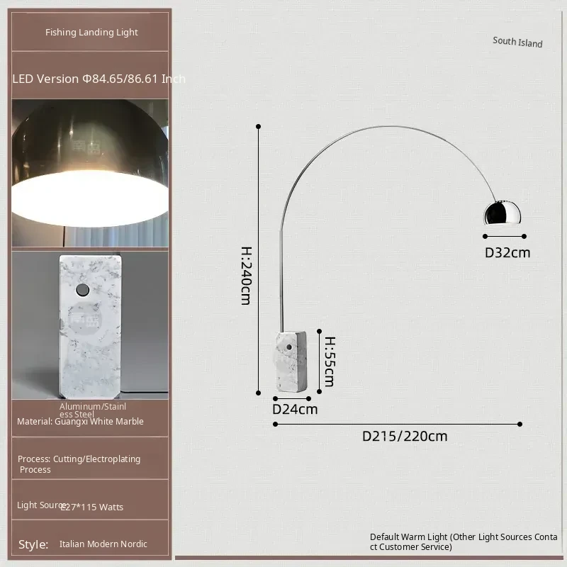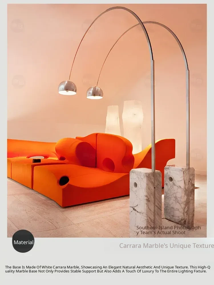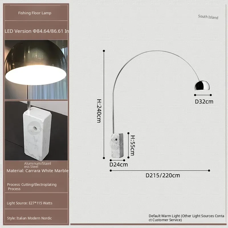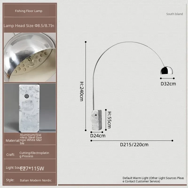Italian Arco Floor Lamp - Elegant Marble Fishing Light with Light French Design for Villa Living Room, Perfect beside Sofa, Crystal Accents