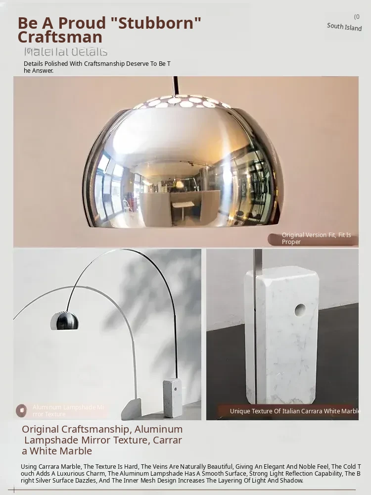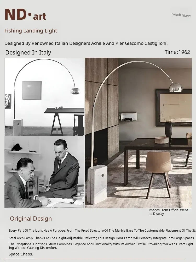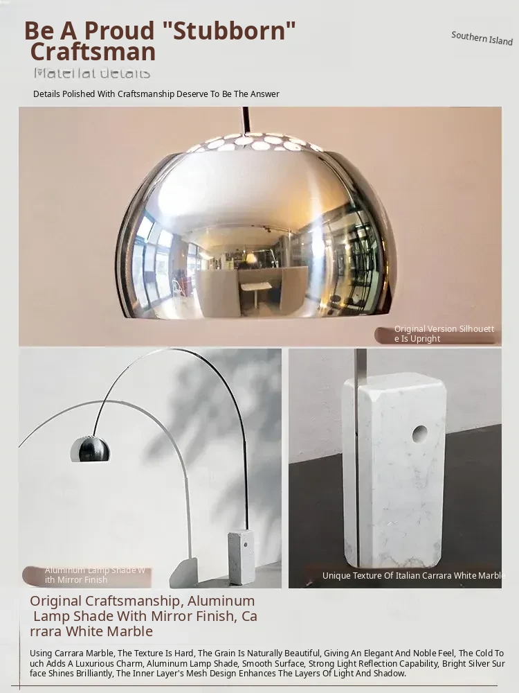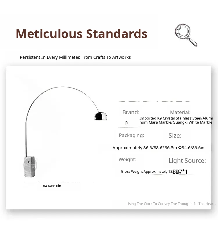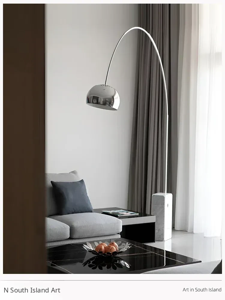 Italian Arco Floor Lamp - Elegant Marble Fishing Light with Light French Design for Villa Living Room, Perfect beside Sofa, Crystal Accents