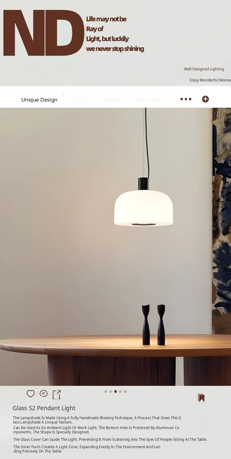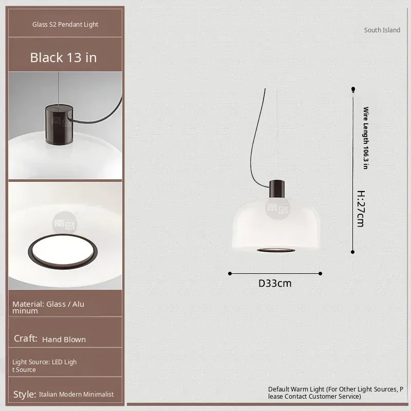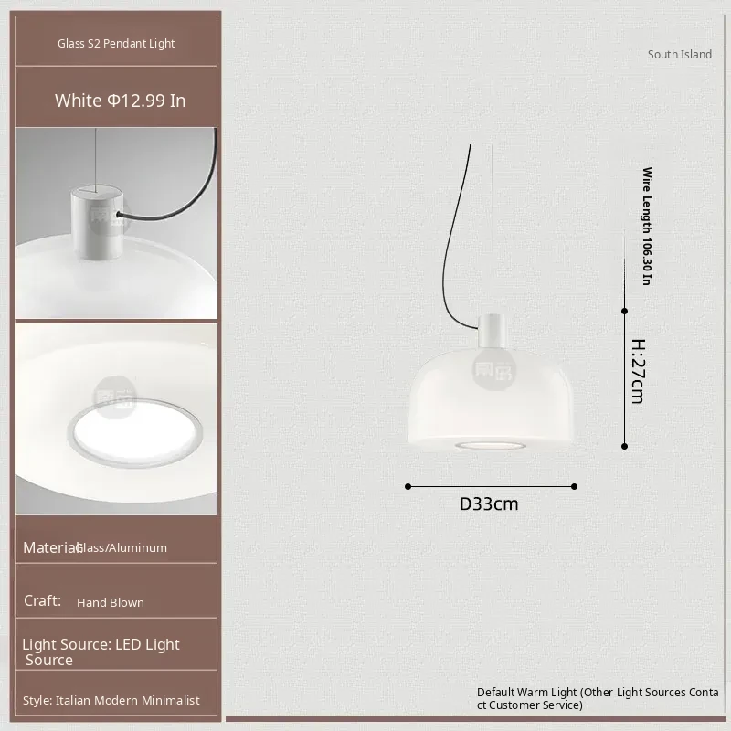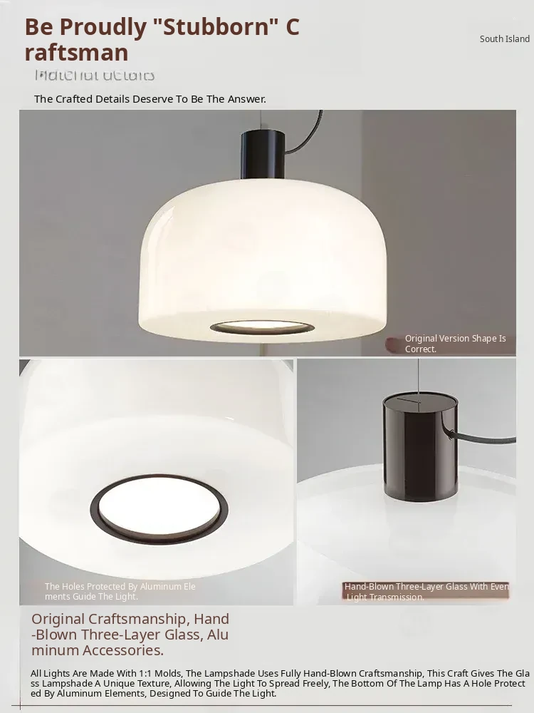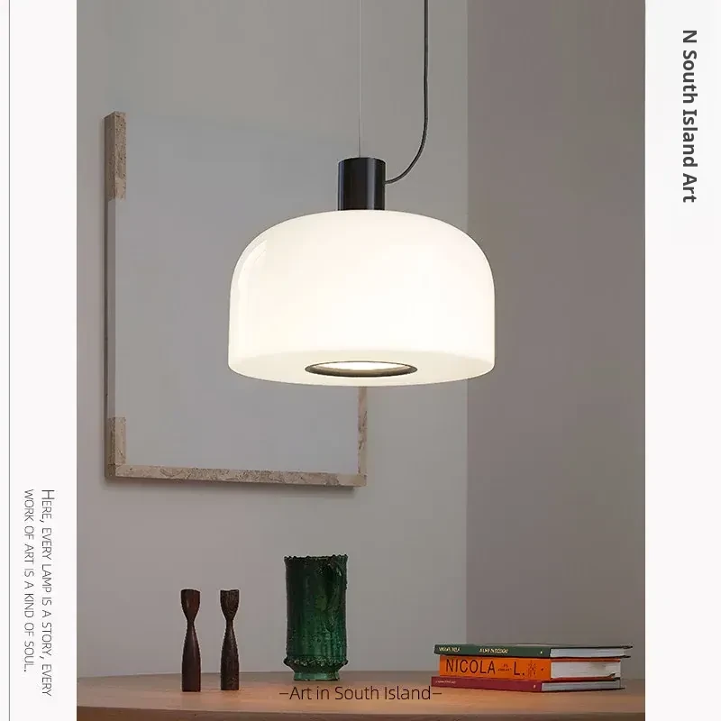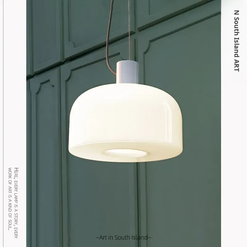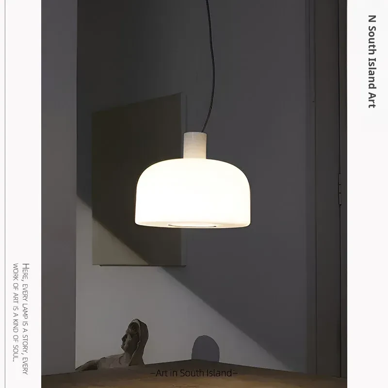 Italian Bellhop Glass S2 White Jade Pendant Lamp - Designer Minimalist Light for Dining Room, Bar, and Bedroom