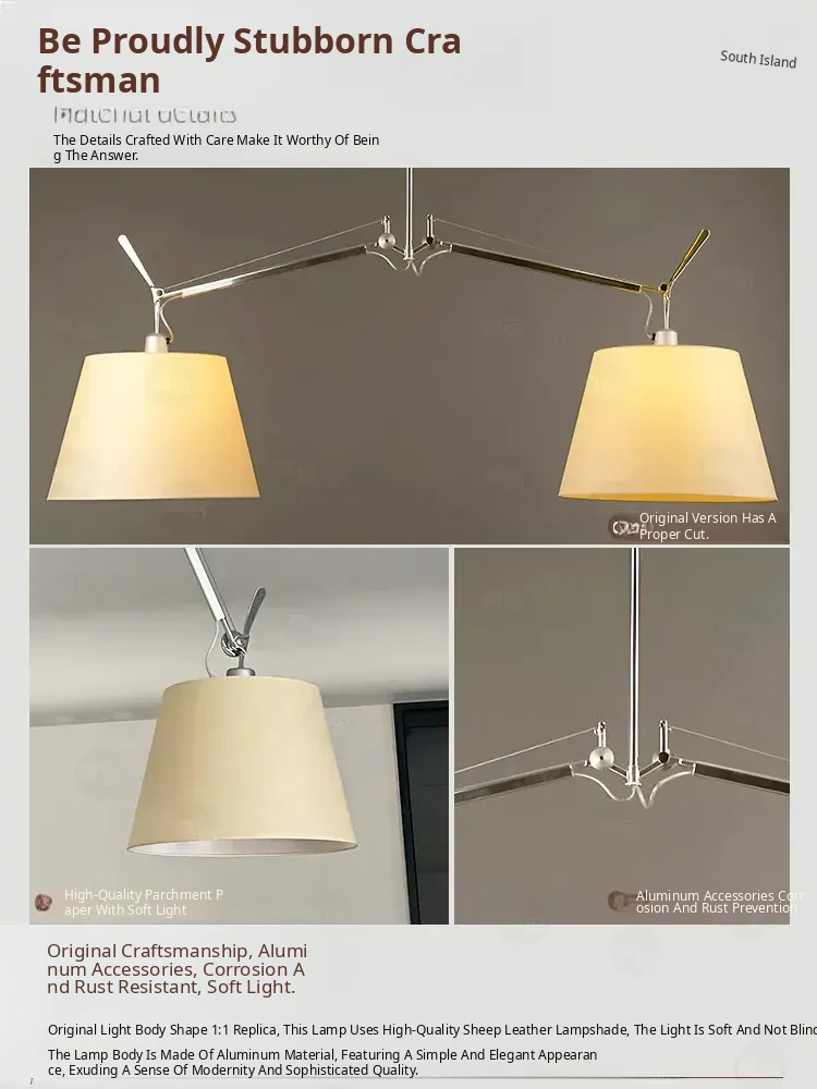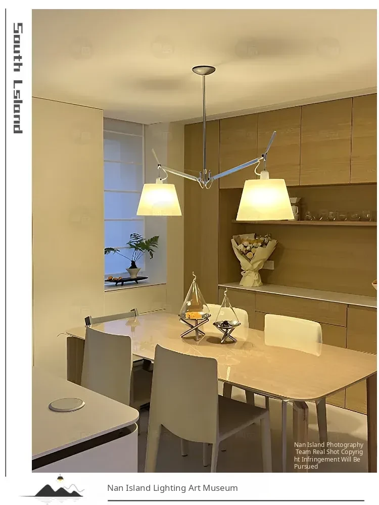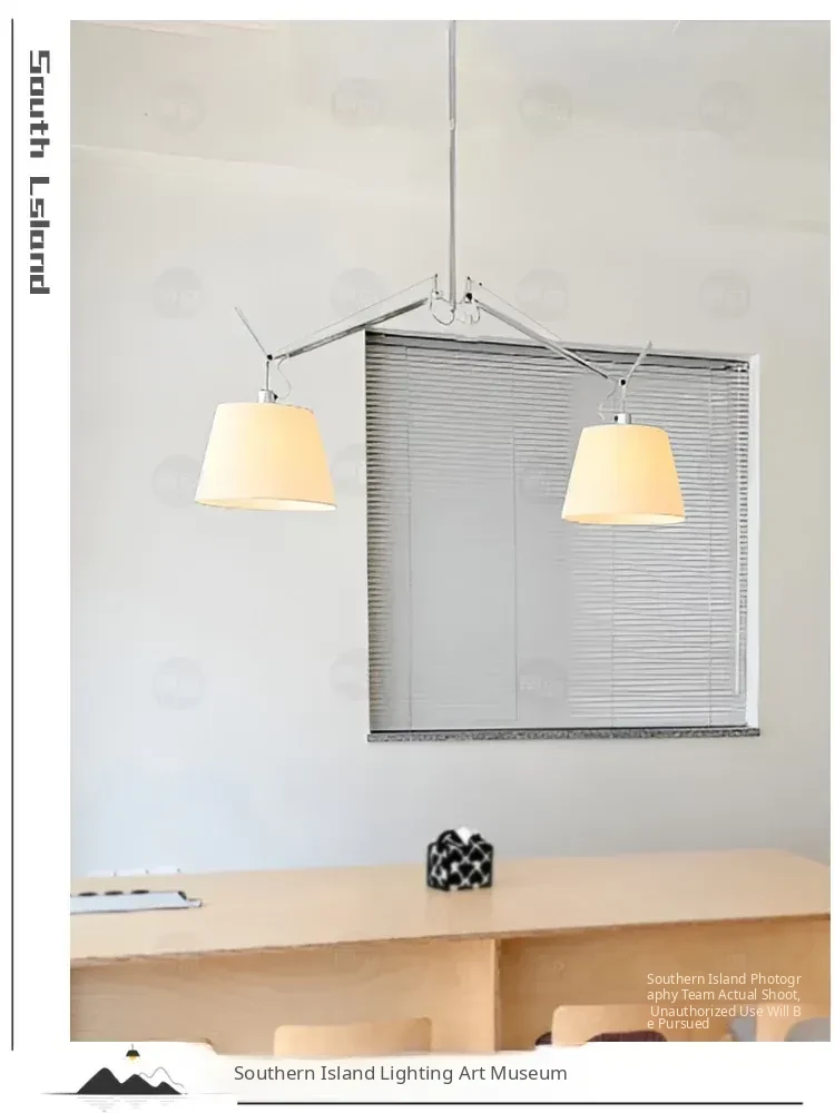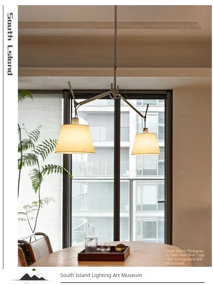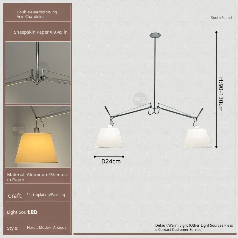 Italian Double-Head Vintage Restaurant Pendant Light – Adjustable Swing Arm Lamp for Dining Room and Study with Parchment Shade