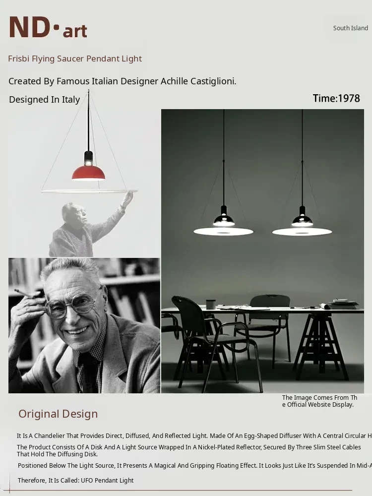 Italian Flo Frisbi Pendant Lamp - Modern Minimalist UFO Design for Dining Room & Study - Stylish Designer Lighting for a Chic Atmosphere