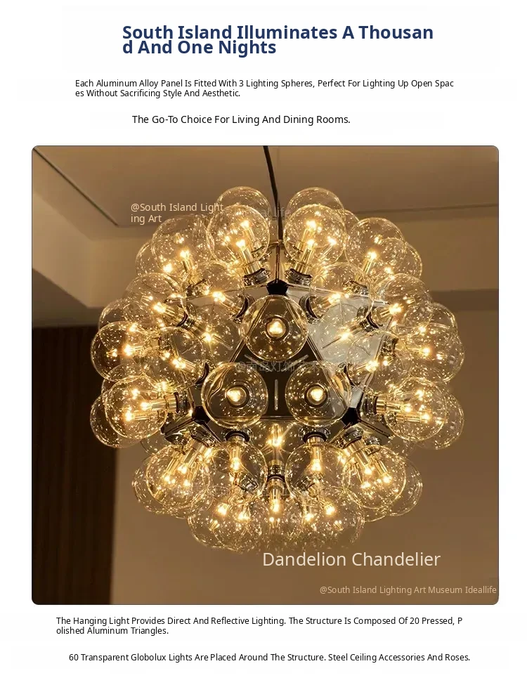 Italian Flo Taraxacum Dandelion Pendant Light – Vintage Style Chandelier for Living Rooms, Villas, Staircases, and French Dining Rooms