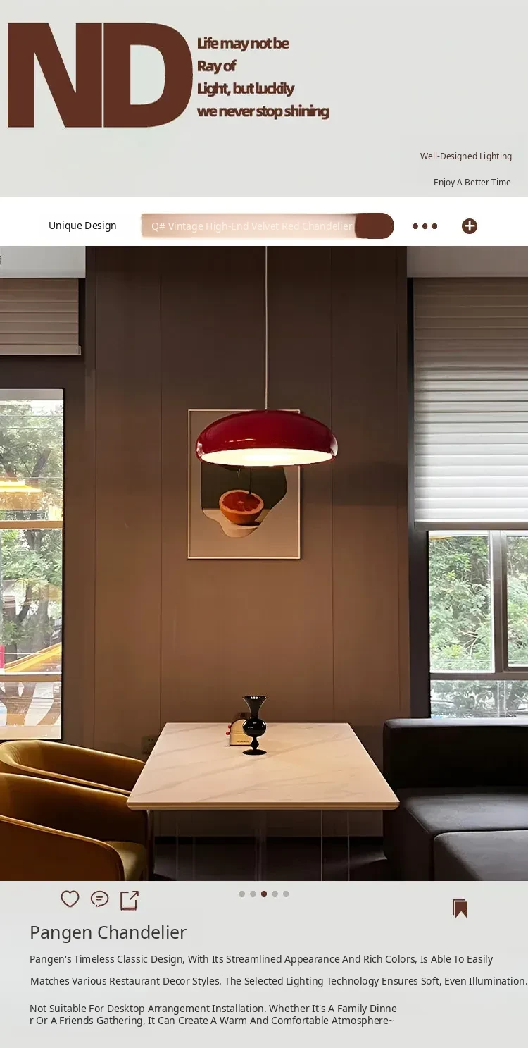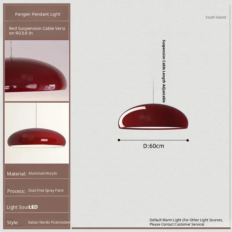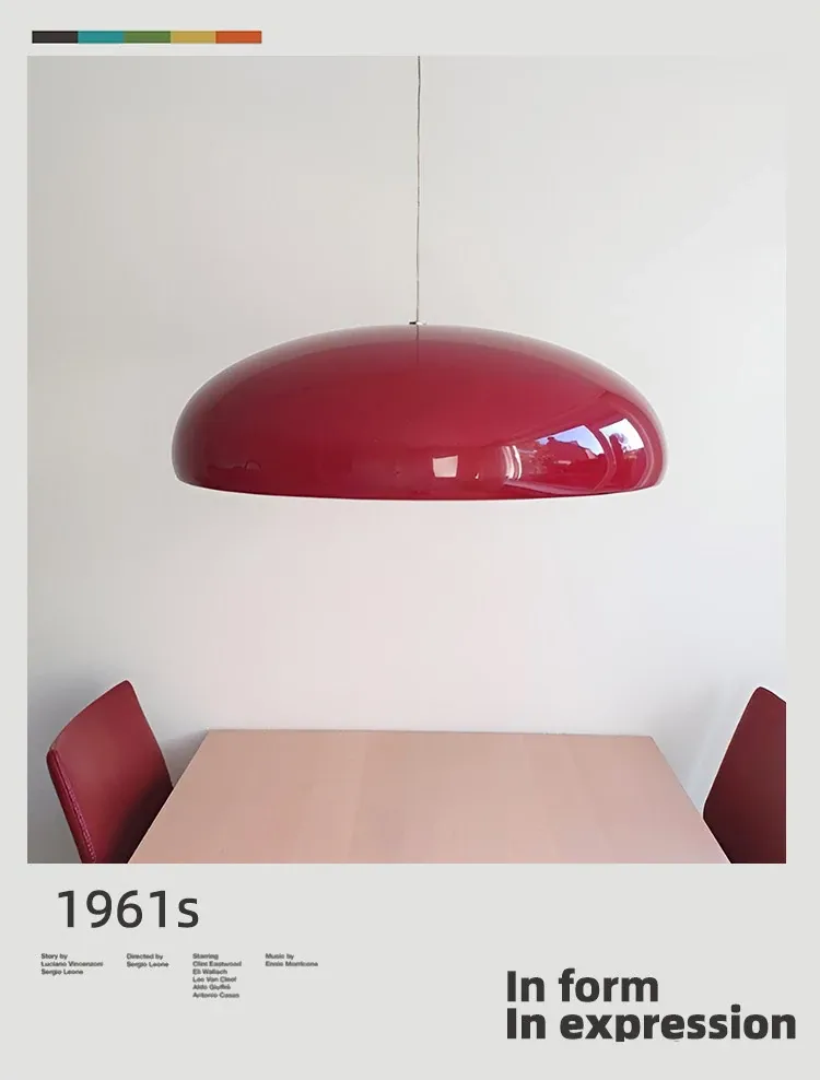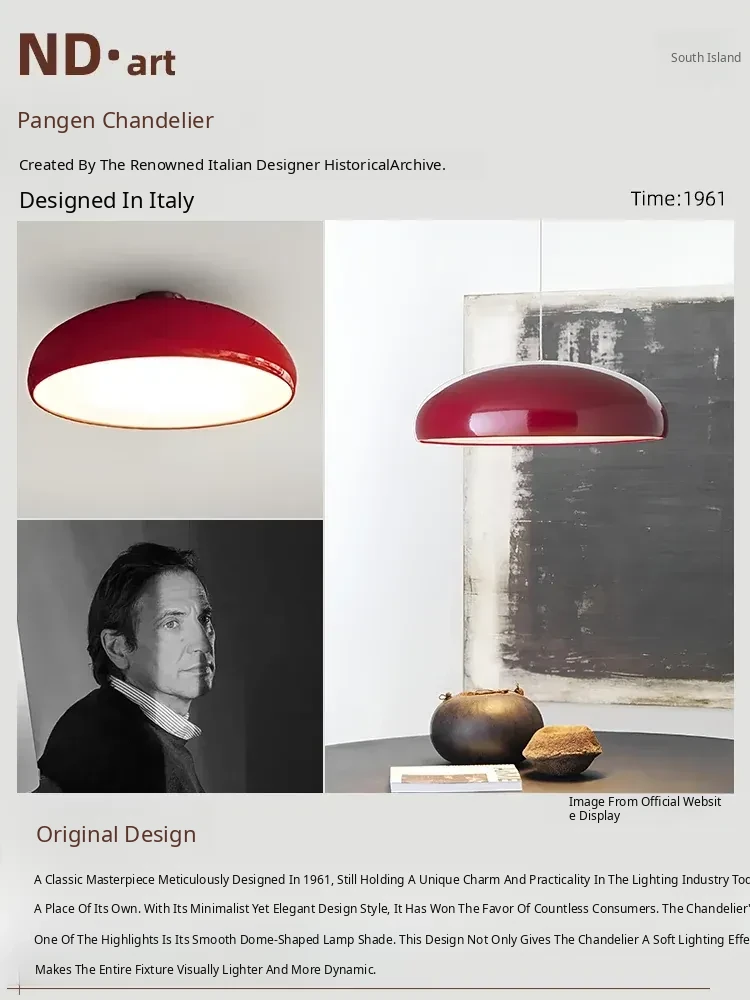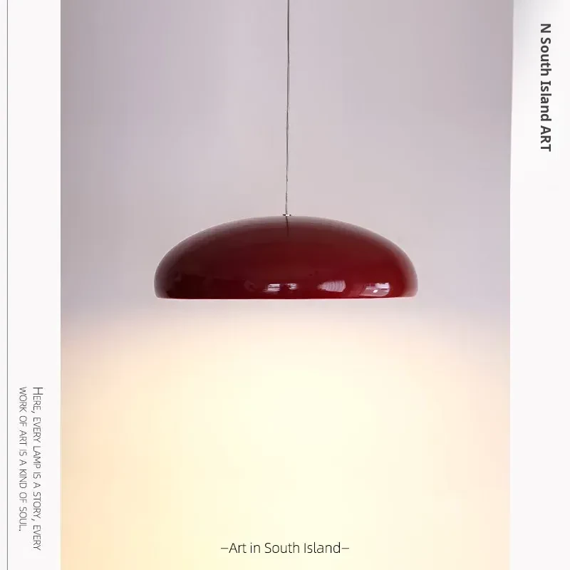 Italian Fontana Arte Pangen Pendant Light - Vintage Red Modern Chandelier for Dining Room, Island, Bedroom, and Study