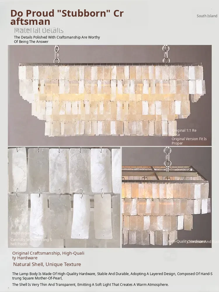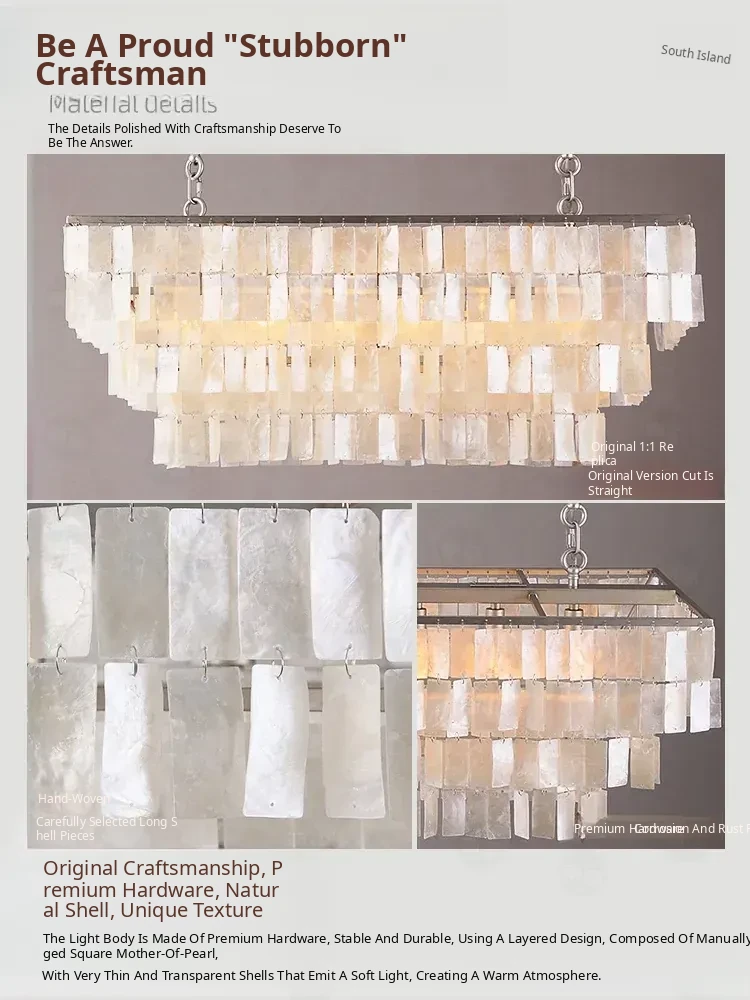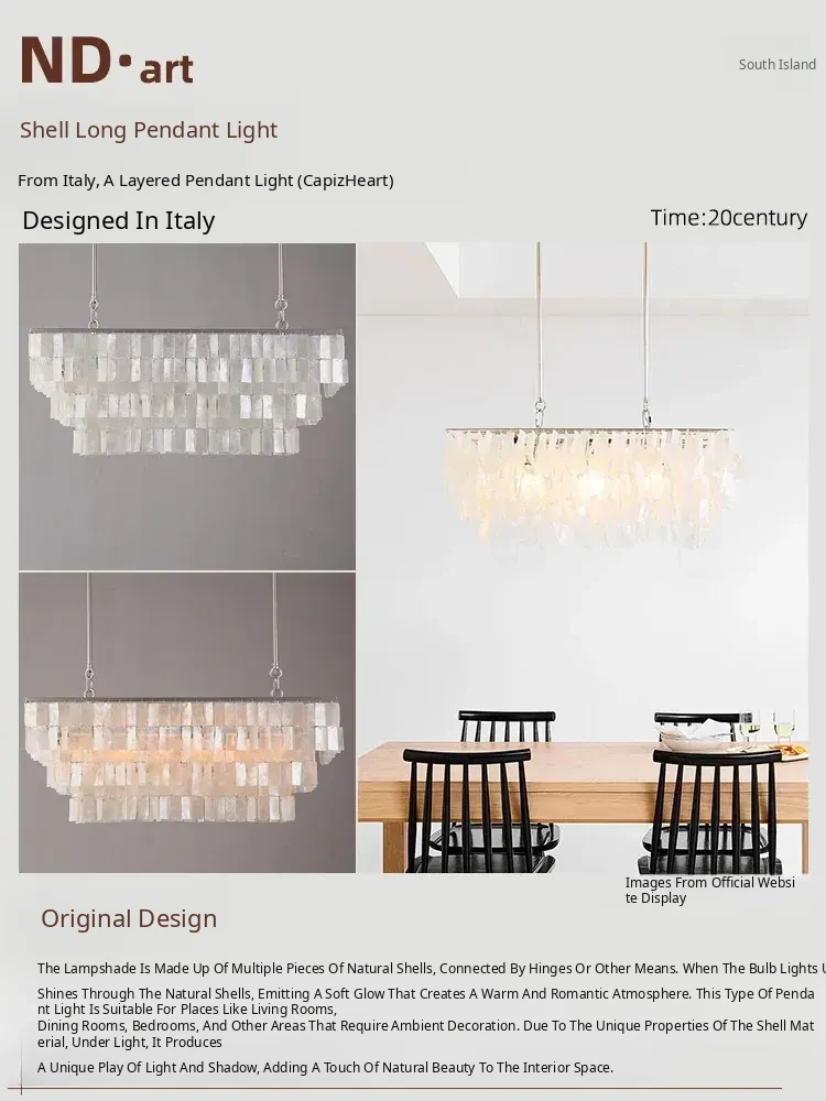 Italian Heart Shell Long Pendant Light - Vintage French Restaurant Chandelier, Retro Style Art Light for Study and Bar