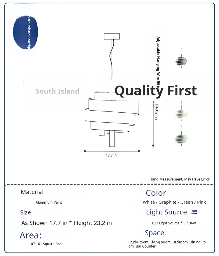 Upgraded Version [Graphite Color] Diameter 17.72in, Height 23.23in(The Height of the Hanging Wire Can Be Adjusted)