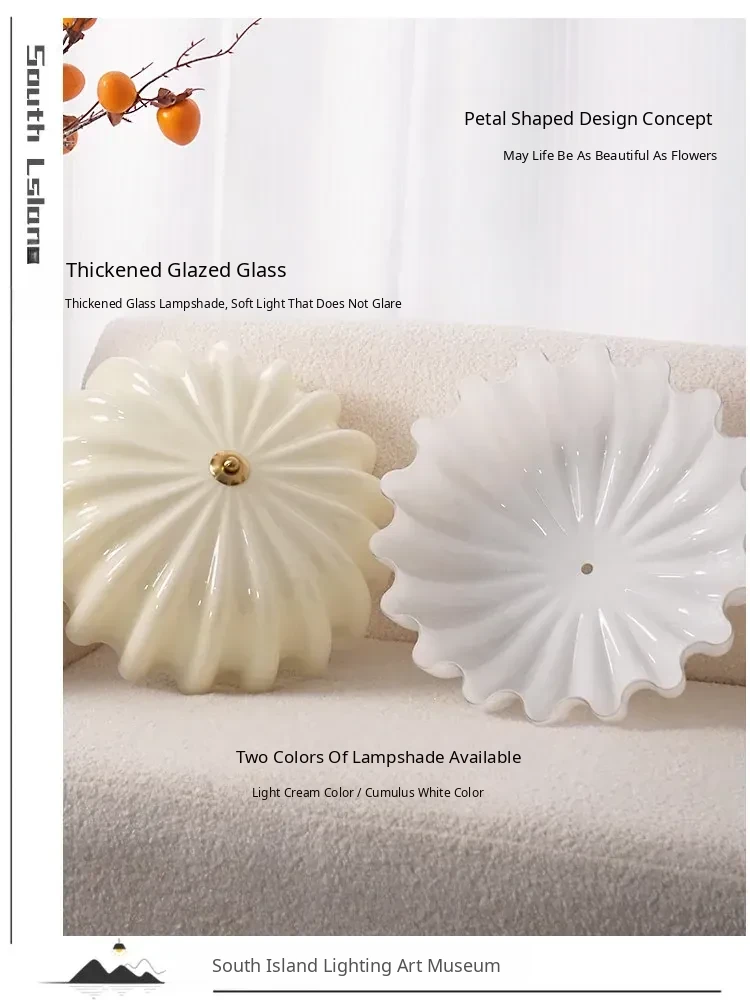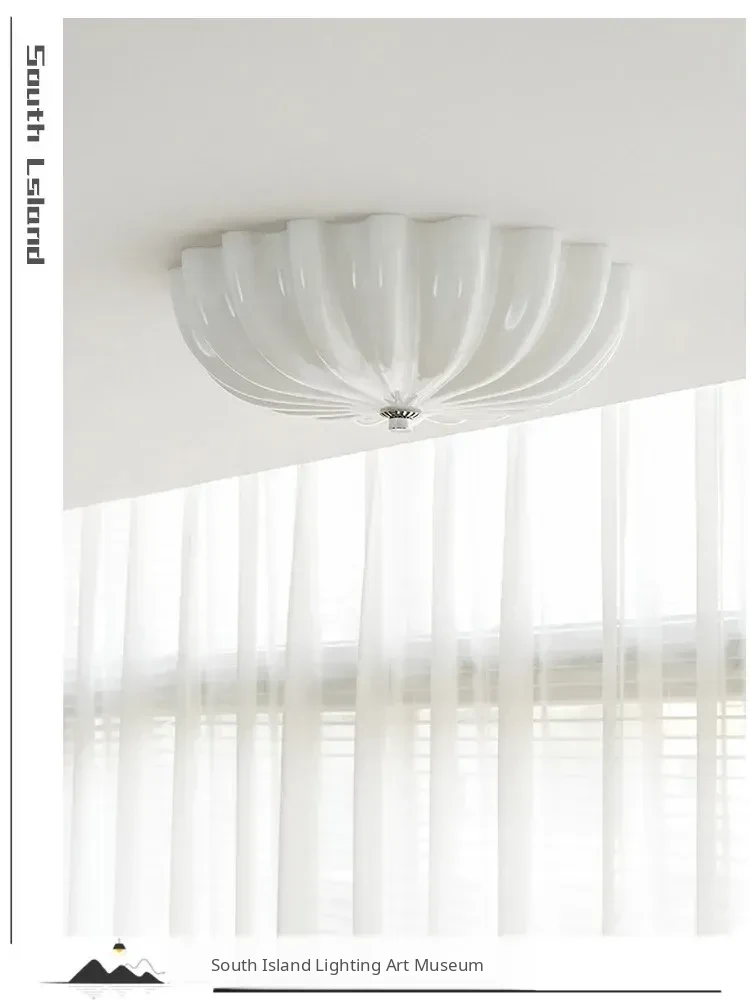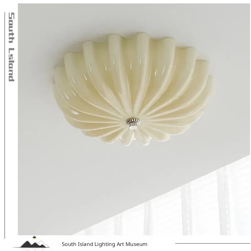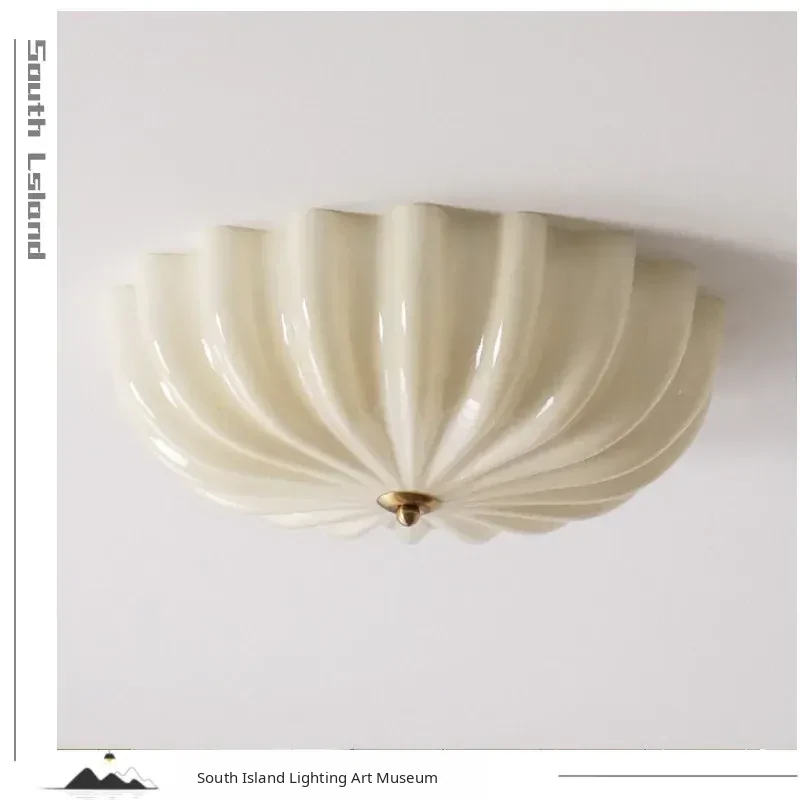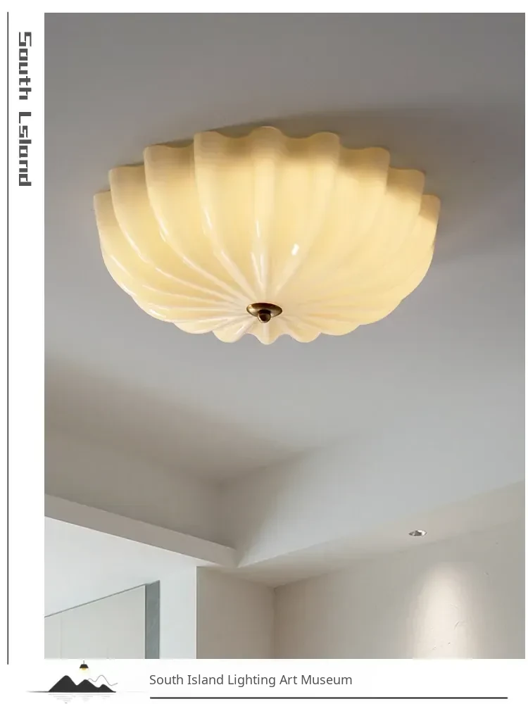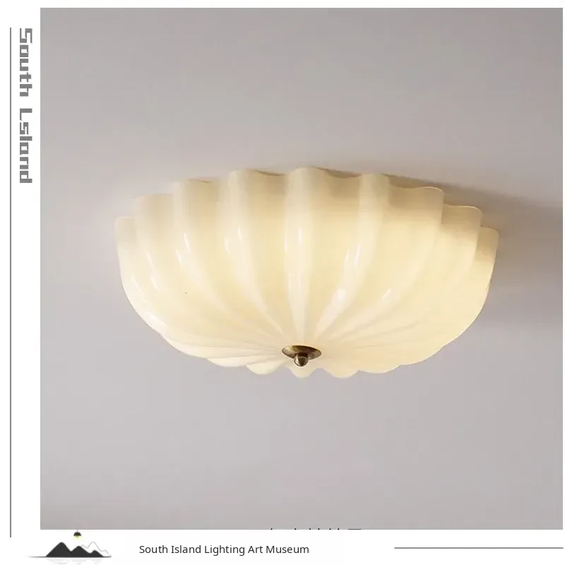 Modern French Vintage Ceiling Light - Creamy Elegant Design for Bedroom, Cloakroom, Entrance, and Balcony - Full Spectrum Eye-Caring Glass Fixture