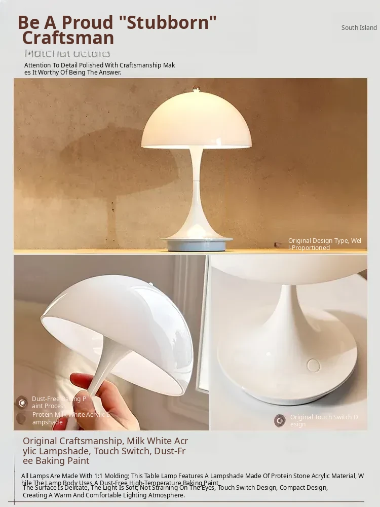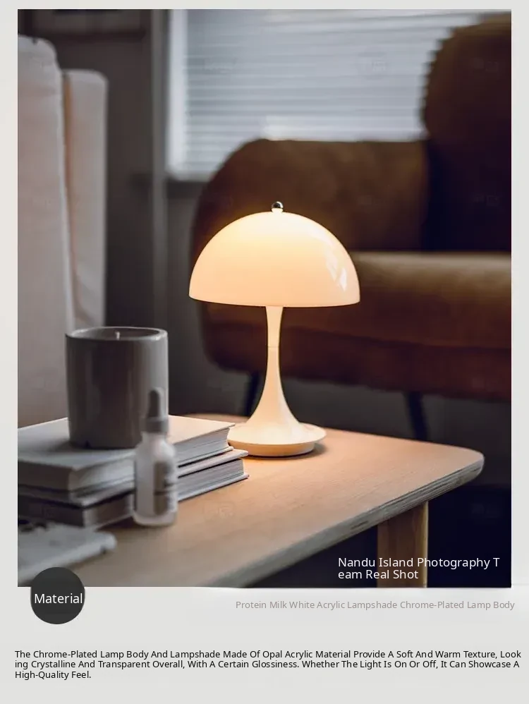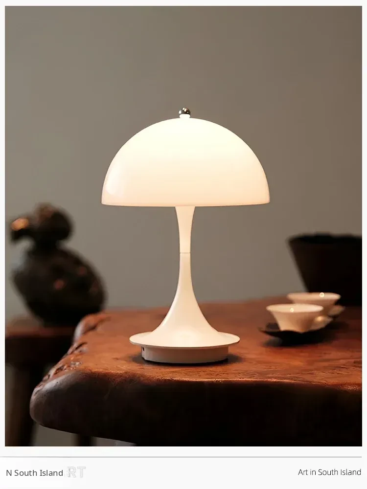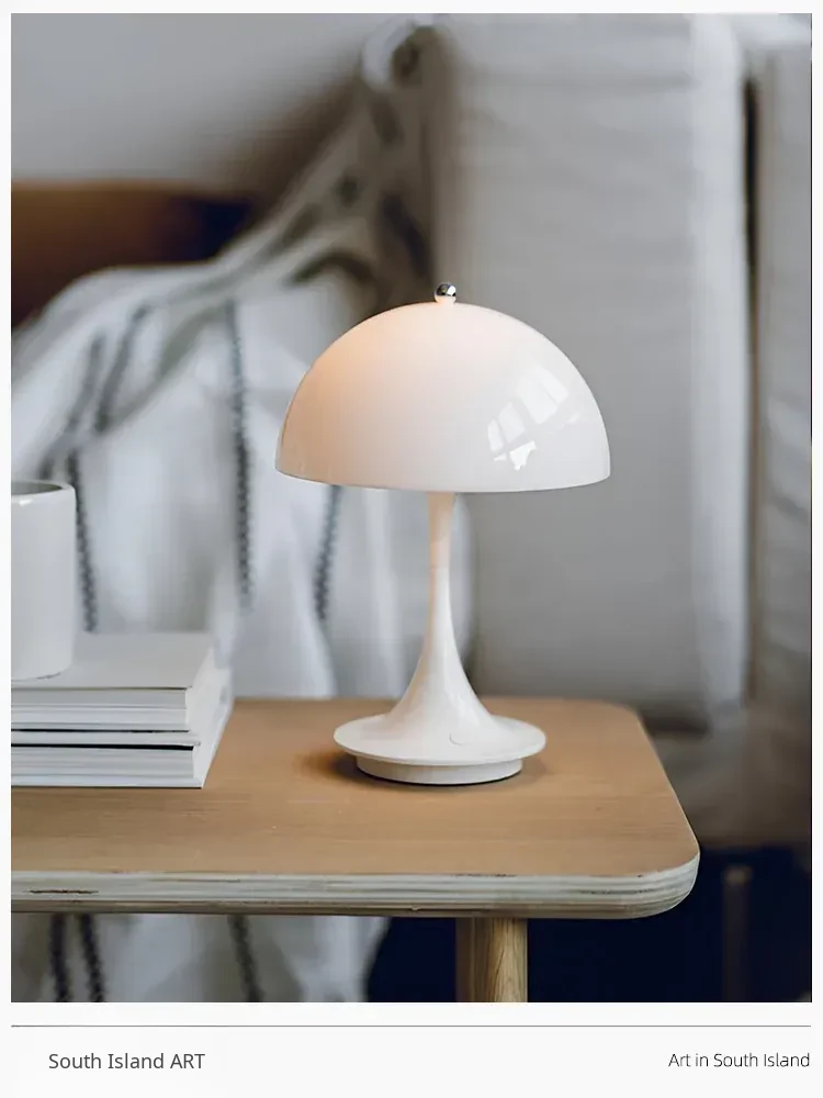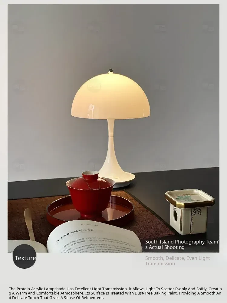 Nordic Floor Mushroom Table Lamp - Danish Mid-Century Design for Living Room, Study, or Sofa Side - Creamy Aesthetic Bedside Lighting