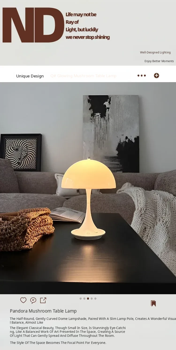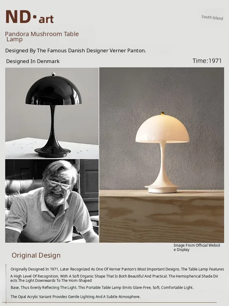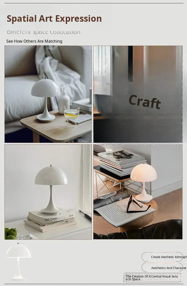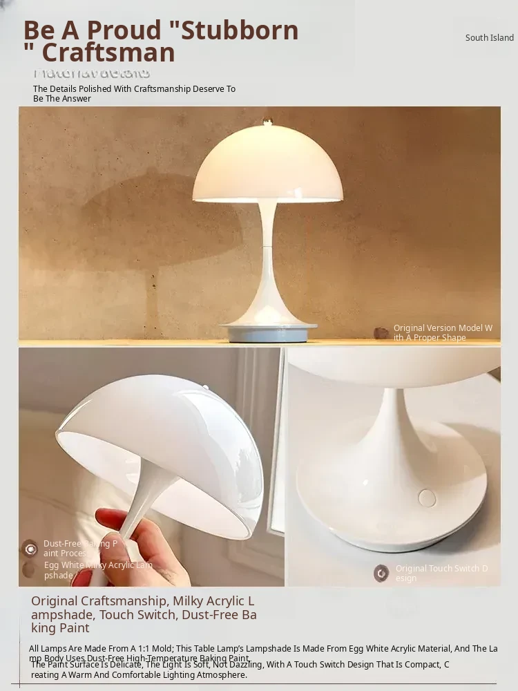 Nordic Floor Mushroom Table Lamp - Danish Mid-Century Design for Living Room, Study, or Sofa Side - Creamy Aesthetic Bedside Lighting