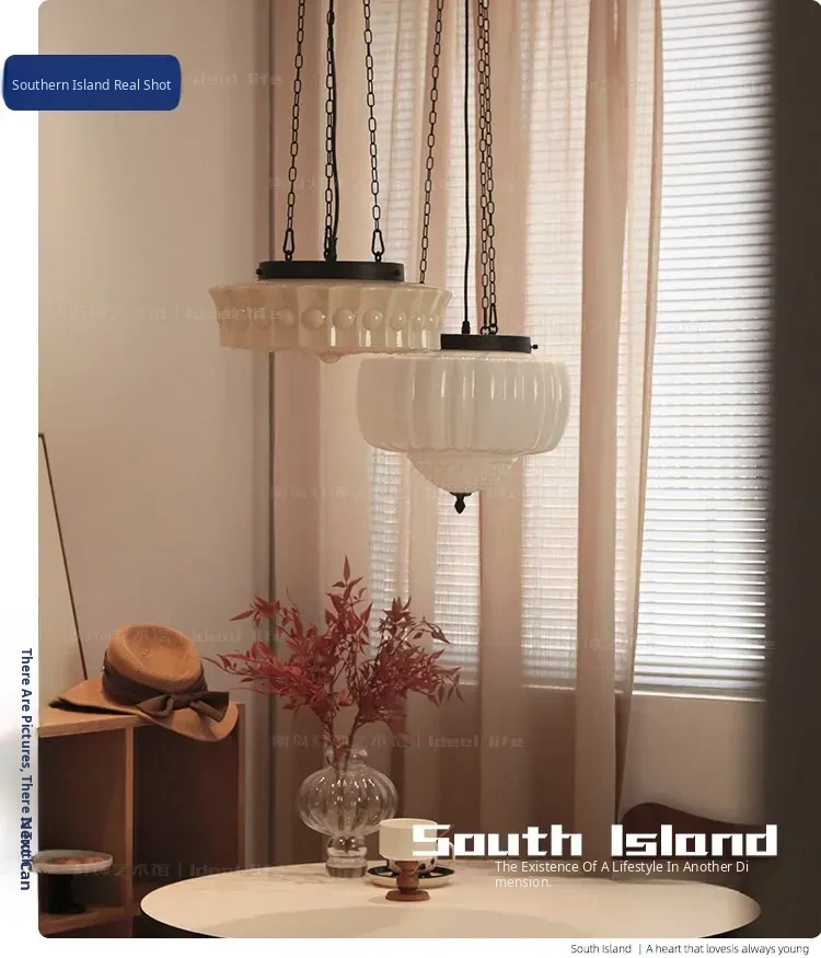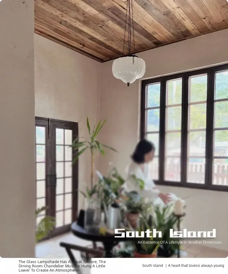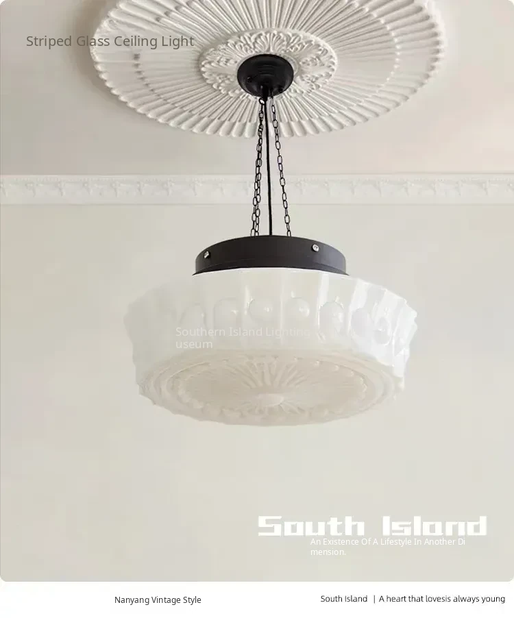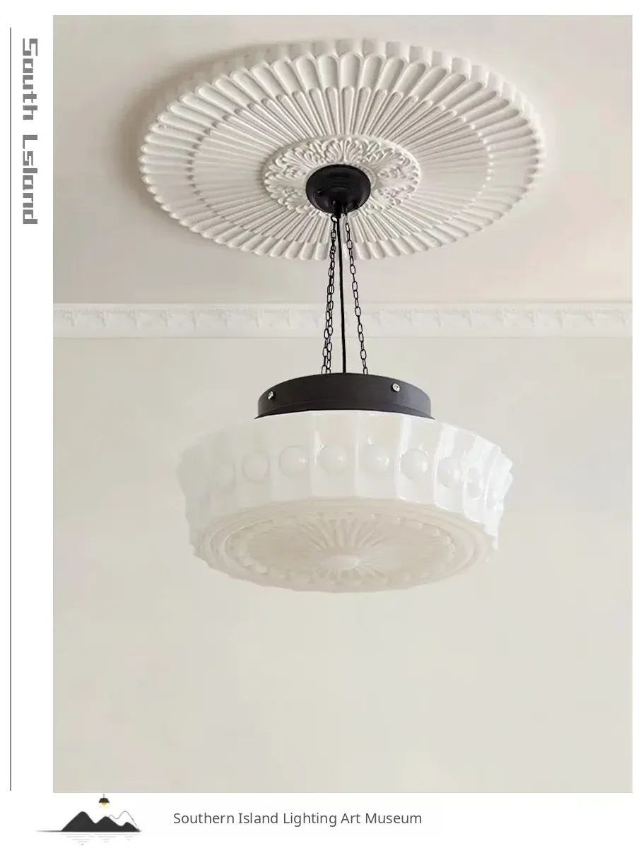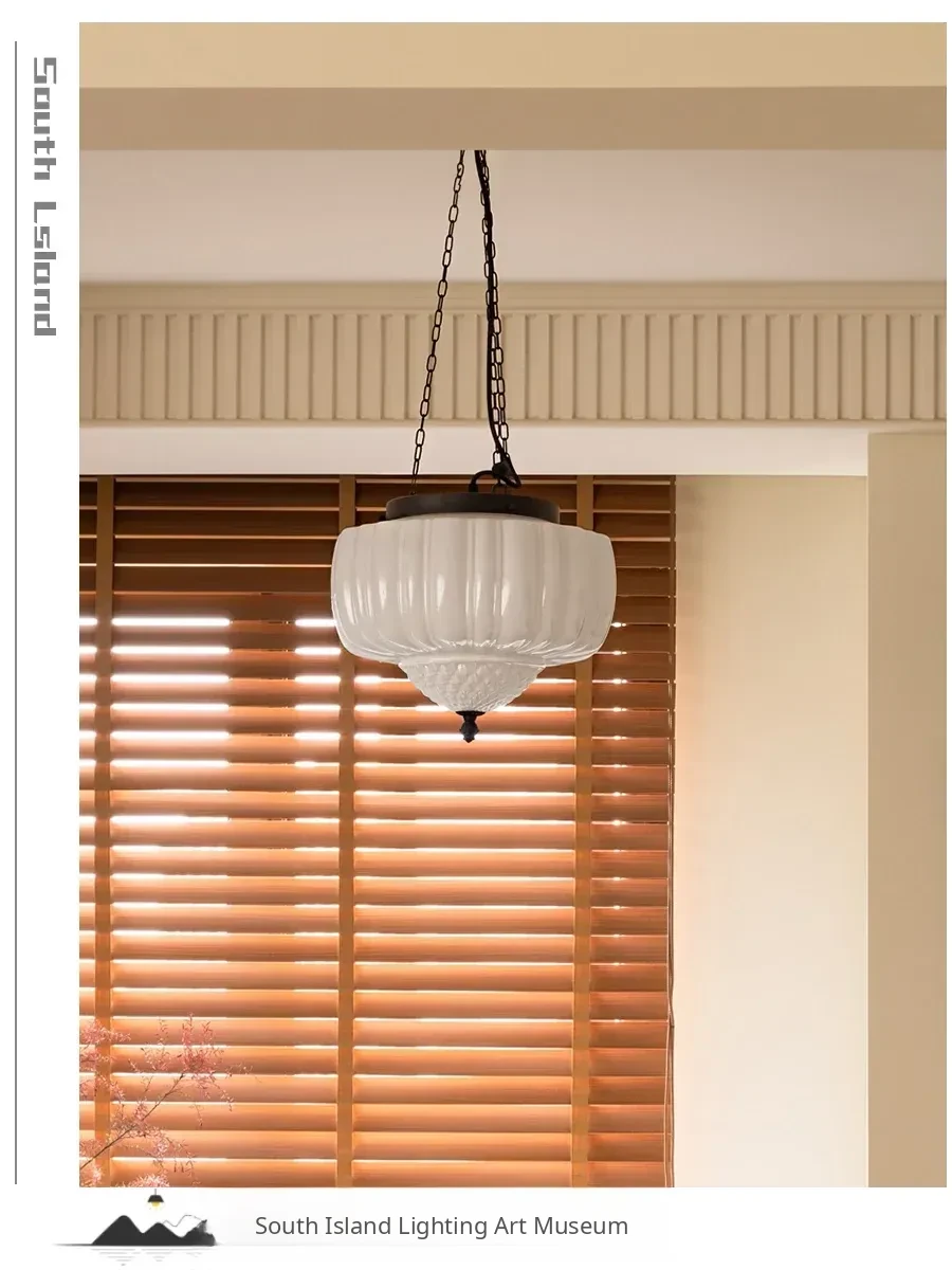 Vintage American Art Deco Pendant Light - Tropical Artistic Glass Chandelier for Bedroom, Dining Room, and Bar - French Cream Style Lighting Fixture