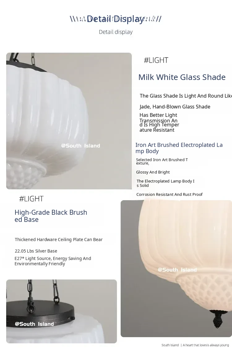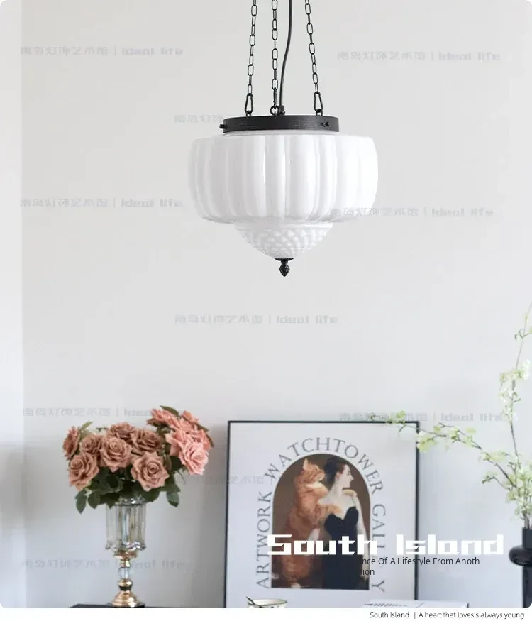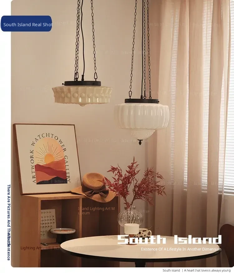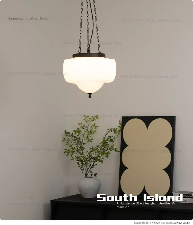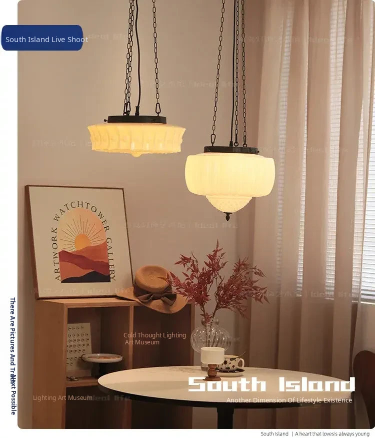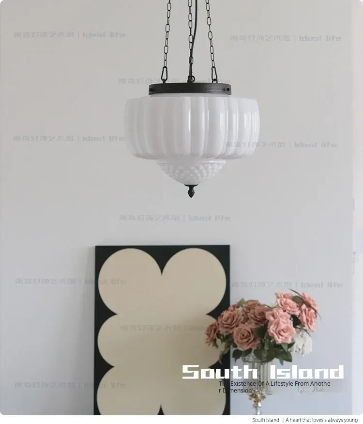 Vintage American Art Deco Pendant Light - Tropical Artistic Glass Chandelier for Bedroom, Dining Room, and Bar - French Cream Style Lighting Fixture