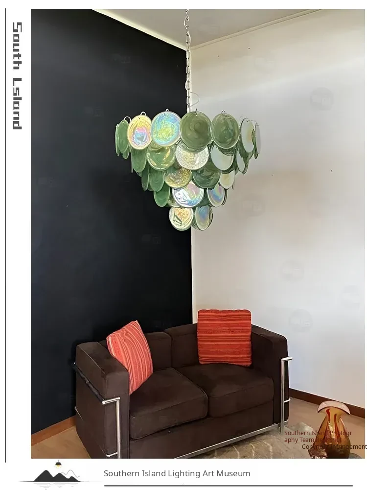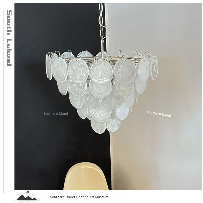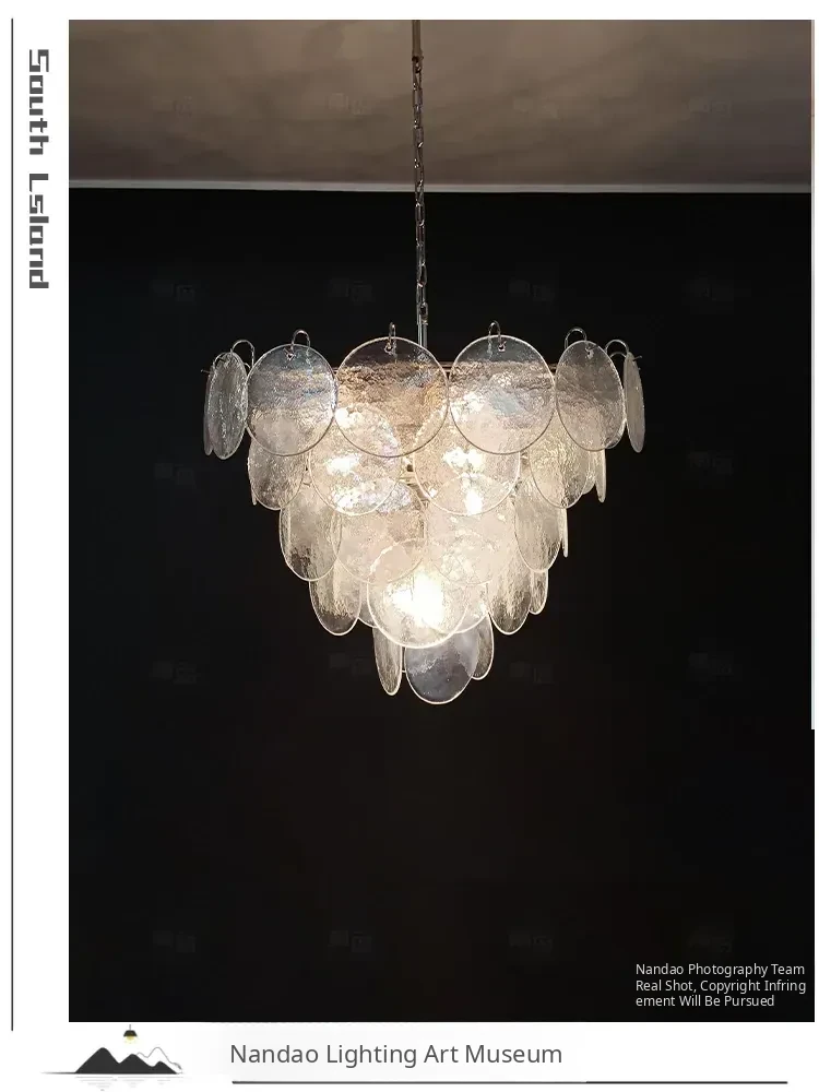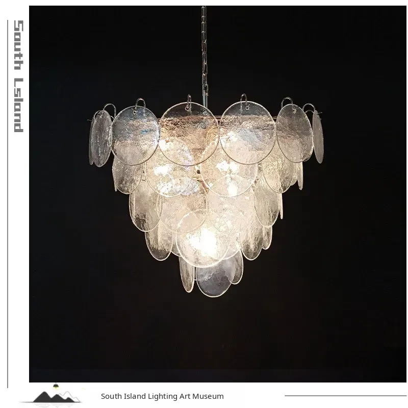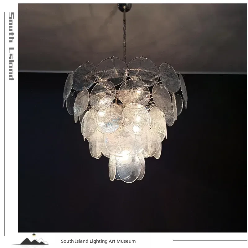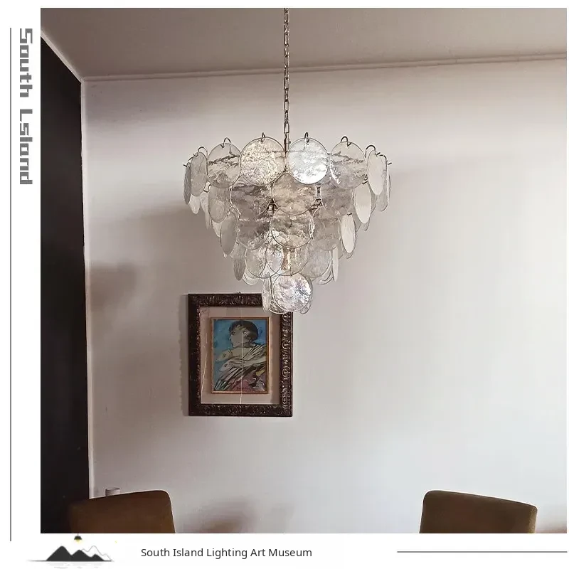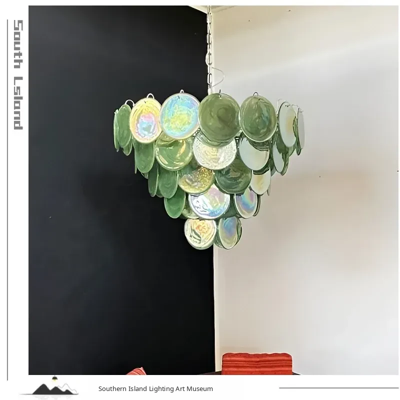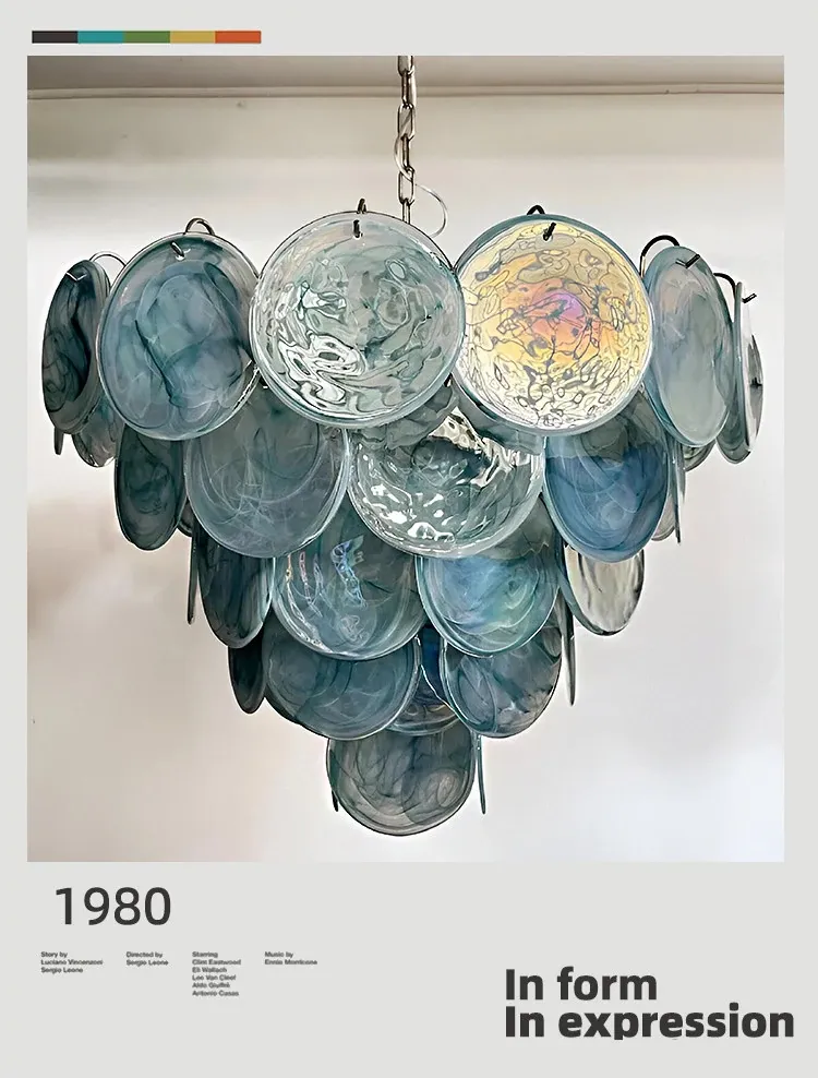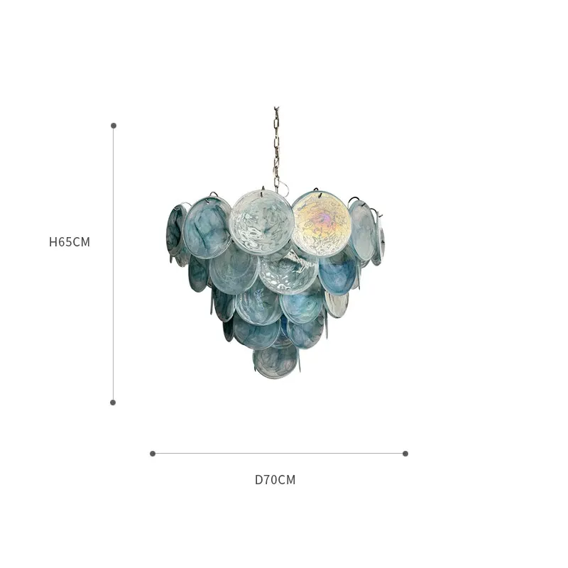Vintage French Murano Glass Chandelier - Blue Disc Design for Living Room, Retro Bedroom, and Study Lighting