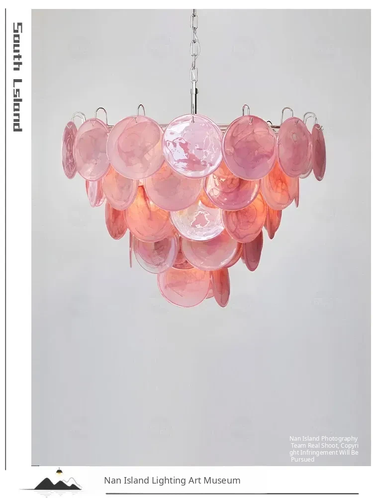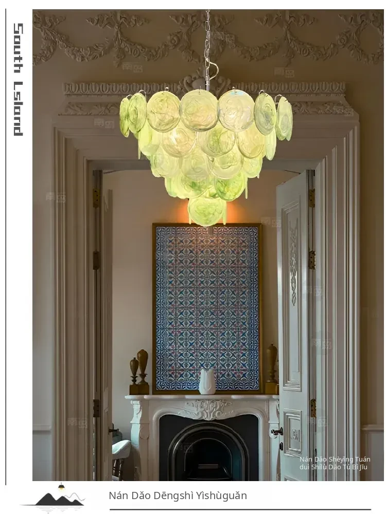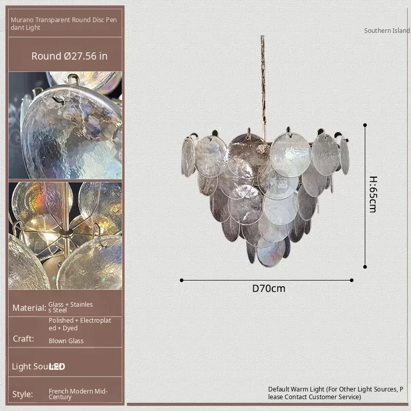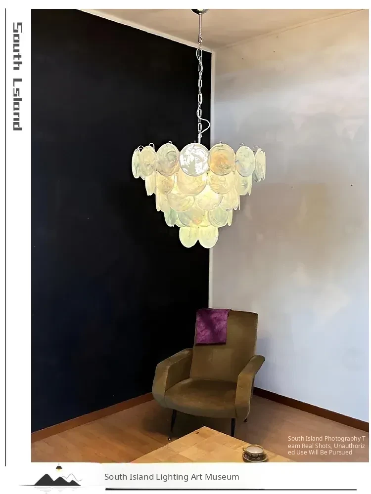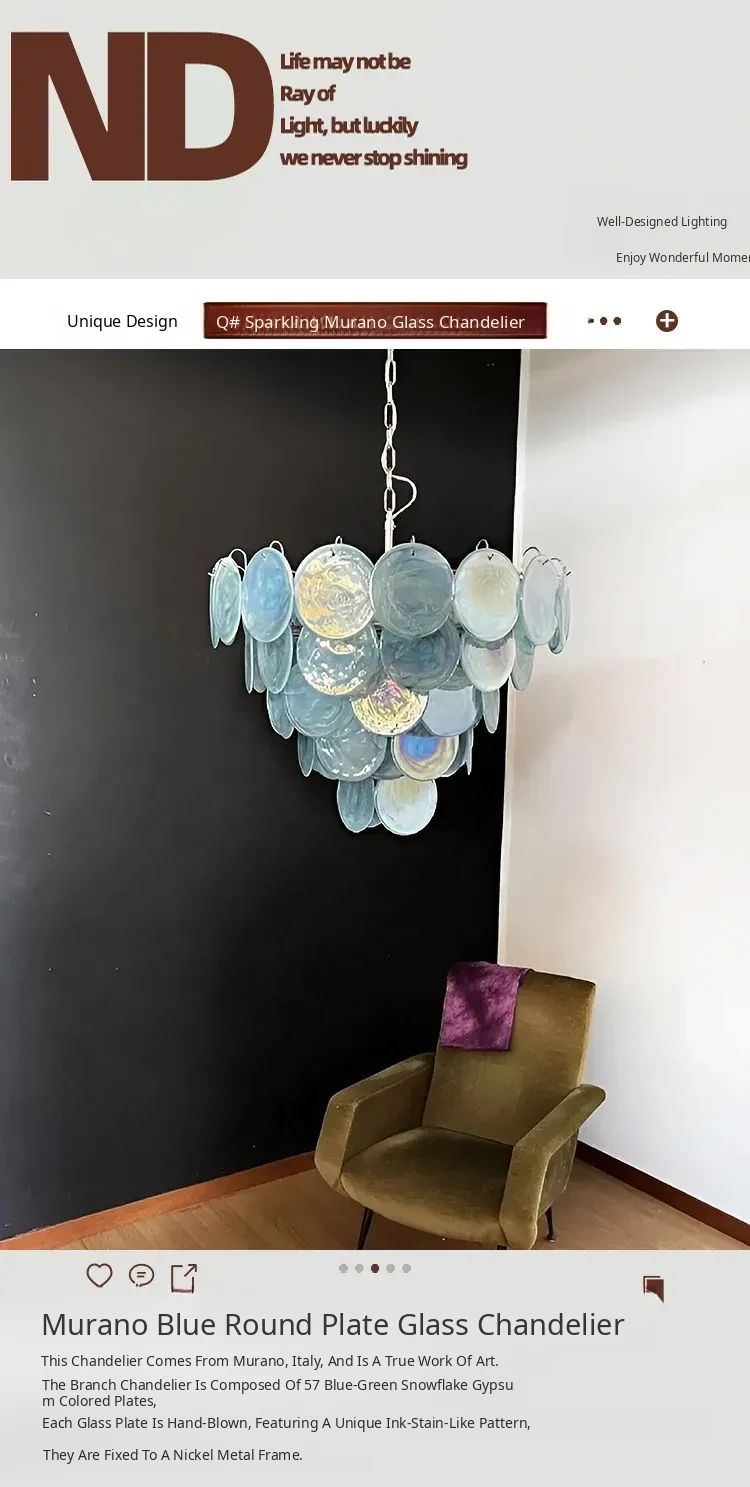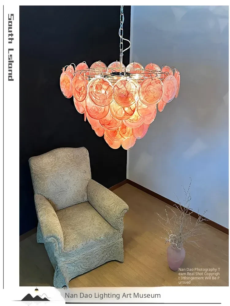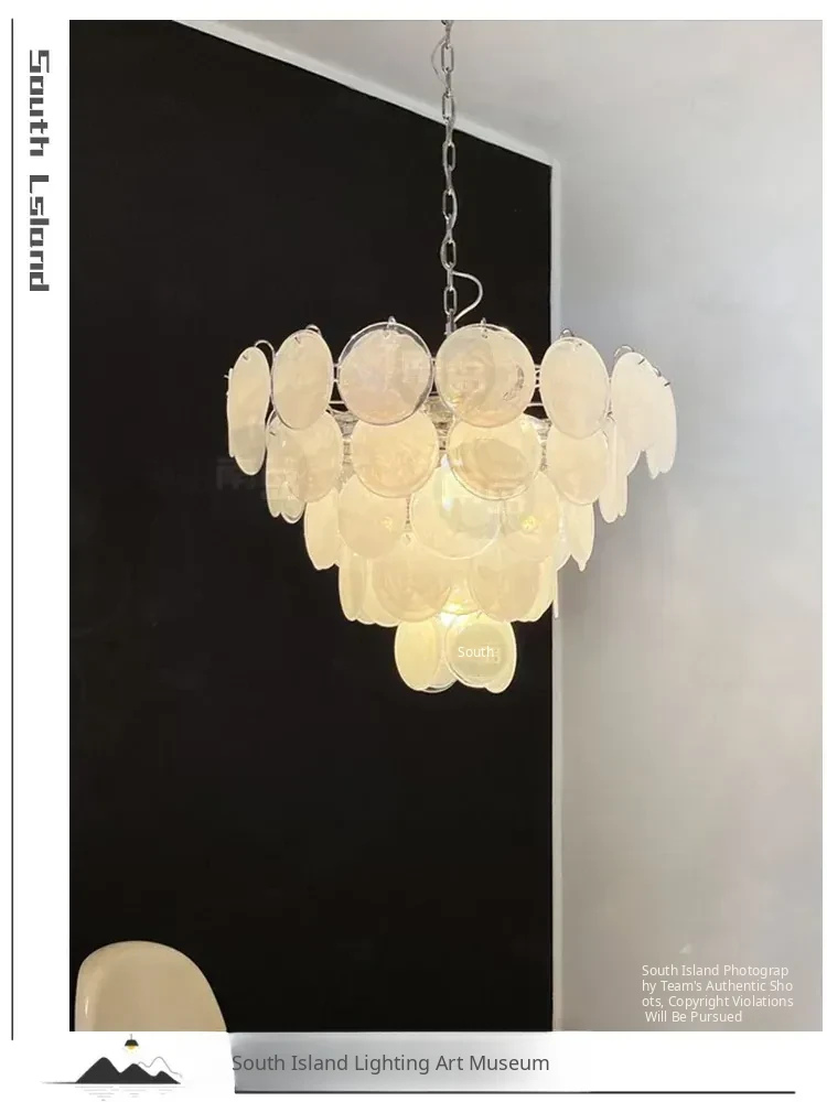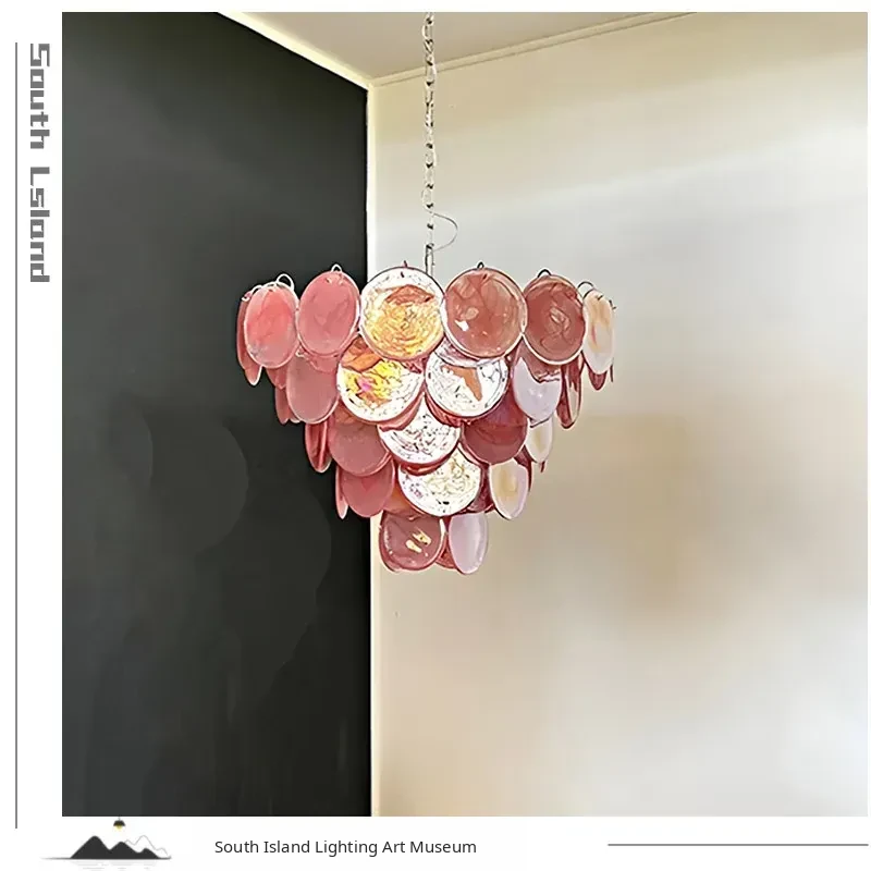 Vintage French Murano Glass Chandelier - Blue Disc Design for Living Room, Retro Bedroom, and Study Lighting