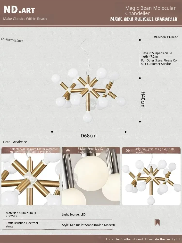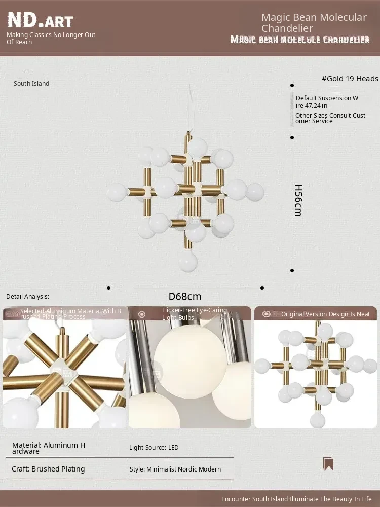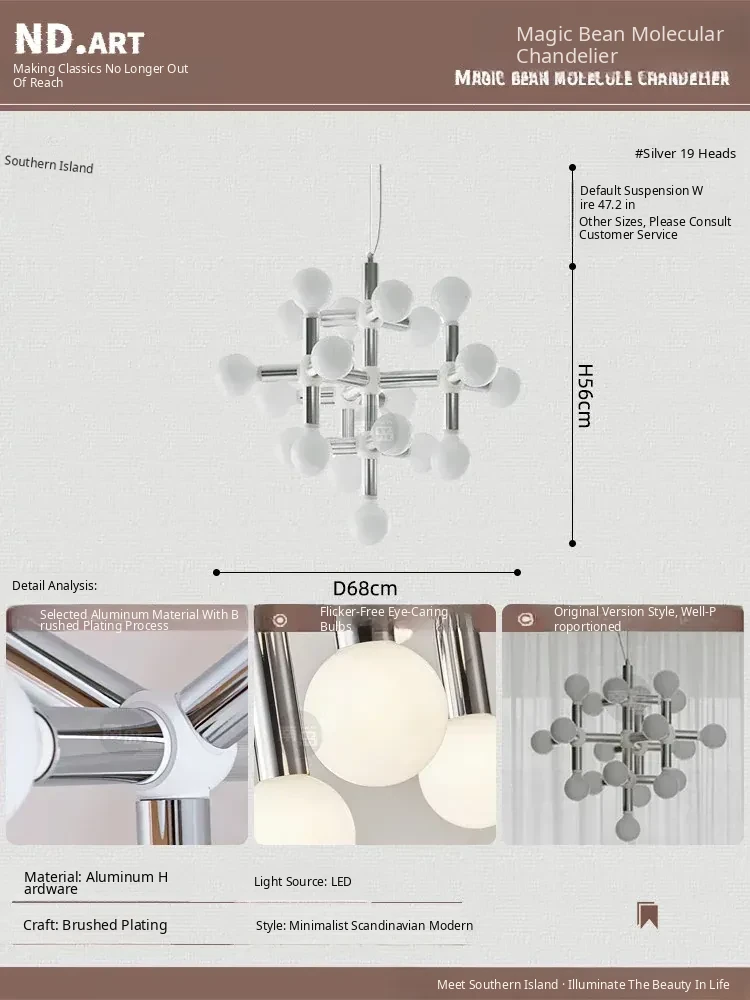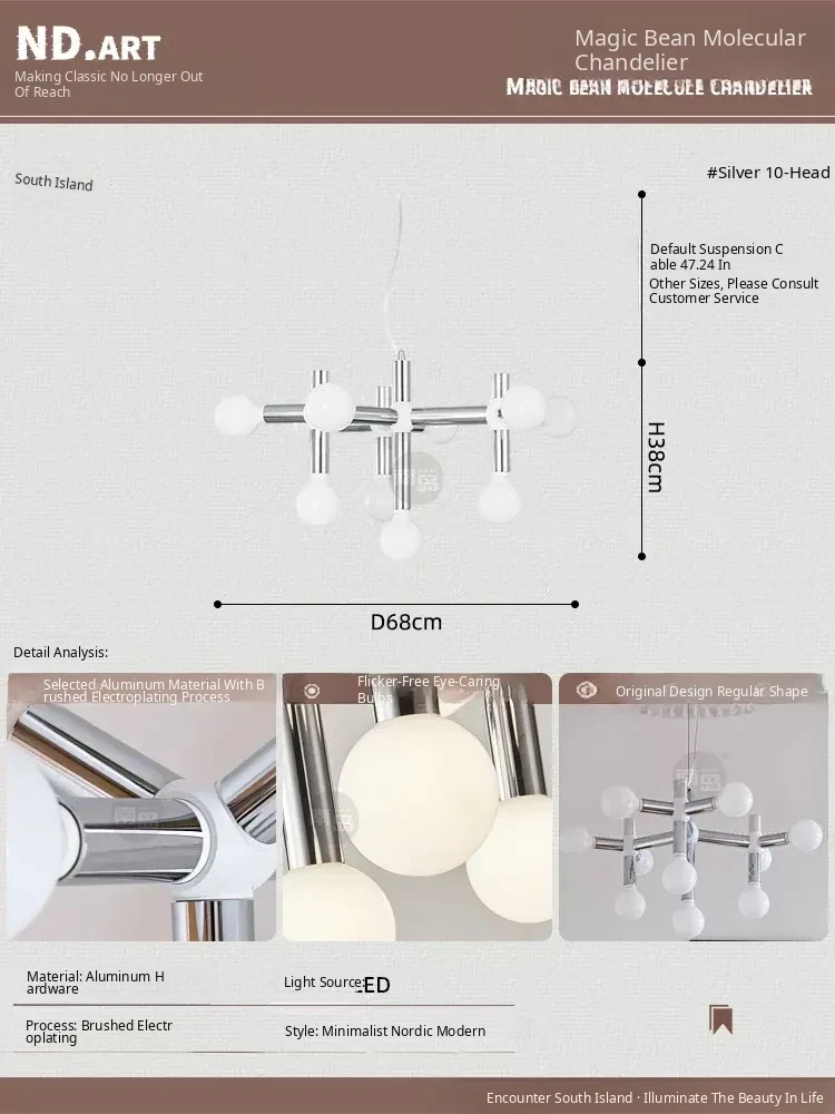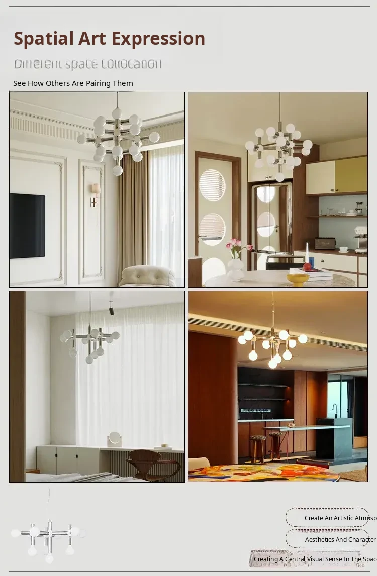 Vintage Mid-Century Modern Molecule Chandelier - Bauhaus Inspired Lighting for Living Room, Dining Room, Retro Bedroom, and Study
