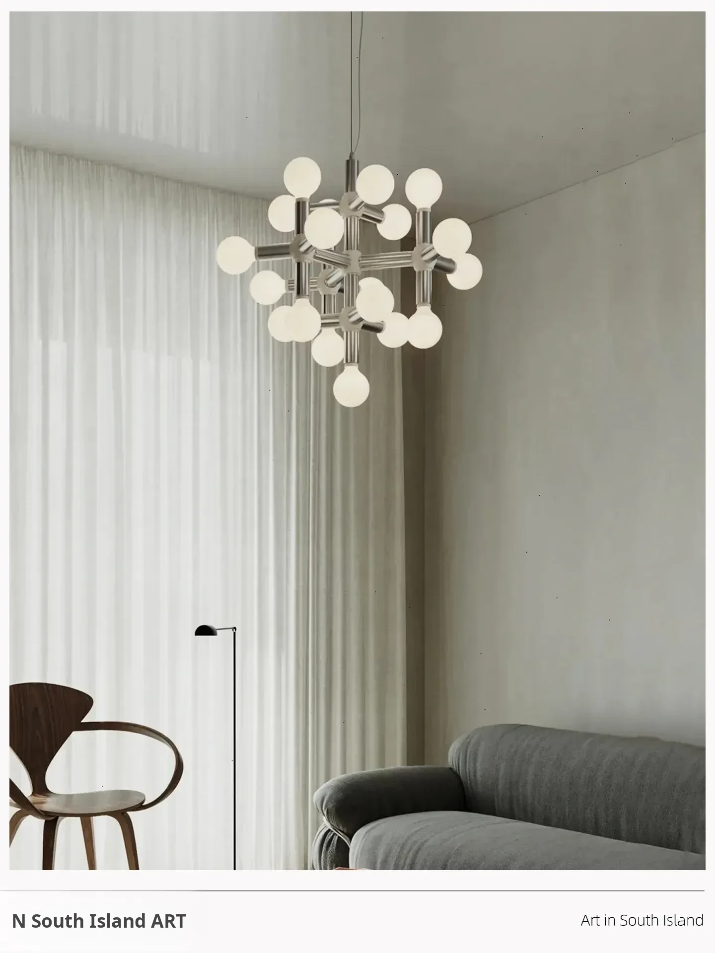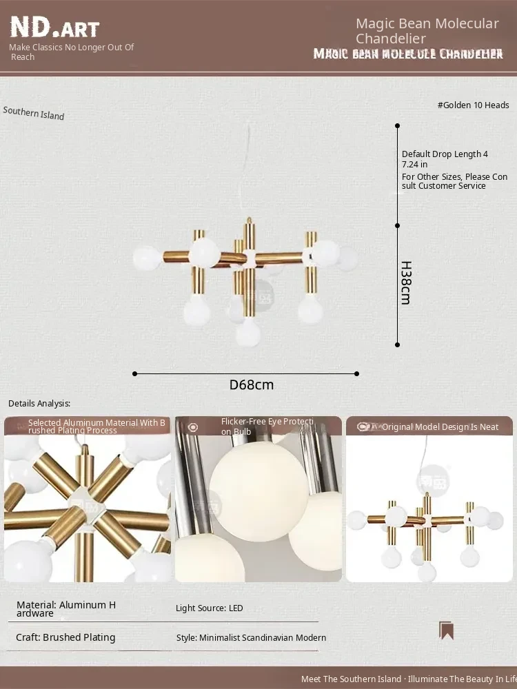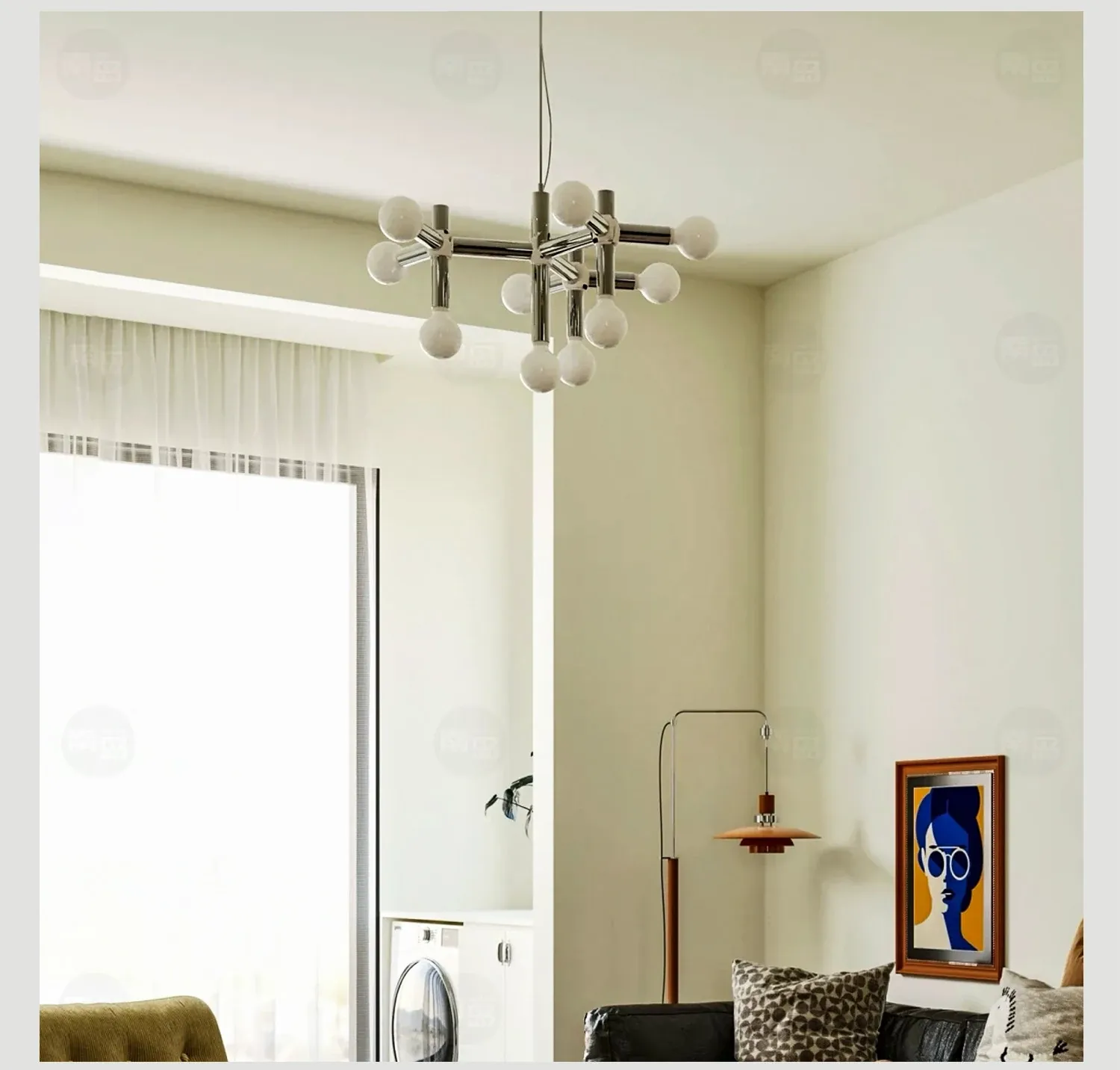 Vintage Mid-Century Modern Molecule Chandelier - Bauhaus Inspired Lighting for Living Room, Dining Room, Retro Bedroom, and Study
