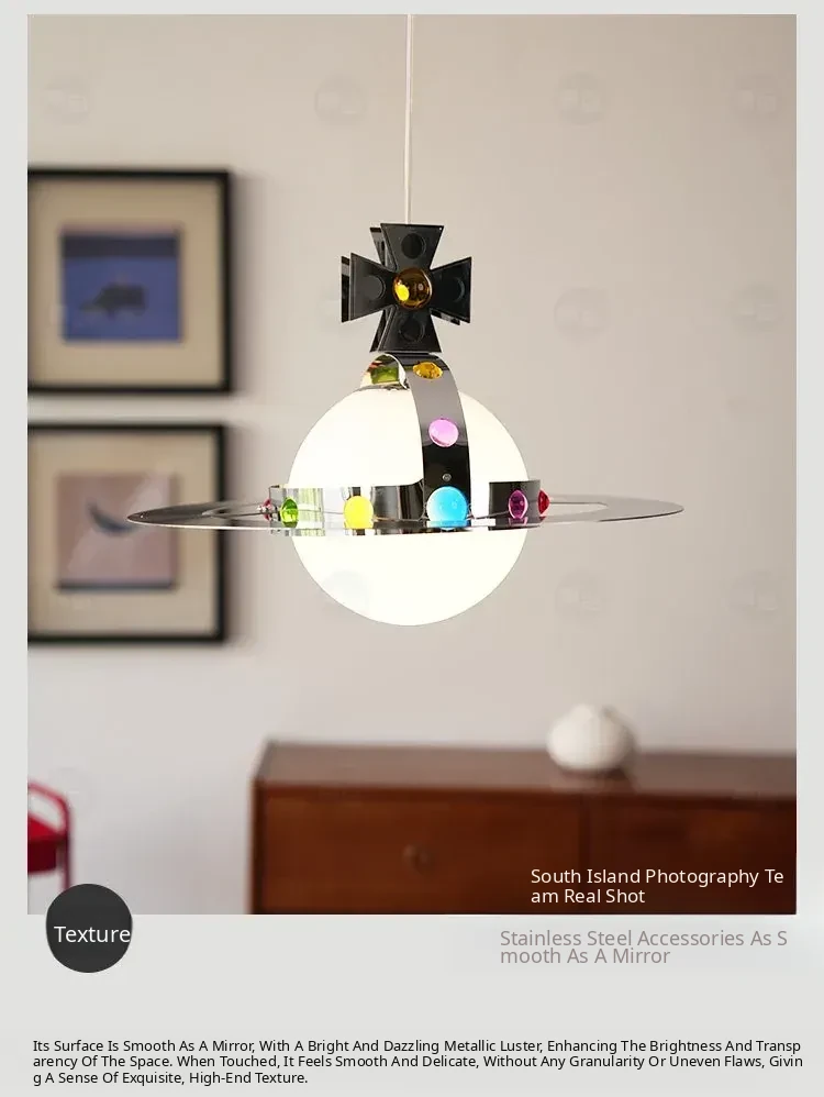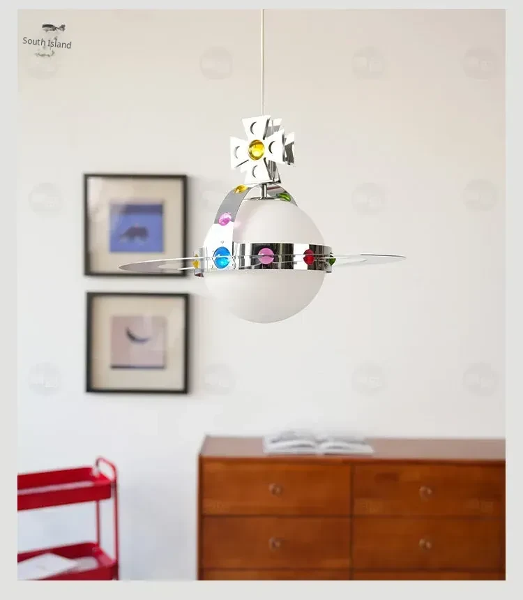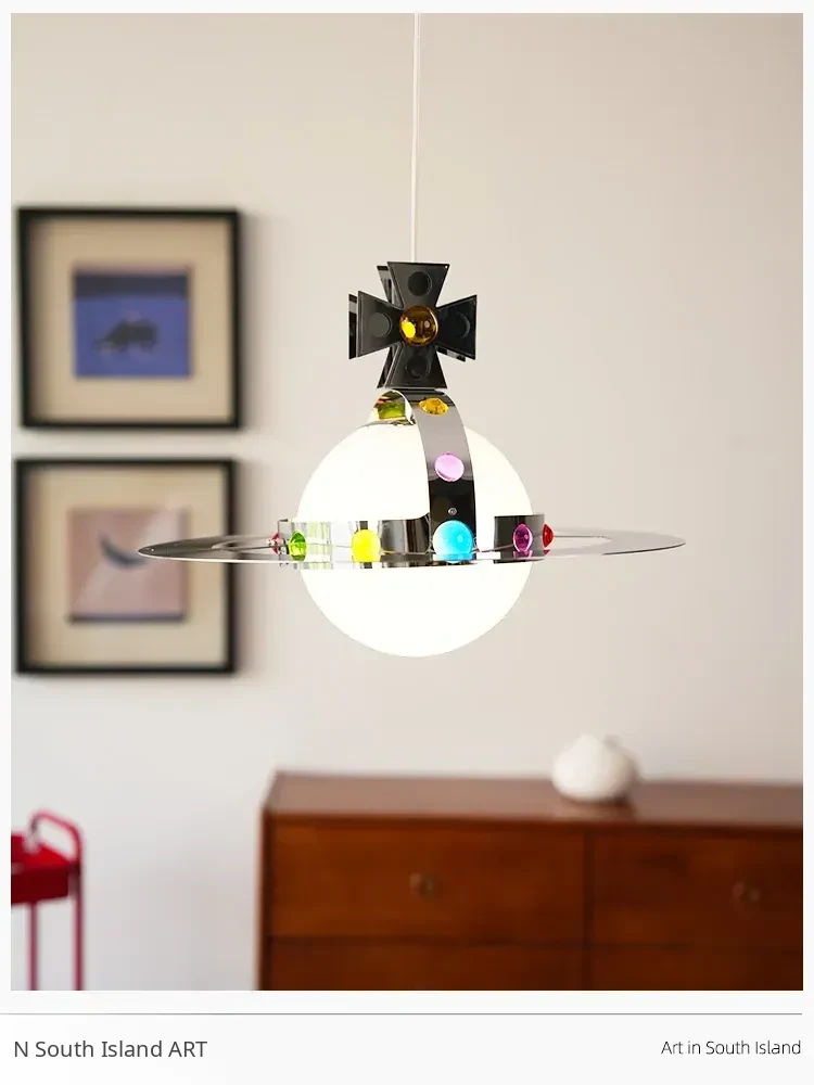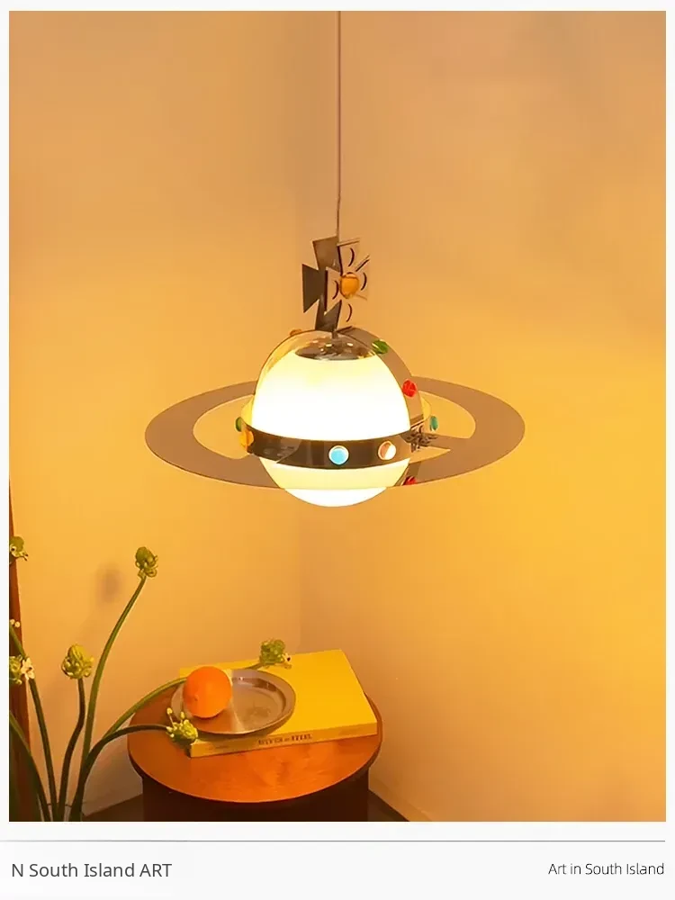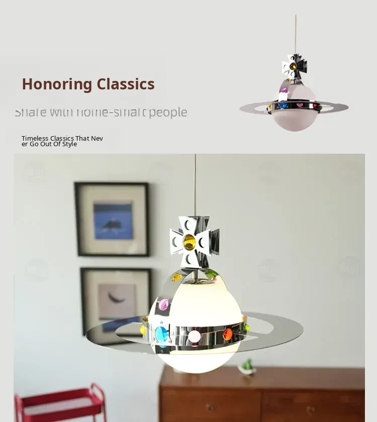 Vintage Saturn Chandelier - Memphis UFO Dining Light, Bauhaus Style Planet Pendant for Kids' Room & Bedroom