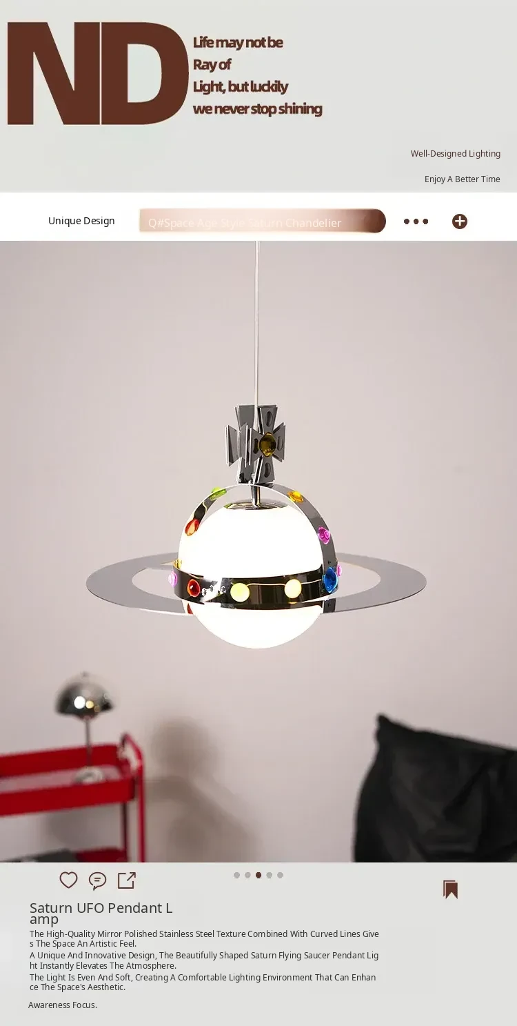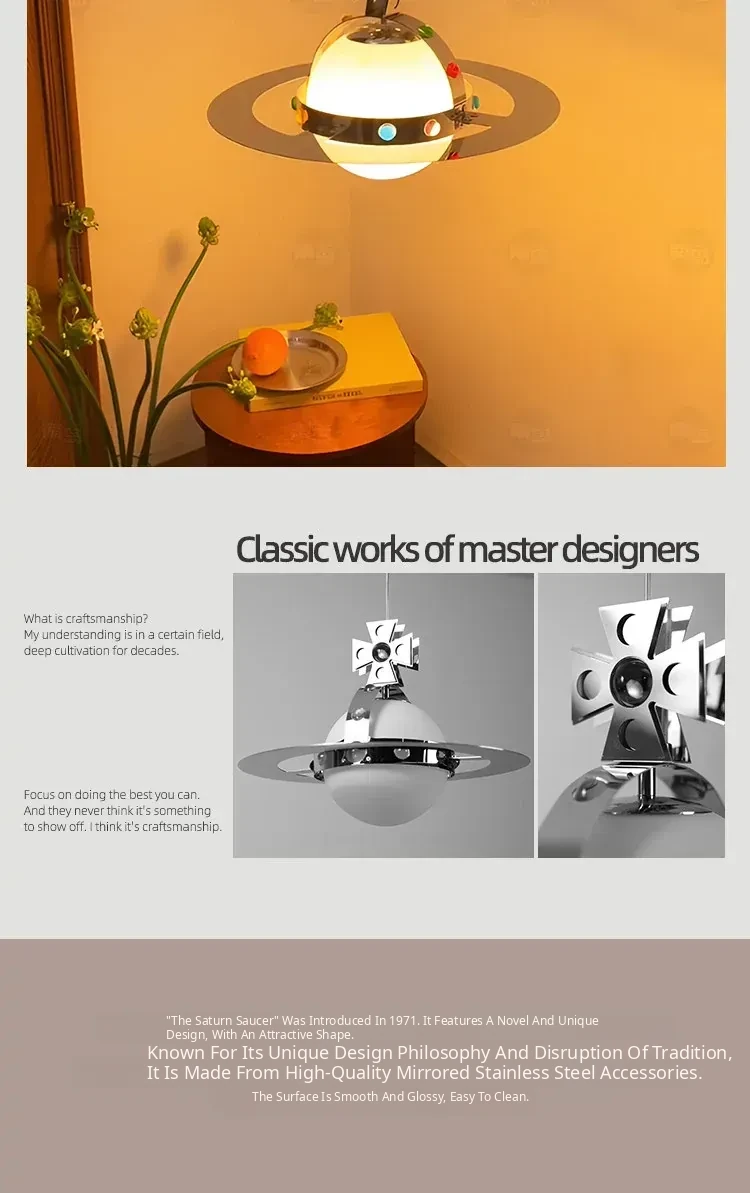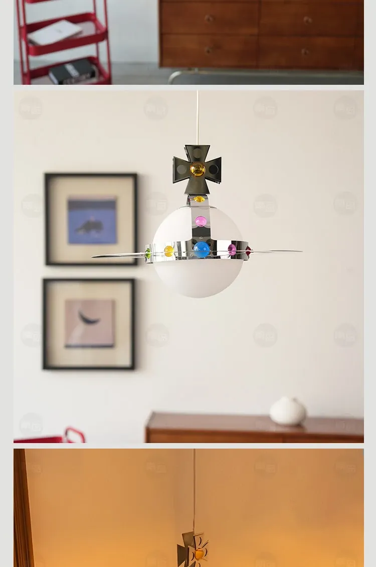 Vintage Saturn Chandelier - Memphis UFO Dining Light, Bauhaus Style Planet Pendant for Kids' Room & Bedroom