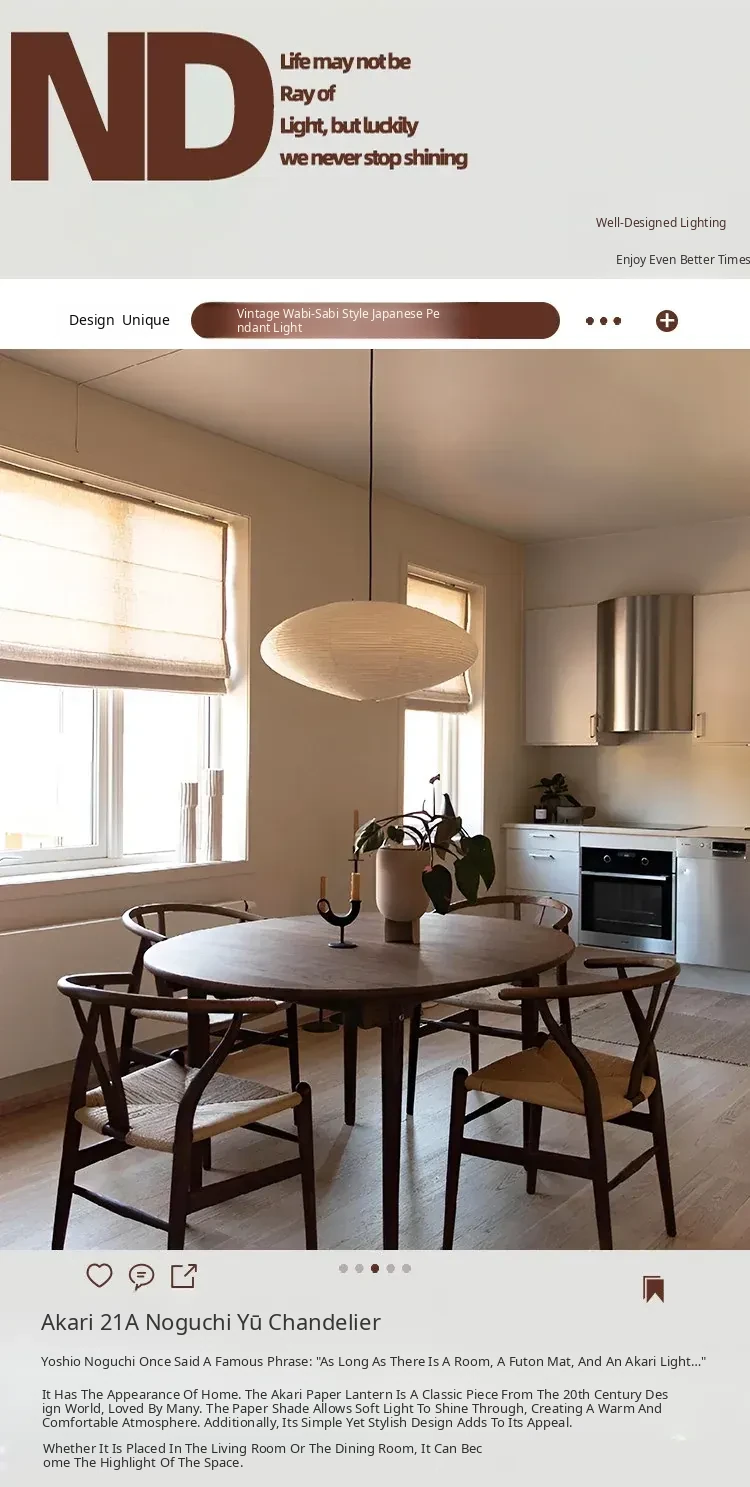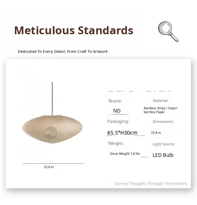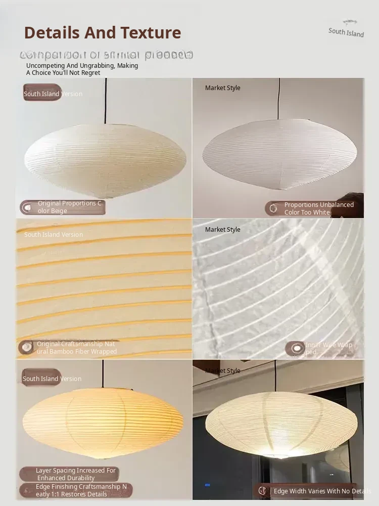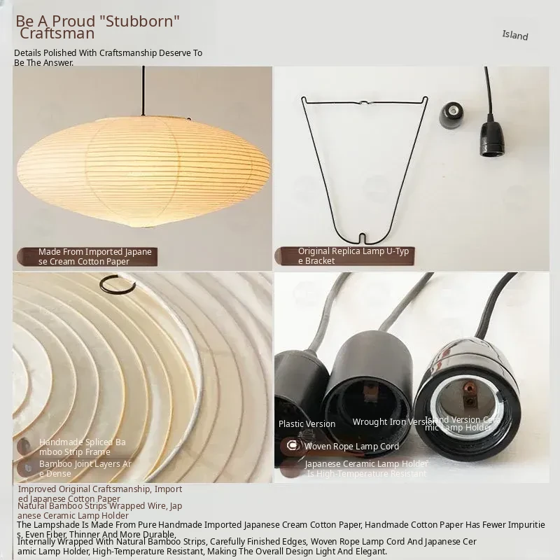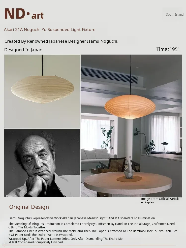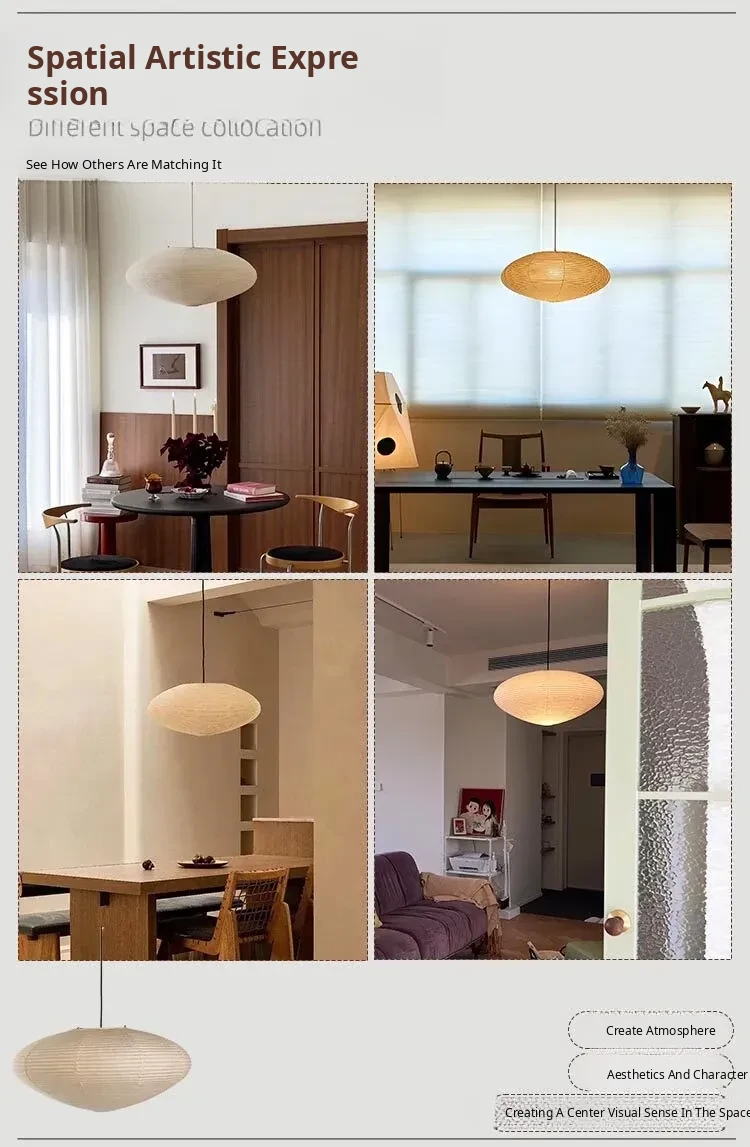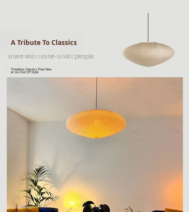 Yamamoto Akari 21A Vintage Wabi-Sabi Japanese Washi Paper Pendant Light - Perfect for Living Room, Bedroom, and Dining Area - Elegant and Unique Design