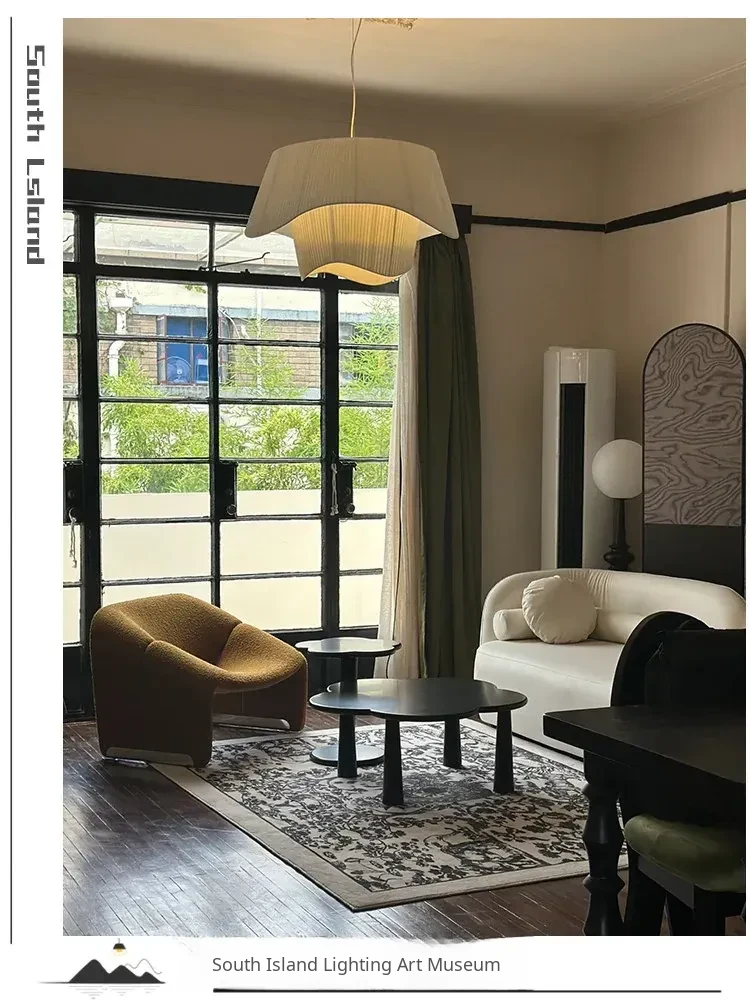 Elegant French Vintage Cream Pleated Fabric Pendant Light - Modern Minimalist Design for Japanese Style Living Room, Dining Room, Bedroom, and Study