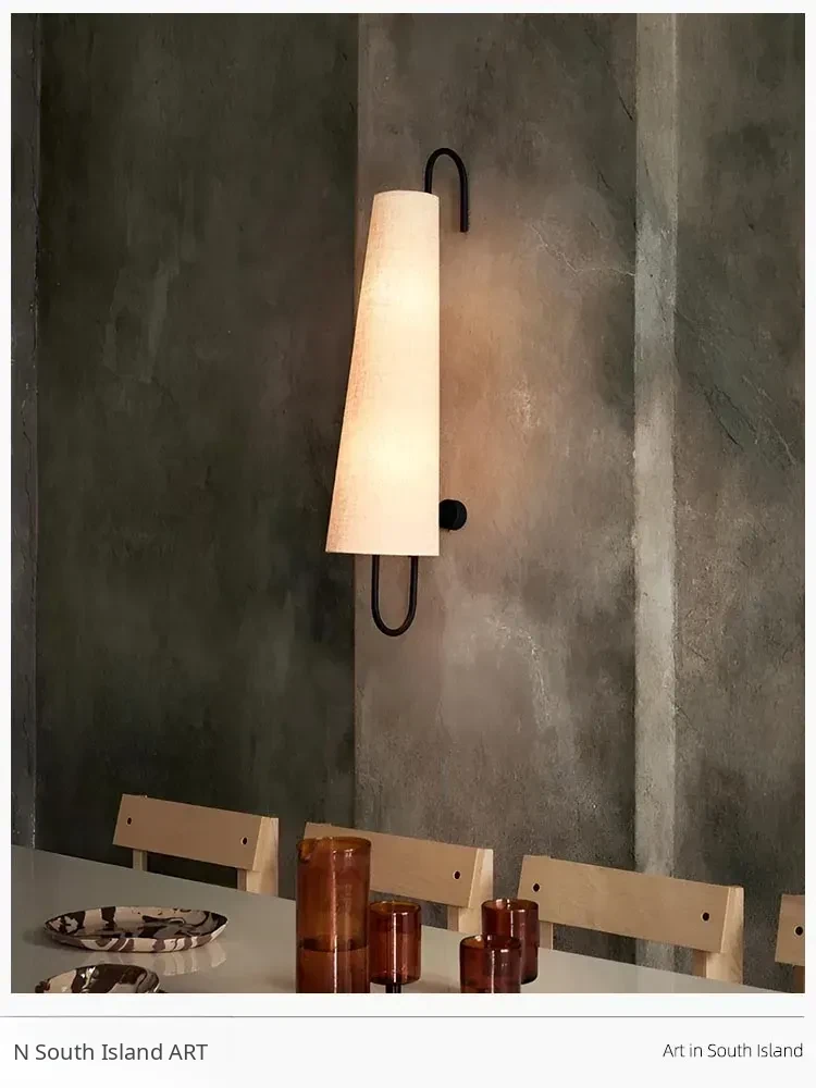 Vintage Danish Fabric Wall Lamp for Living Room - French Style Bedroom Bedside Light - Retro Wabi-Sabi Decor for Hallway and Staircase
