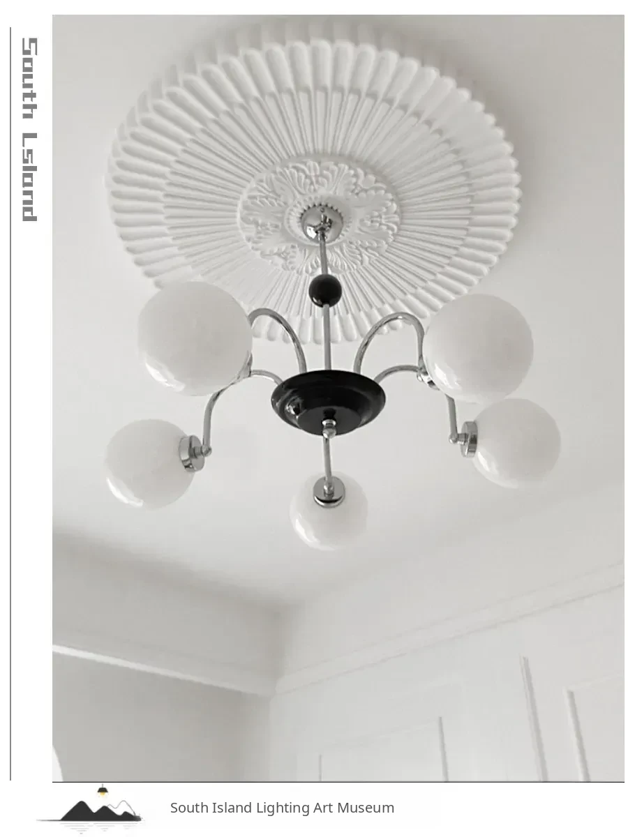 Vintage-Inspired Restaurant Chandeliers: Space Age Designer Pendant Lights for Bedrooms, Bauhaus White Jade Glass Bar Lighting Fixtures