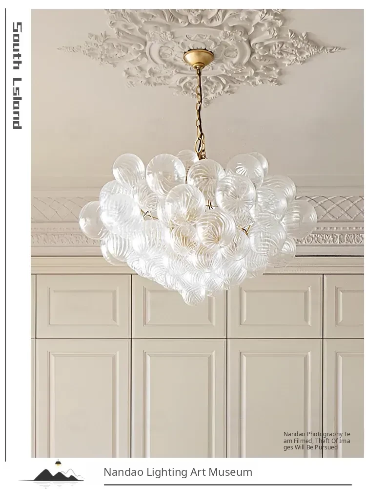 American Vintage Full Copper Glass Ball Pendant Light - Elegant Luxury Fixture for Open Villas, Living Rooms, Dining Areas, and French Style Bedrooms - Bubble Light Design