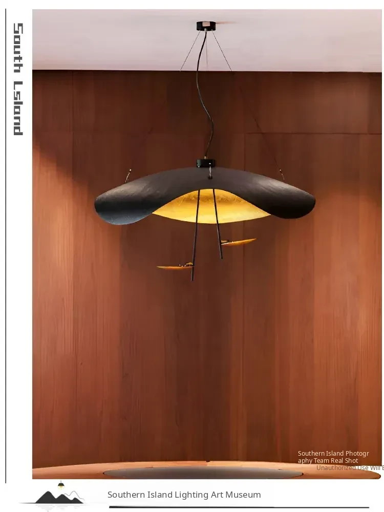 Catellani Italian Gold Leaf Pendant Light - Modern Black and White Asymmetric UFO Chandelier for Minimalist Living Room and Dining Room Atmosphere