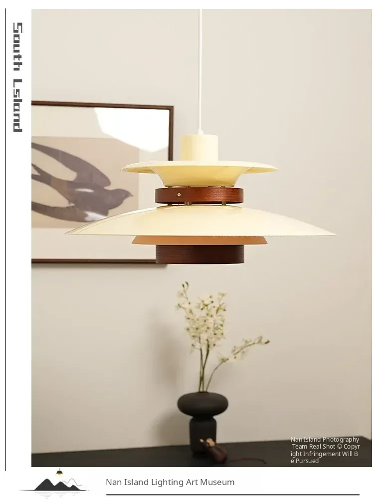 Vintage PH5 UFO Pendant Light - Japanese Style Walnut Wood Lamp for Dining Room, Tropical French Bar Island Lighting, Retro Solid Wood Fixture