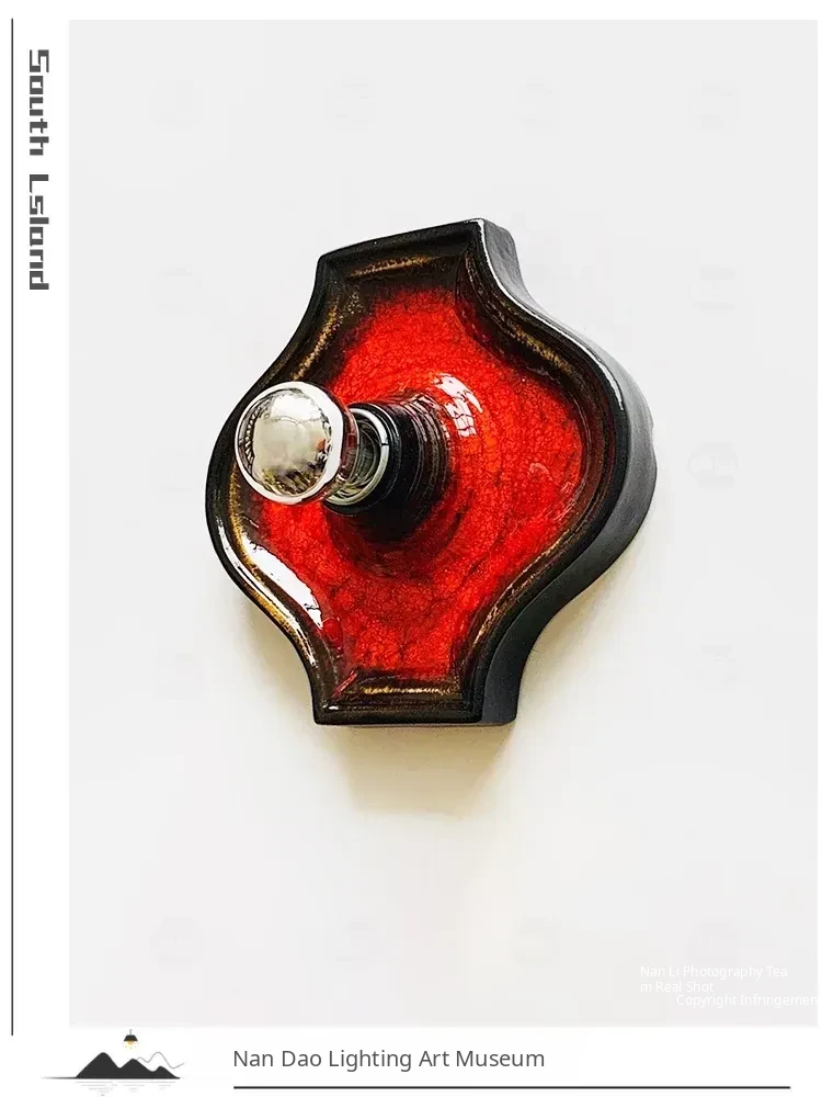 Vintage Lava Ceramic Wall Lamp - Retro Amber Red Light for Living Room, Hallway, and Bedroom. Perfect for Wabi-Sabi Aesthetics and Cozy Ambiance.
