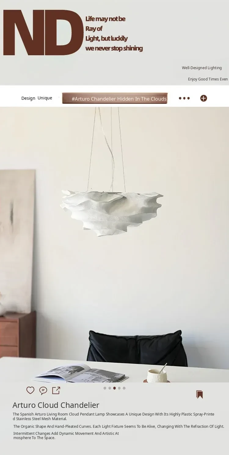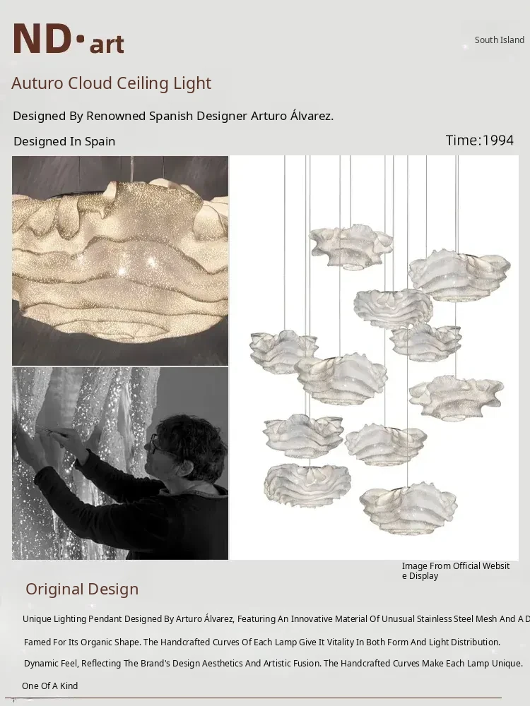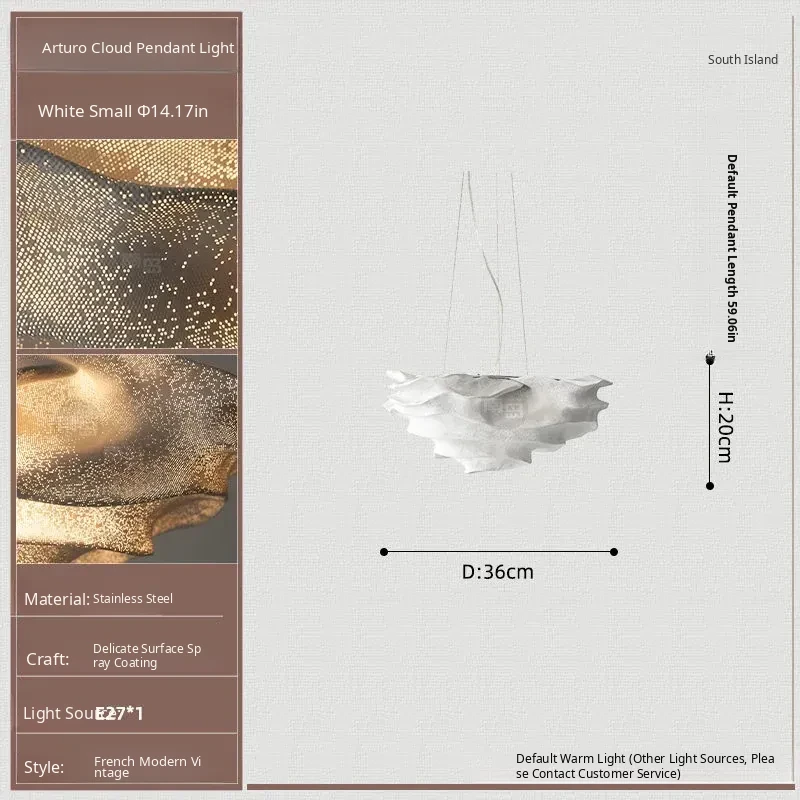 Arturo Designer Cloud Pendant Light - Scandinavian Minimalist Style for Living Room, Creative Study, French Dining Room, and Bedroom Lighting