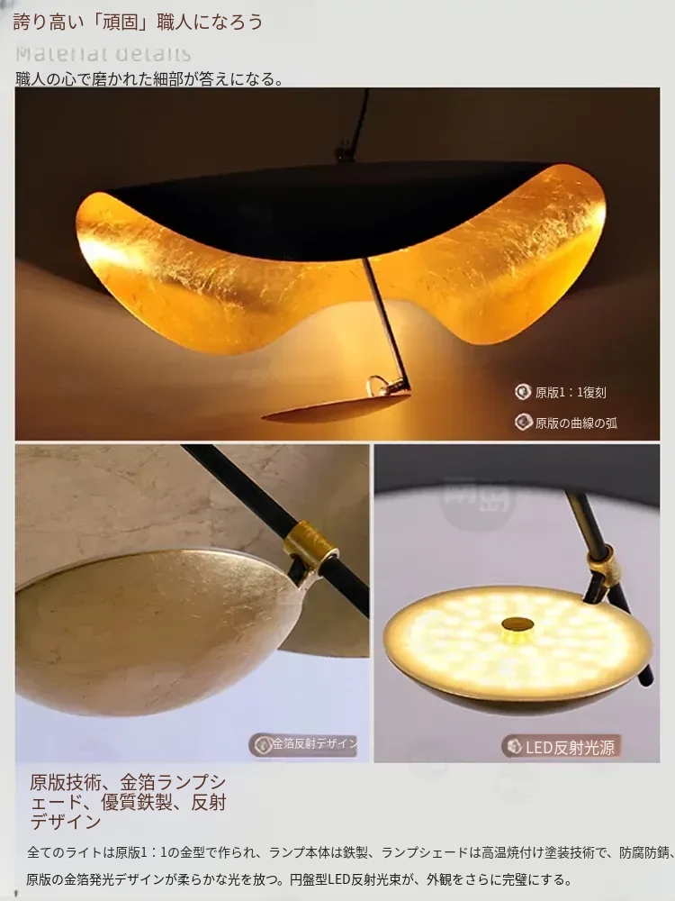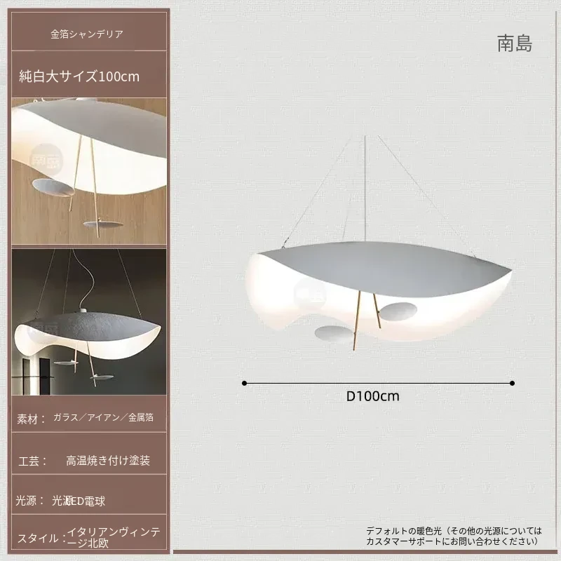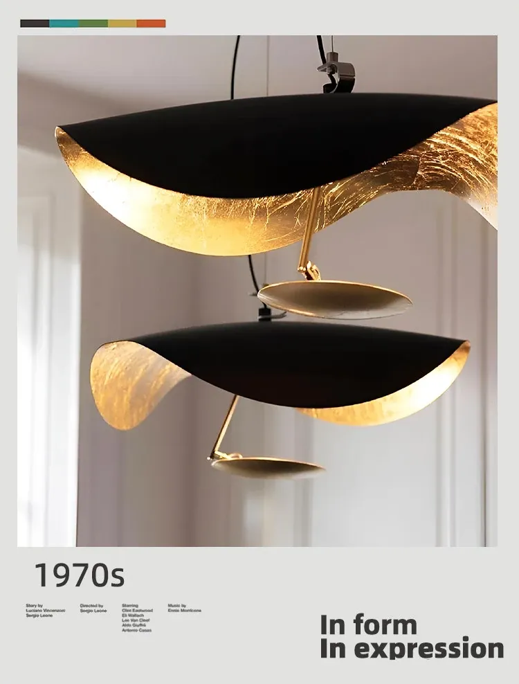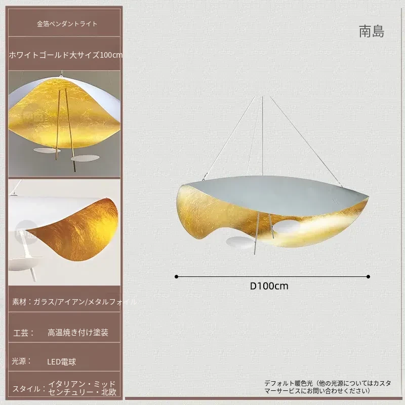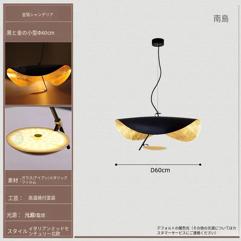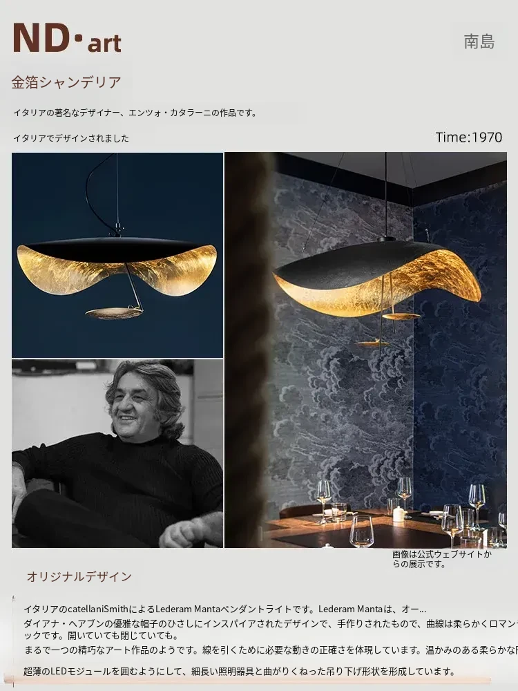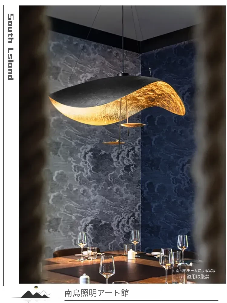イタリアのCatellaniゴールドリーフペンダントライト|モダンな黒白不規則デザイン|シンプルで洗練されたリビング&ダイニングの雰囲気を演出するUFOスタイル照明