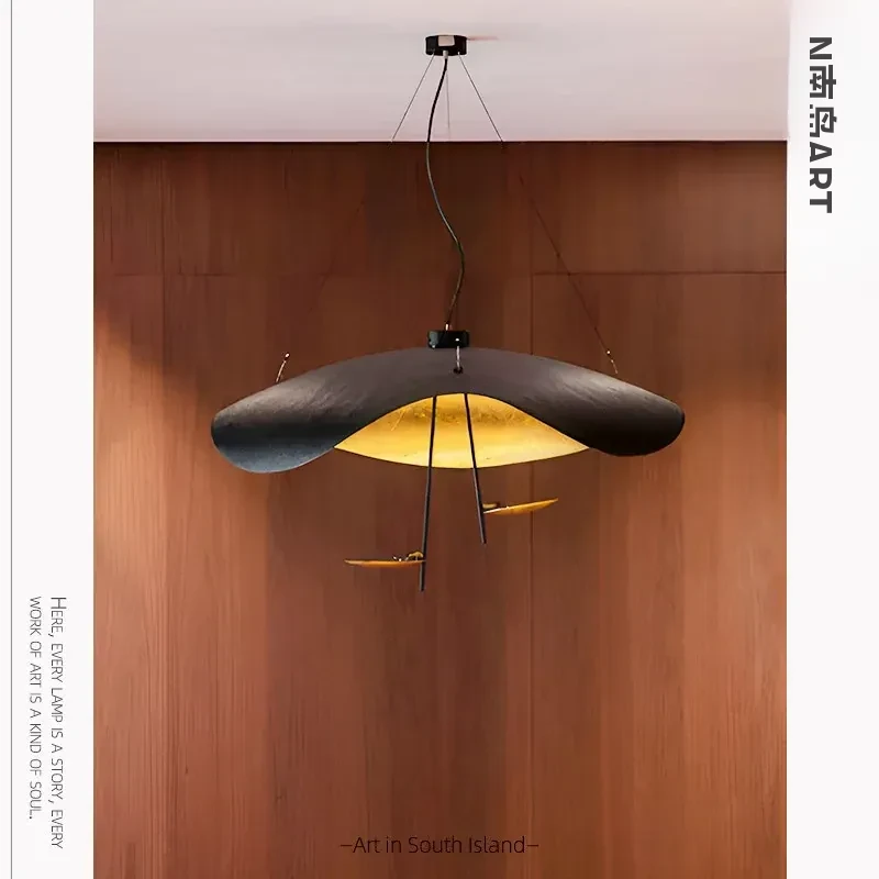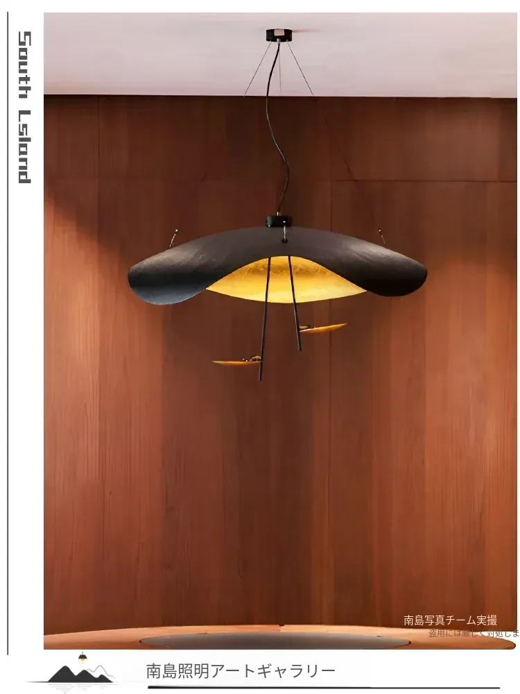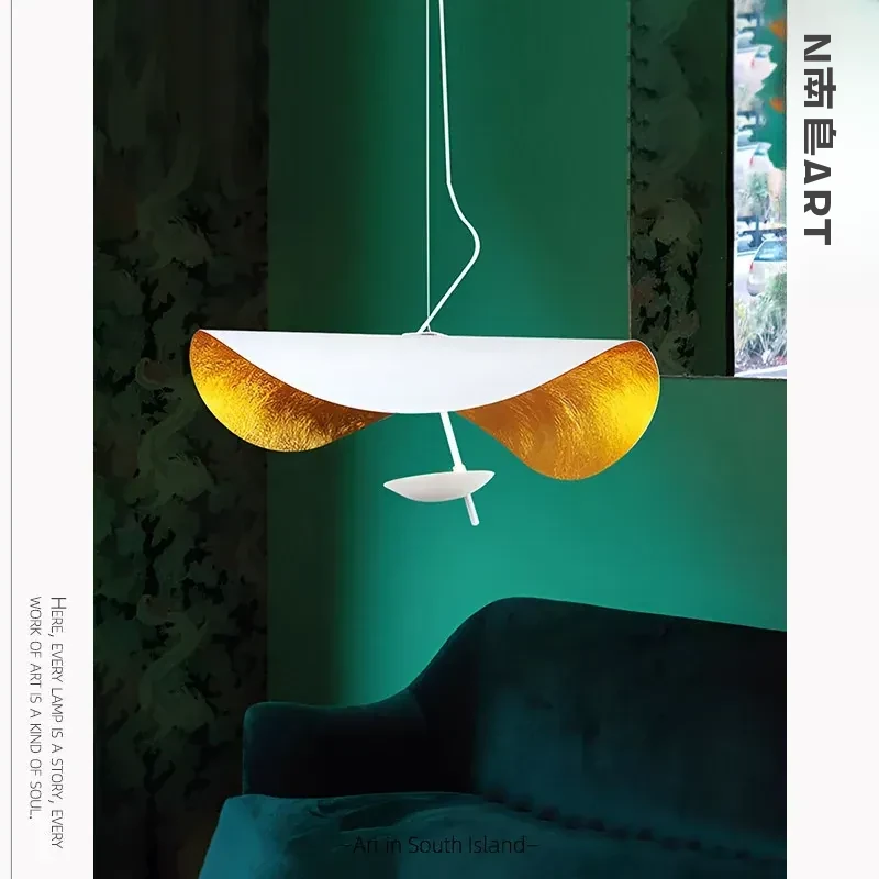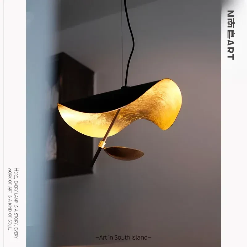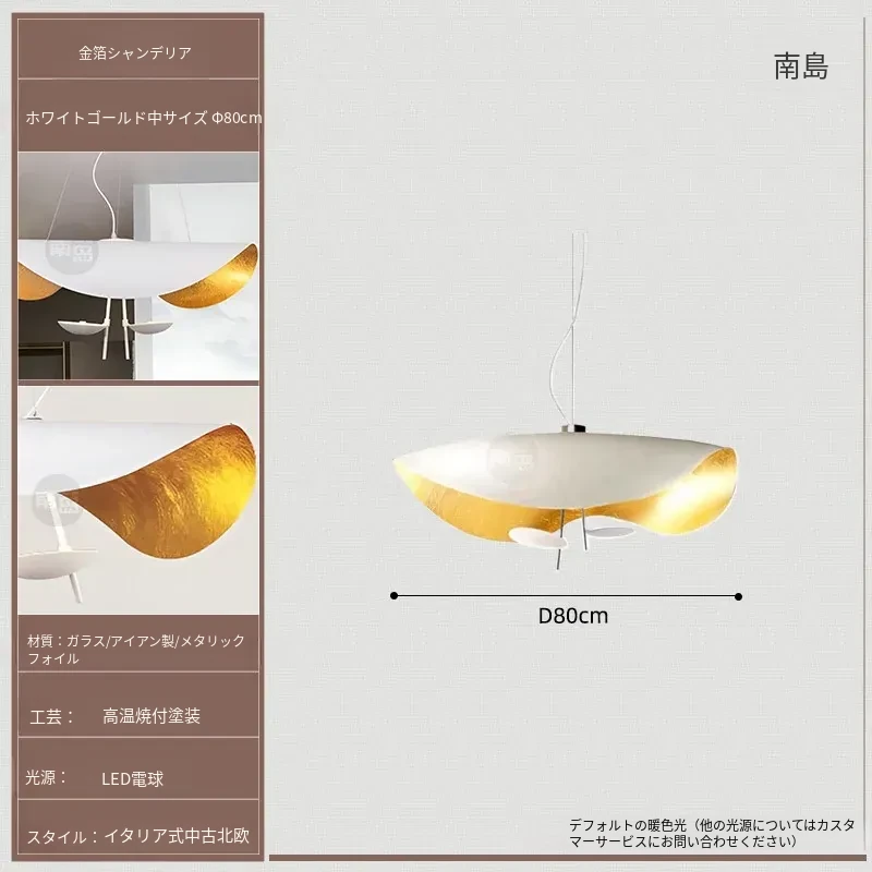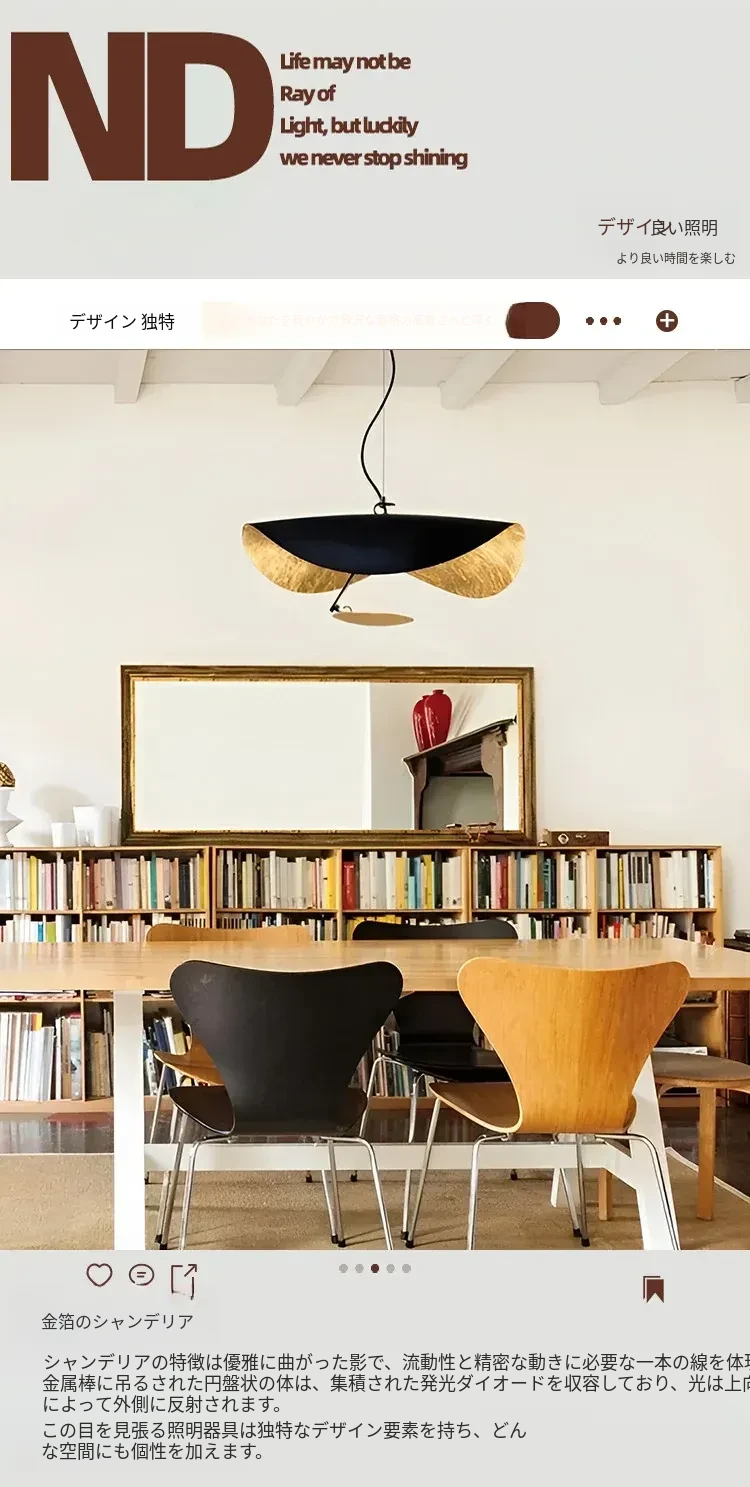 イタリアのCatellaniゴールドリーフペンダントライト|モダンな黒白不規則デザイン|シンプルで洗練されたリビング&ダイニングの雰囲気を演出するUFOスタイル照明