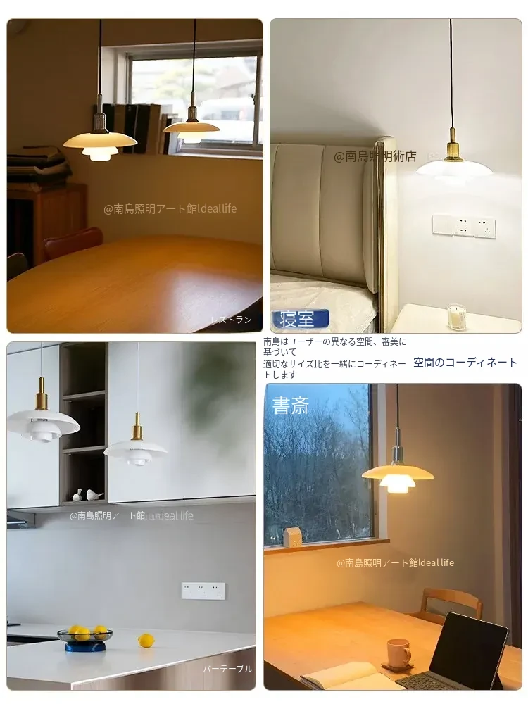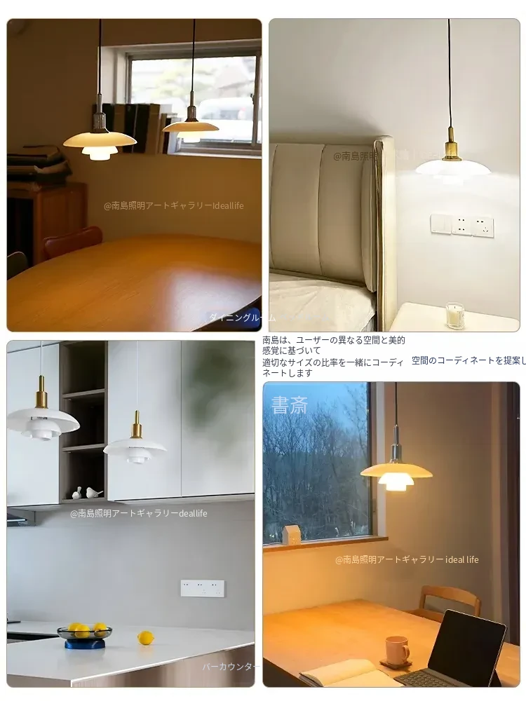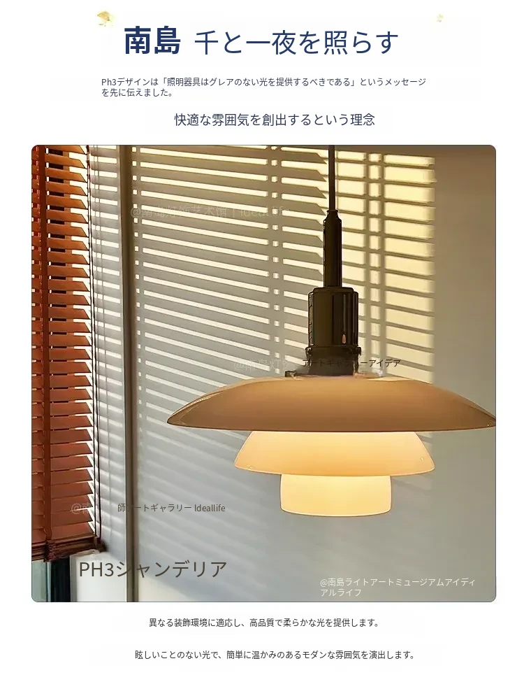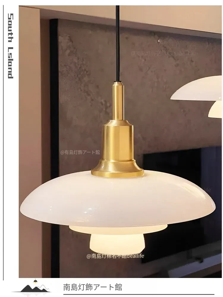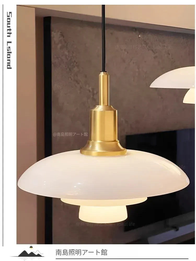 デンマーク北欧PH3デザイン 飛行円盤型ガラス吊り灯具 書斎・寝室・フレンチバー・ベッドサイドに最適な純銅製ランプ。洗練されたデザインで、空間をおしゃれに演出します!