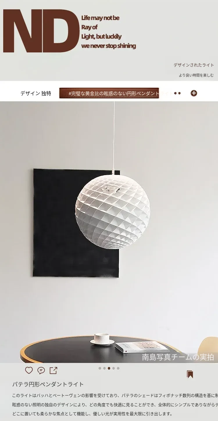 デンマーク製Pateraラウンドペンダントライト - モダンなミッドセンチュリーデザイン、ダイニングルームやバー、書斎、寝室に最適な月のような美しさを演出!おしゃれな空間を演出するデザイナーズ照明。