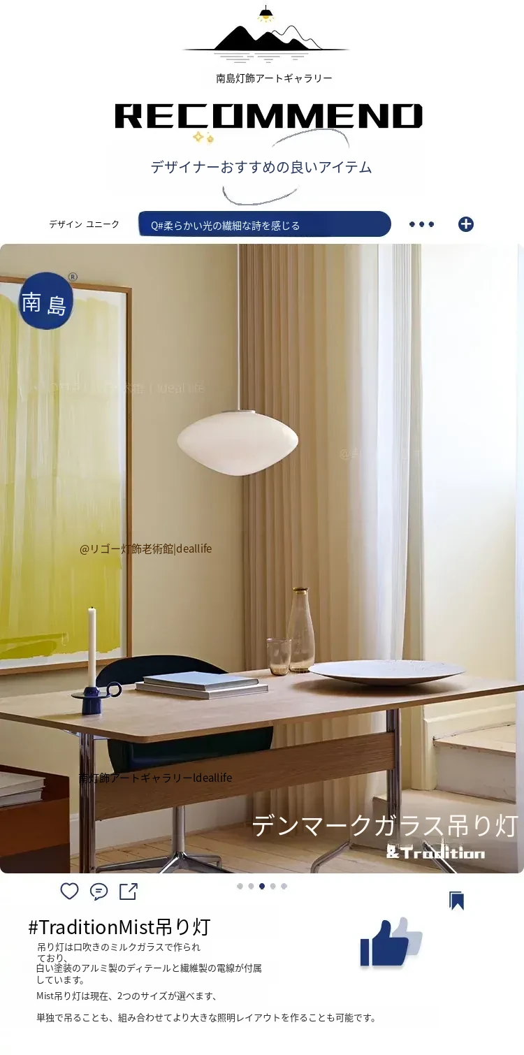 デンマーク・アンドトラディション ミストペンダントライト|デザイナーによるエレガントな乳白ガラス製・北欧スタイル|ダイニングやバーカウンターにぴったりの洗練された照明