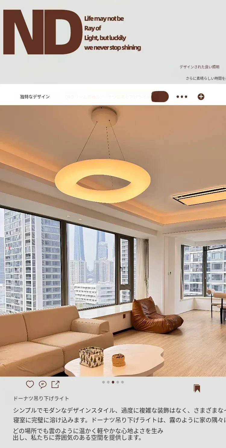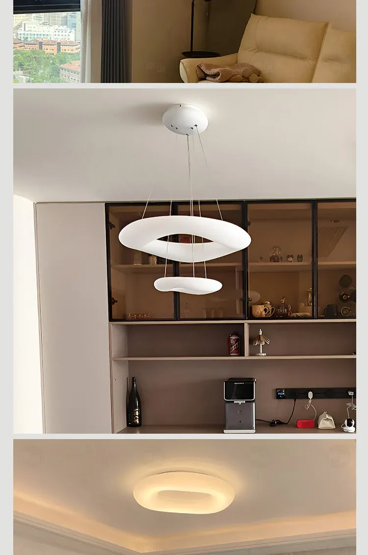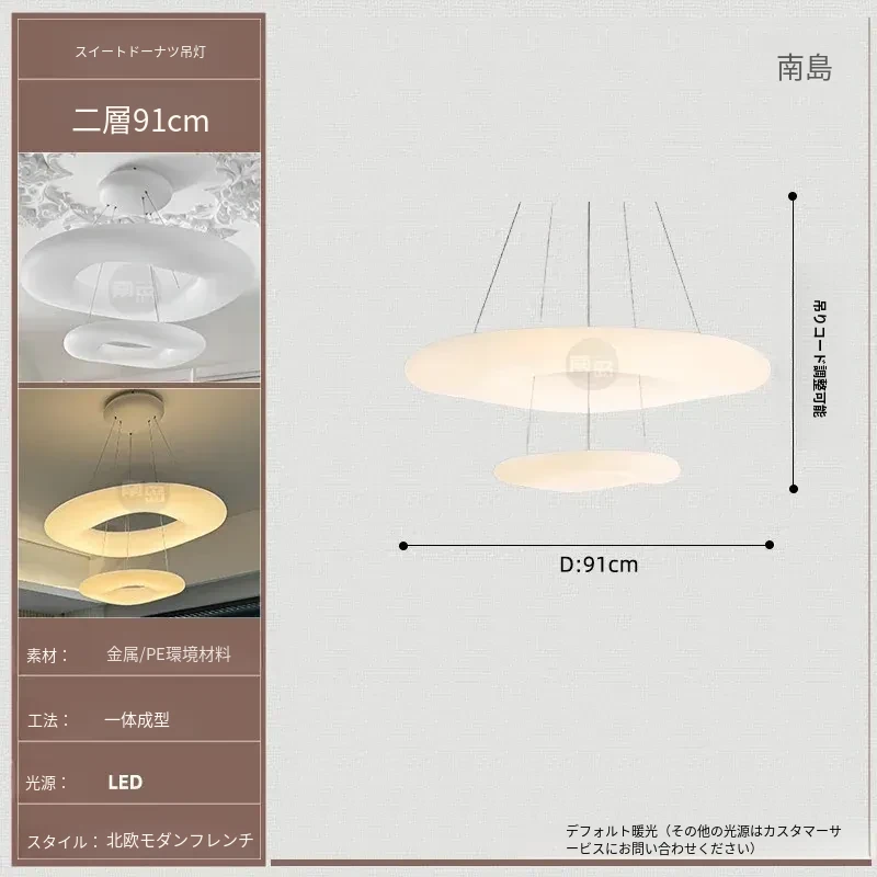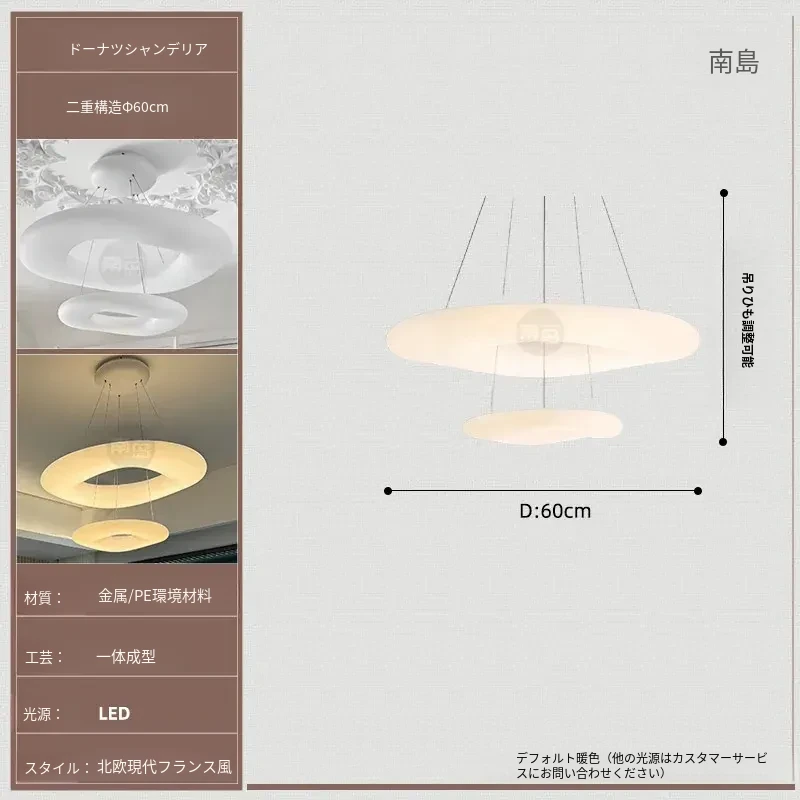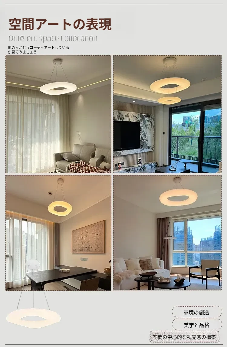 フランス風ドーナツ雲のシーリングライト|クリーム色が魅力の現代北欧スタイル|リビング・寝室・子供部屋・デザイナーの書斎に最適な吊り下げライト!おしゃれで温かみのある空間を演出します。
