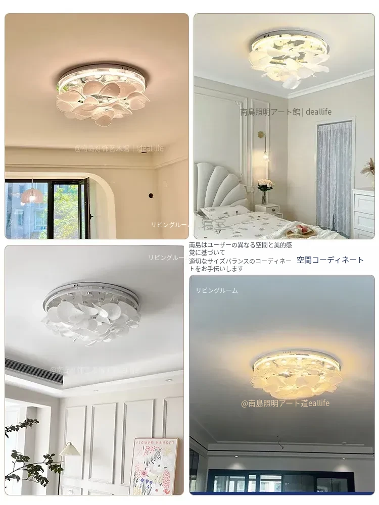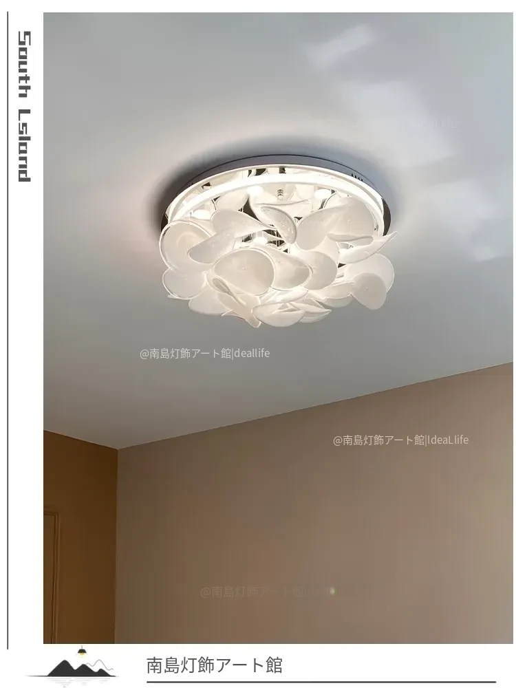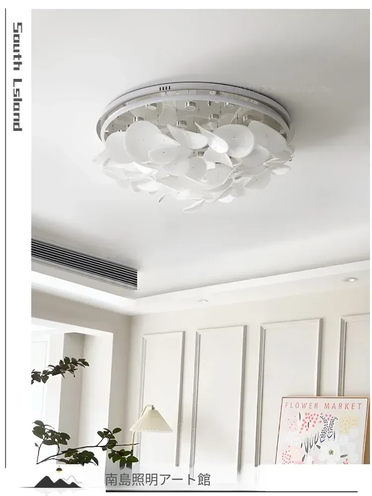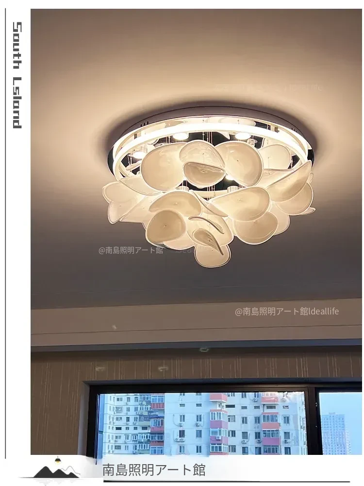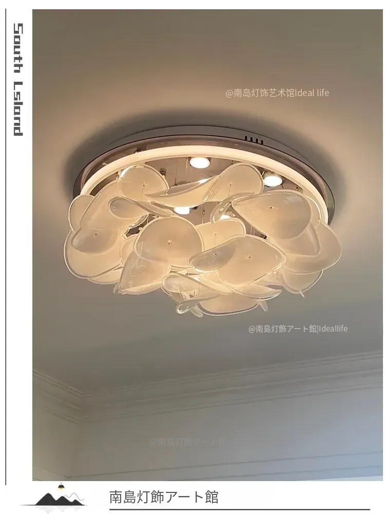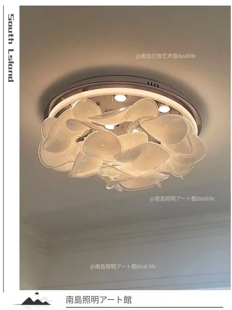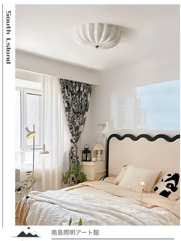 フランス風モダンクリーム色のフリルデザイン天井照明 - デザイナー仕様のラグジュアリーガラス製、調光機能付き、寝室・書斎・ダイニングルームに最適!