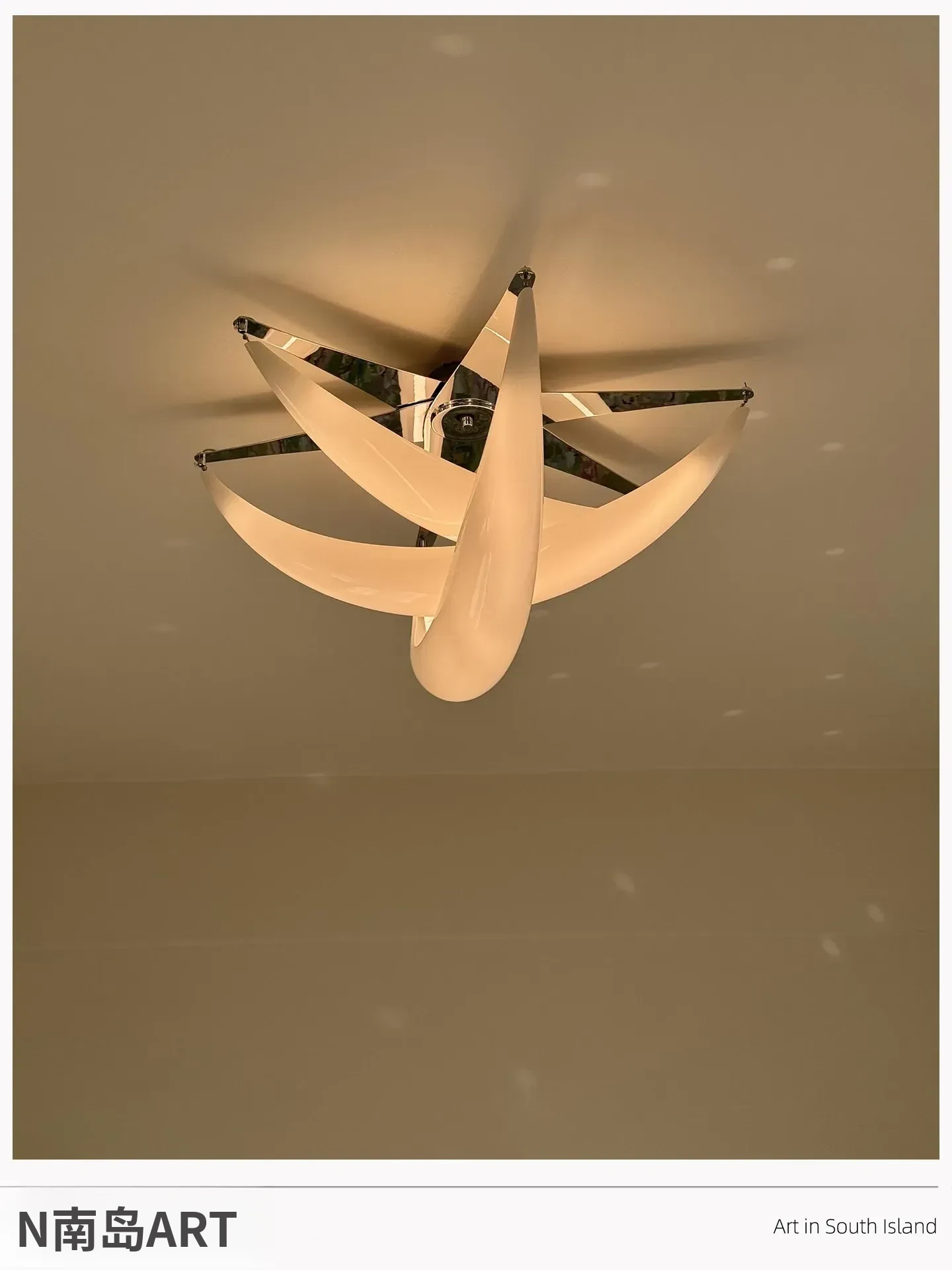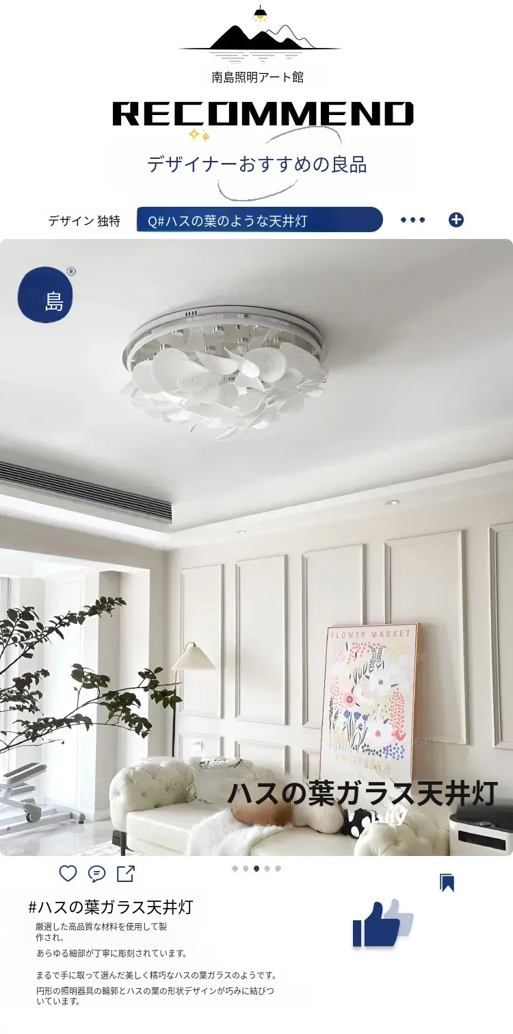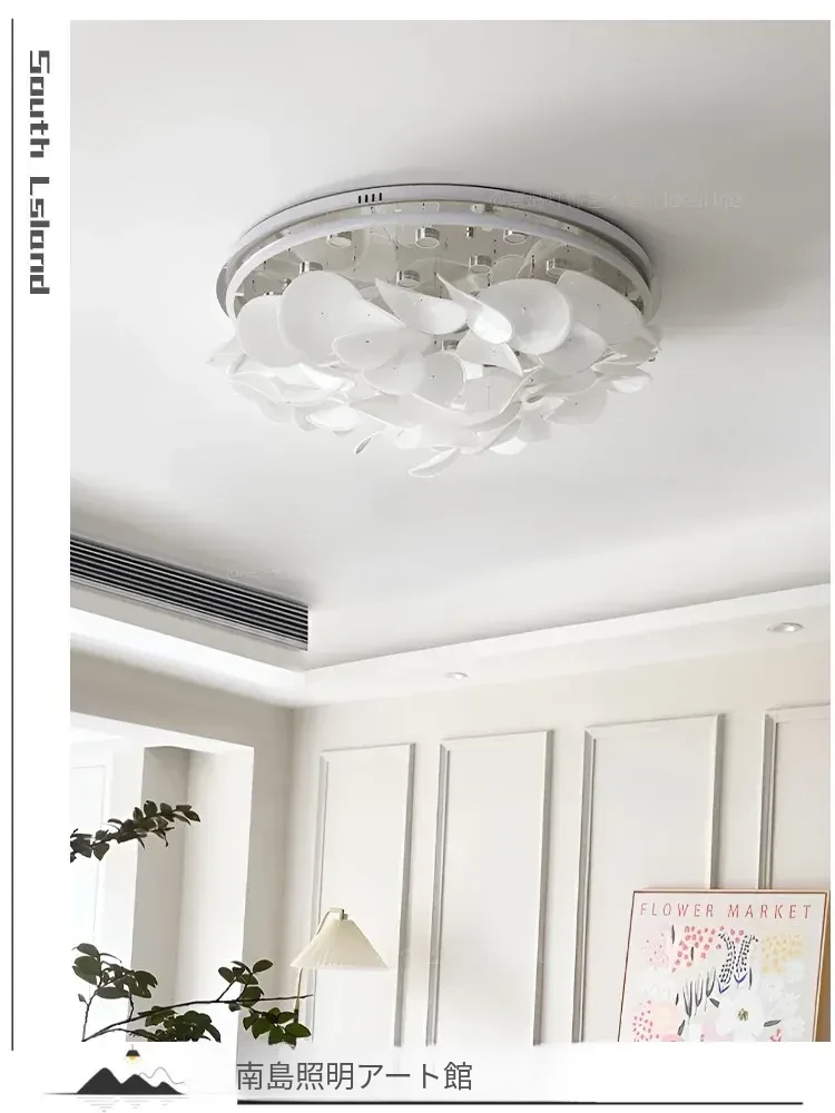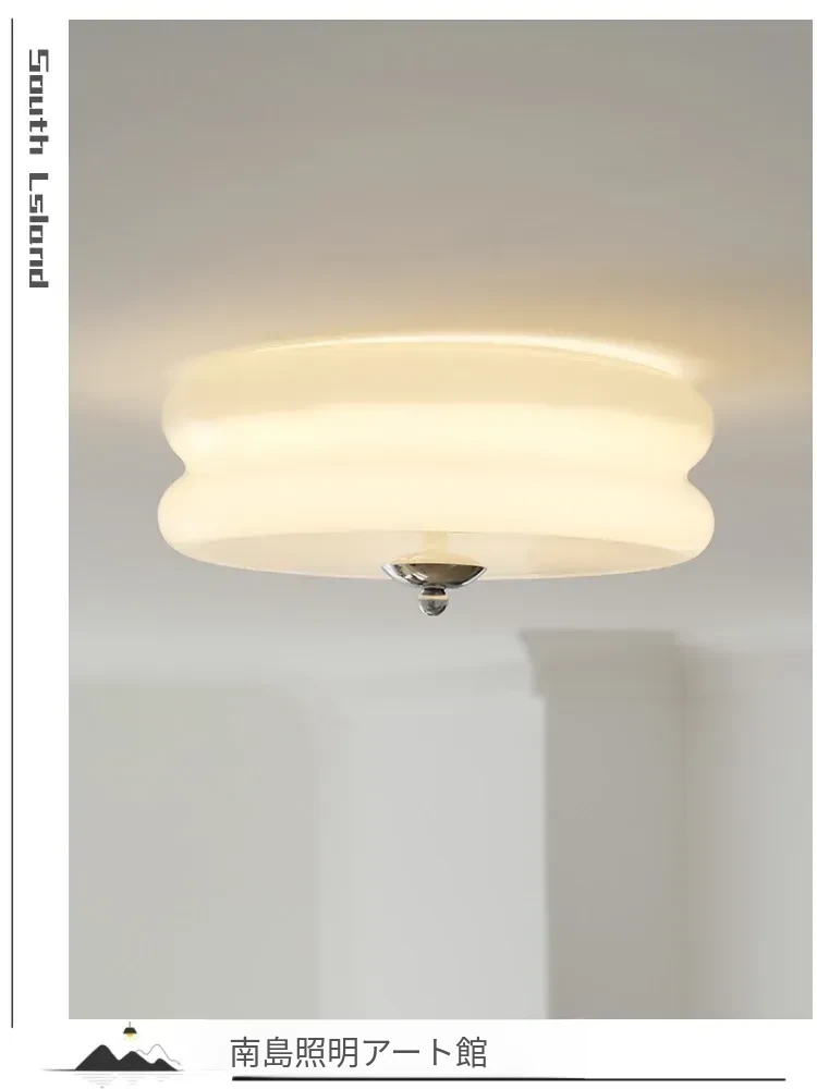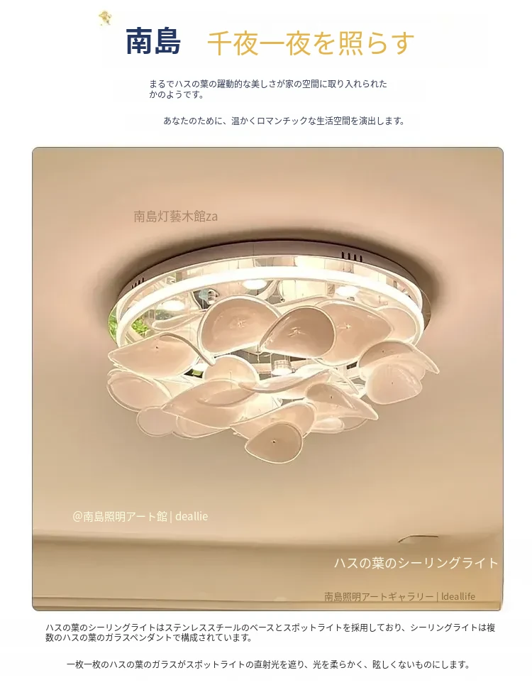 フランス風モダンクリーム色のフリルデザイン天井照明 - デザイナー仕様のラグジュアリーガラス製、調光機能付き、寝室・書斎・ダイニングルームに最適!