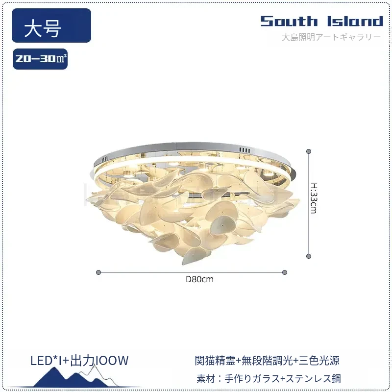 直径80cm【大型】天猫精灵無段調光 ステンレス/手作りミルクガラス