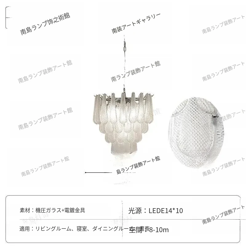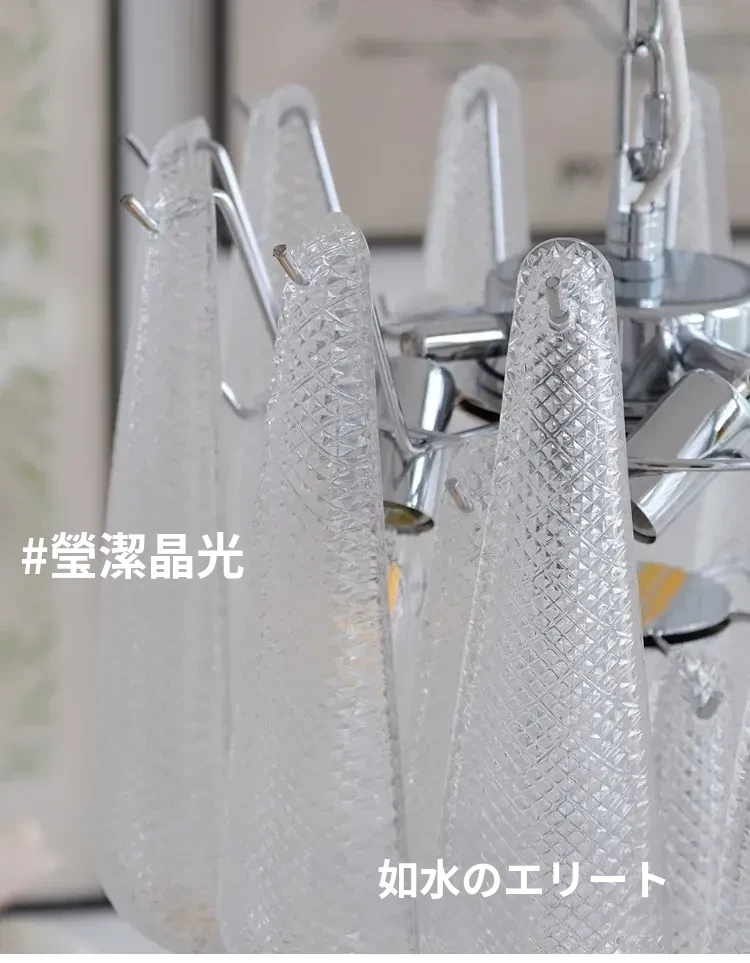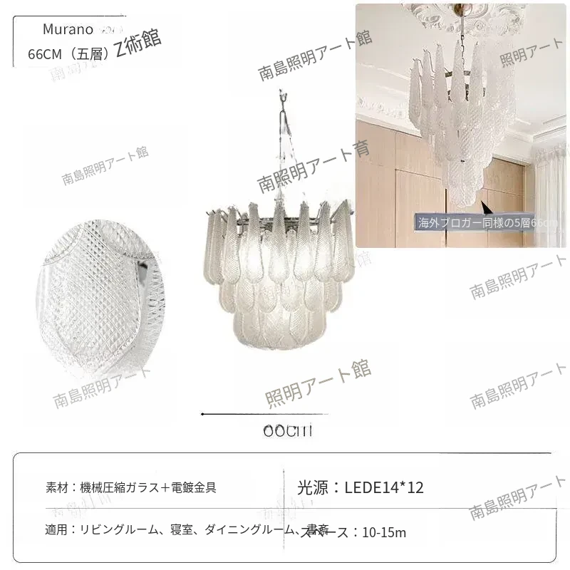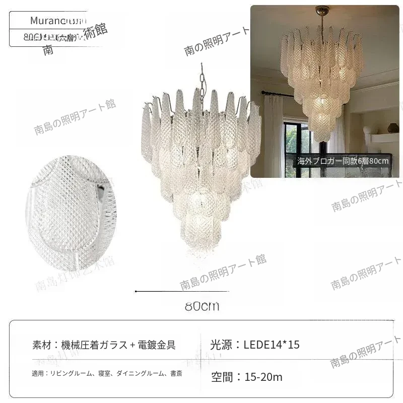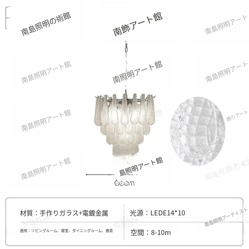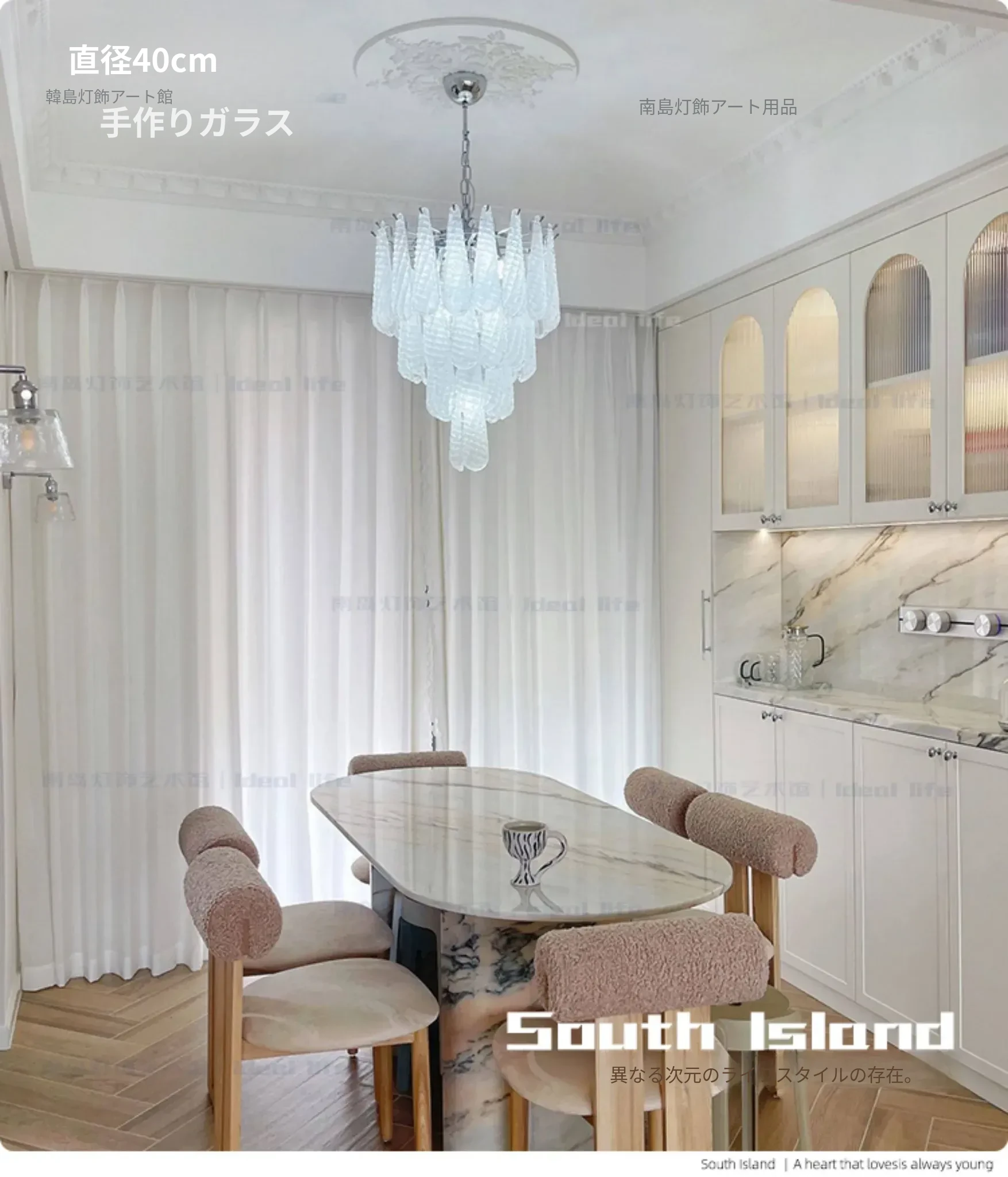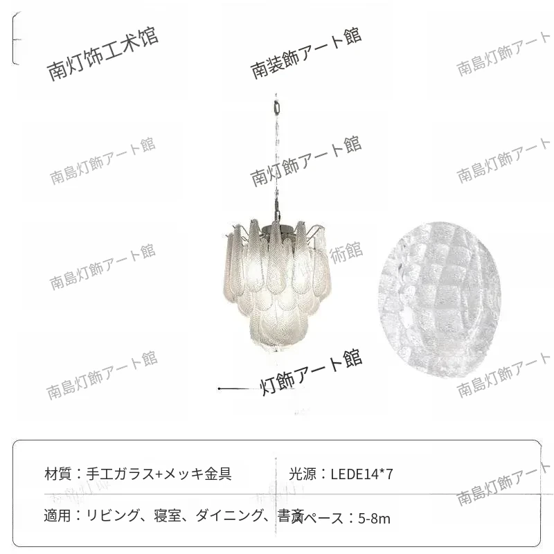 フランス製MURANOガラスシャンデリア - 中古ヴィラ向けのラグジュアリーな空間演出、吹き抜けLOFT階段やダイニングに最適な滝のような美しさを持つ照明。