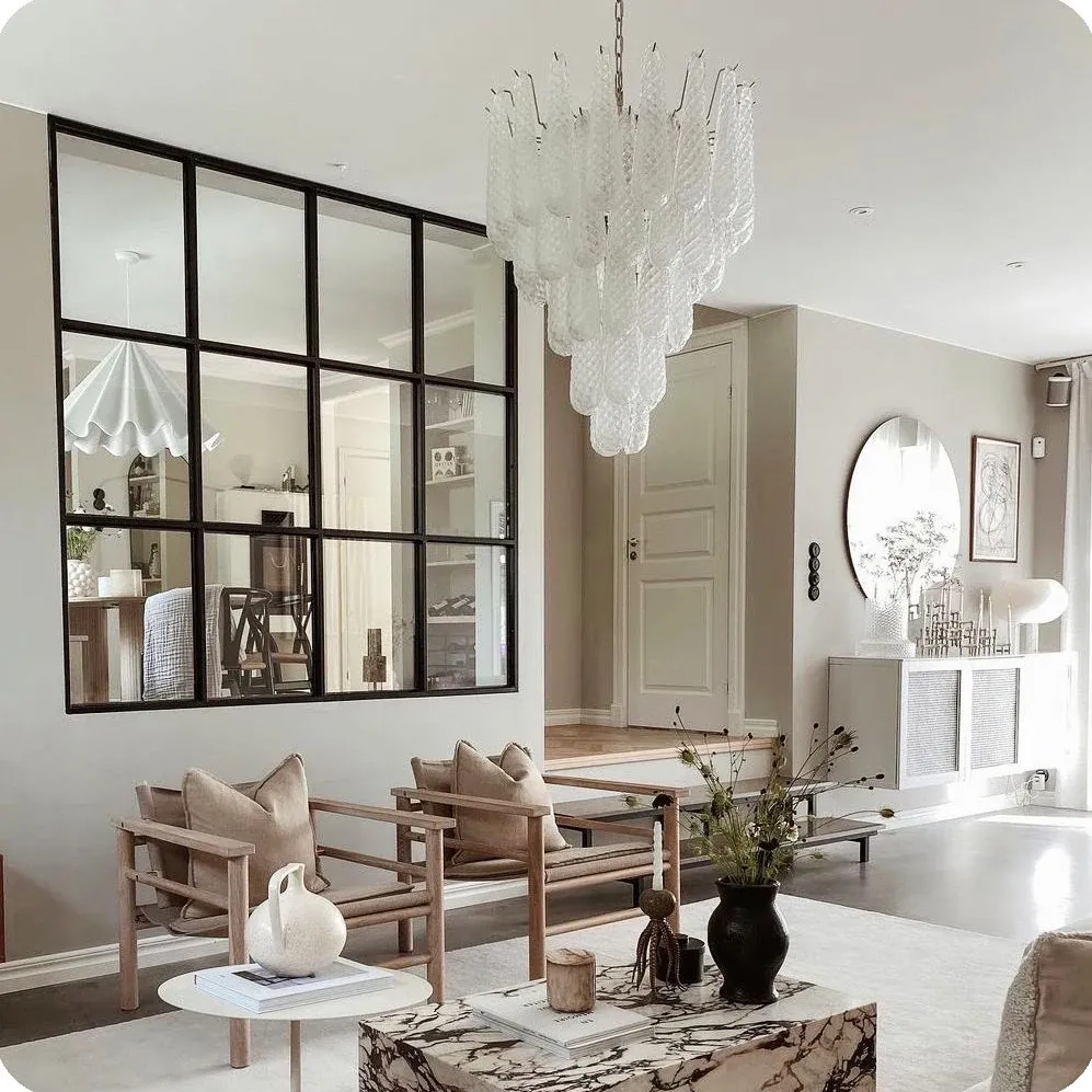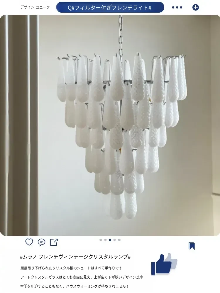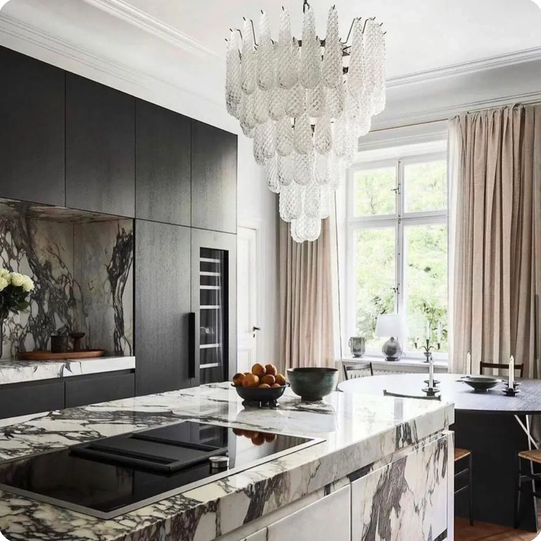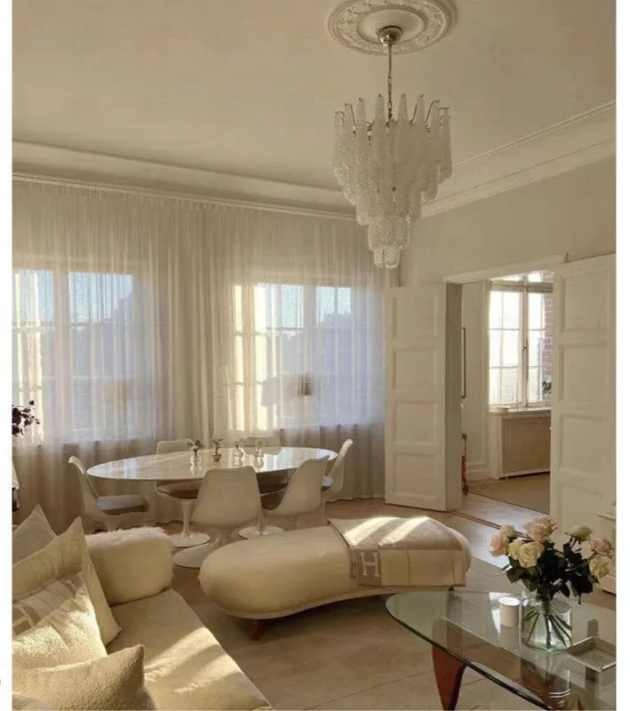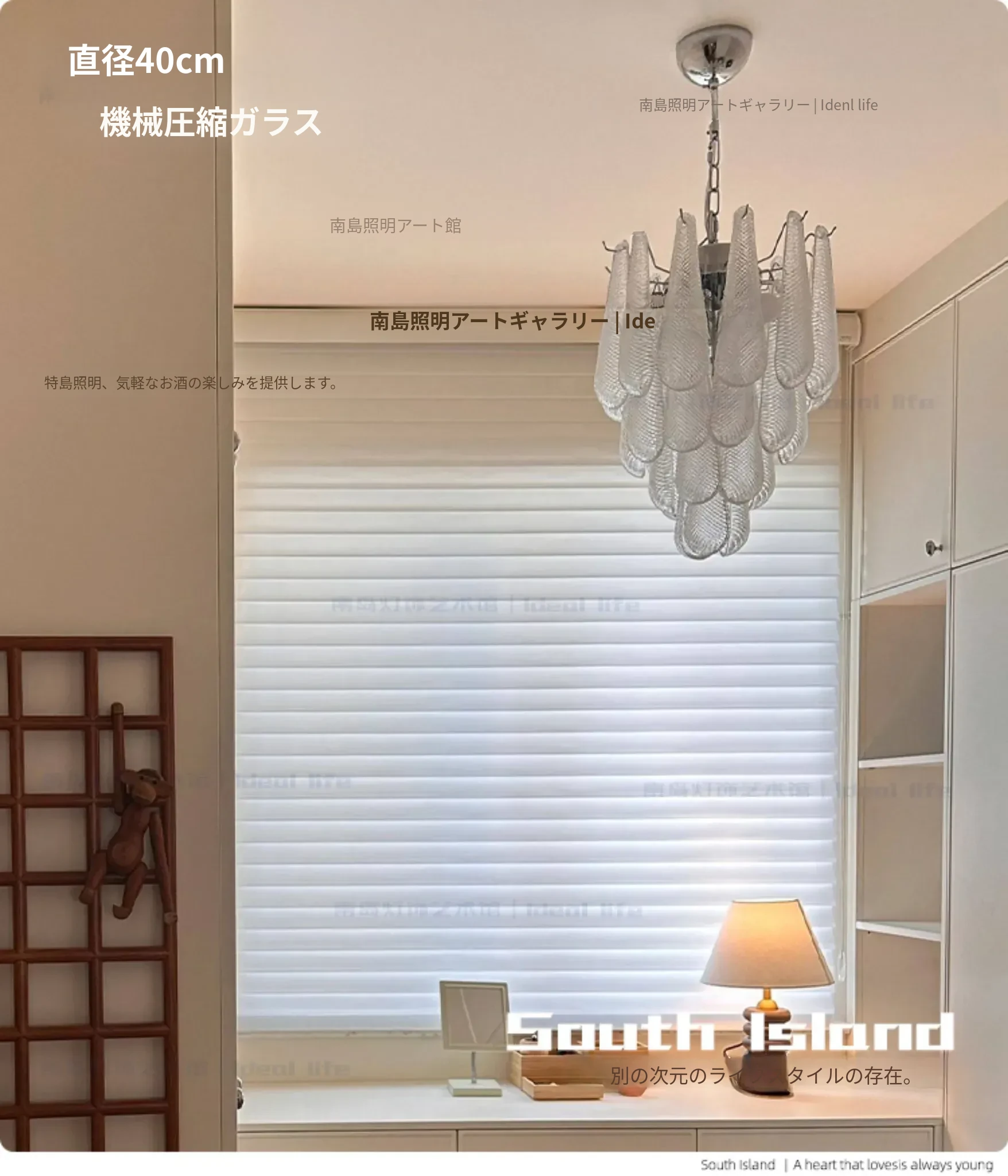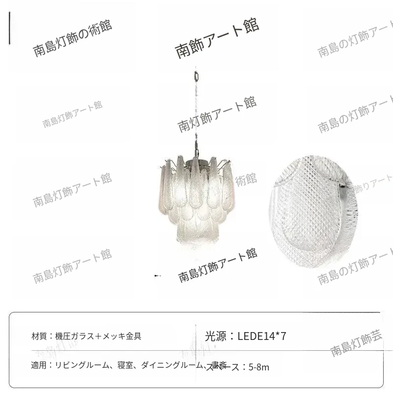 フランス製MURANOガラスシャンデリア - 中古ヴィラ向けのラグジュアリーな空間演出、吹き抜けLOFT階段やダイニングに最適な滝のような美しさを持つ照明。
