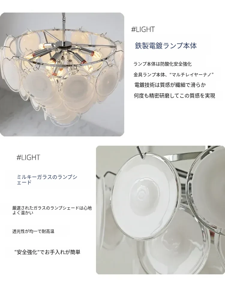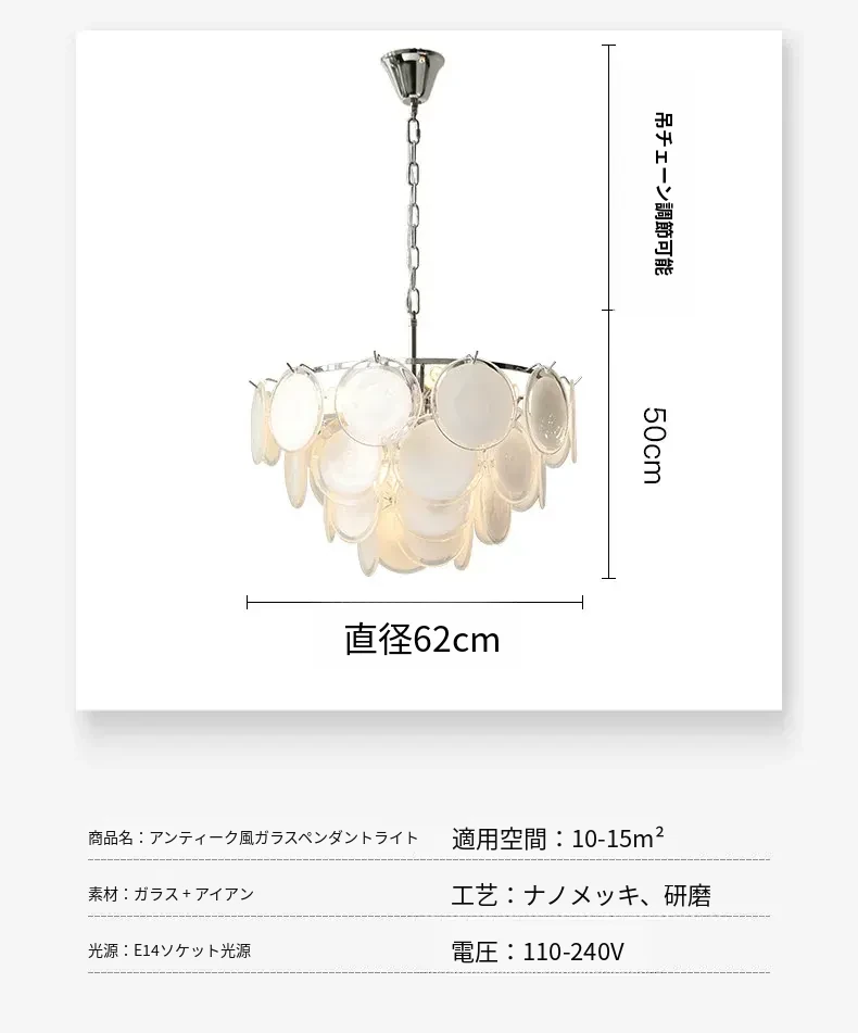 フランス風ムラノガラスシャンデリア - モダンでヴィンテージ感溢れるアメリカンラグジュアリー!リビング、玄関、ダイニング、寝室にぴったりの洗練された照明器具。エレガントな空間を演出します!